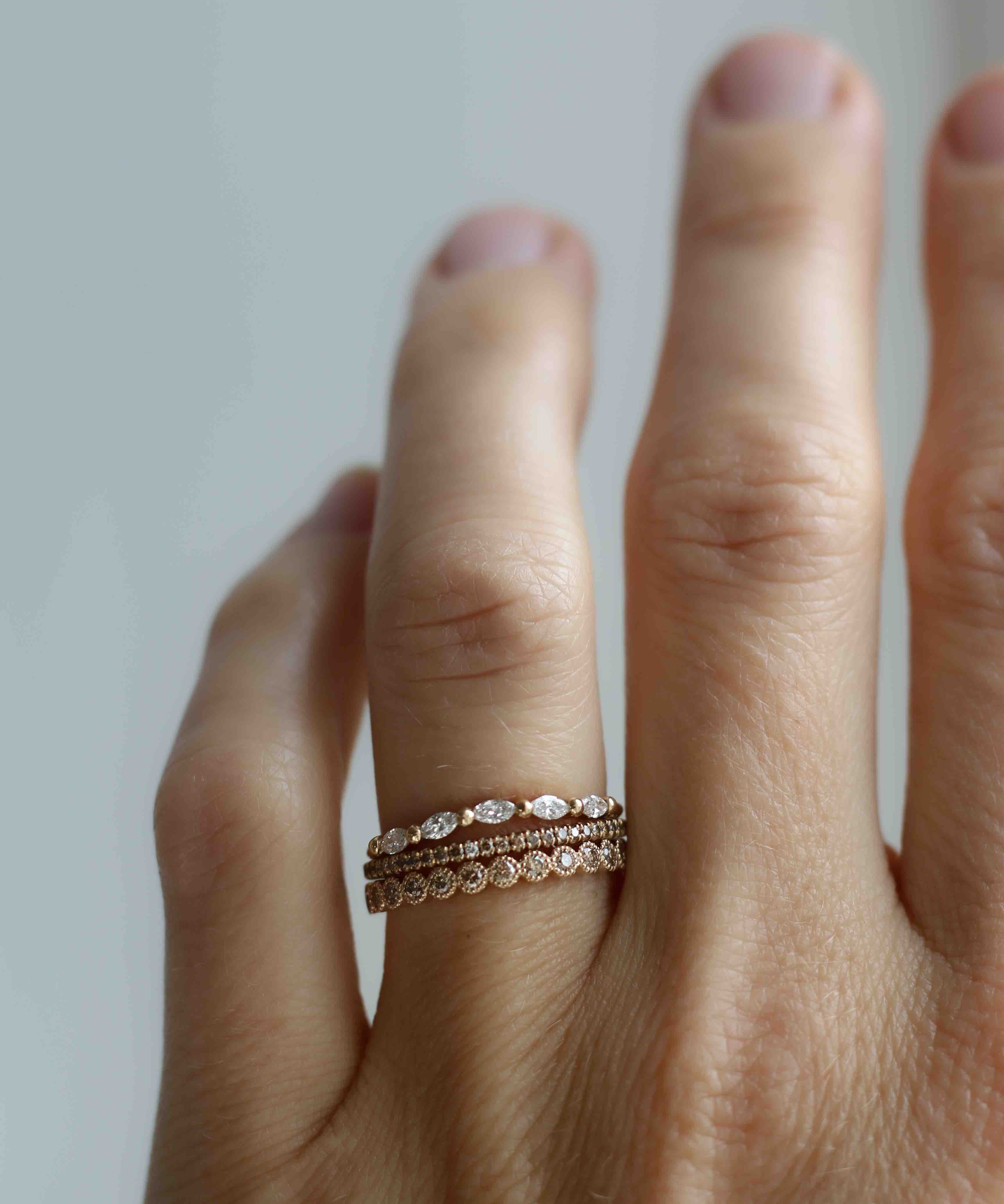 Välj och kombinera till din egen personliga stack. De allra flesta ringar går även att skräddarsy med ditt val av färgädelsten.