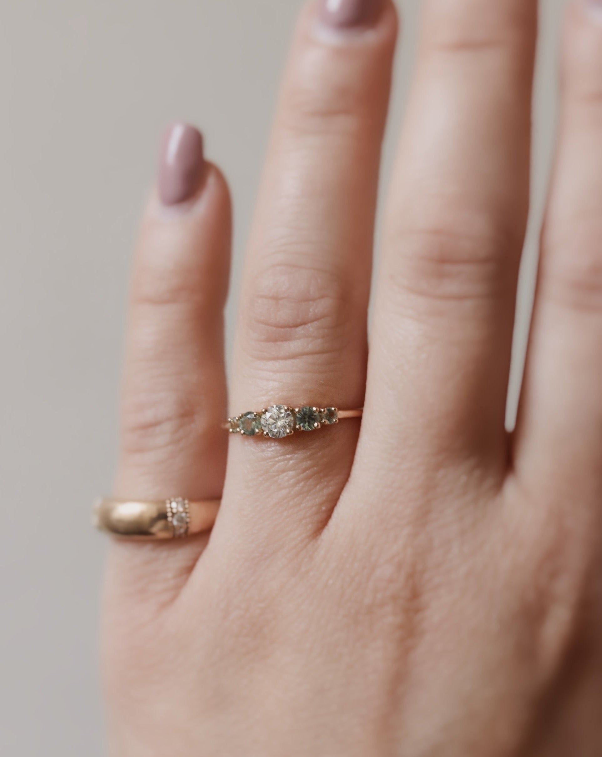 Just kombinationen mellan olivgrön safir och våra champagnediamanter och chokladdiamanter har blivit en av våra mest omtyckta ädelstenskombinationer.