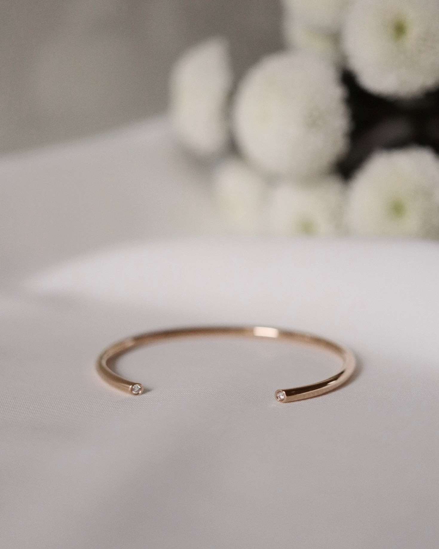 Våra öppna cuffs är handsmidda i solitt guld och helt utan mekanik, som annars är vanligt vid stela armband. Fokus för mig när jag designar är på passform och en härlig följsamhet runt handleden. Xx Cecilia