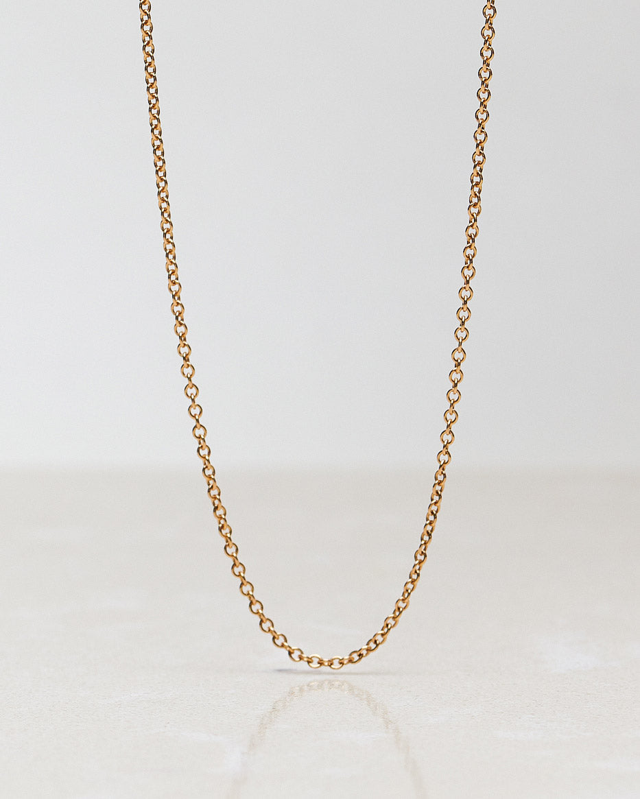 For a short, simple necklace, we recommend the Bare Gold Necklace Chain.