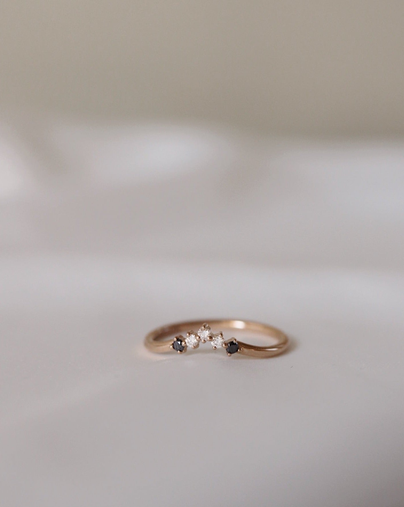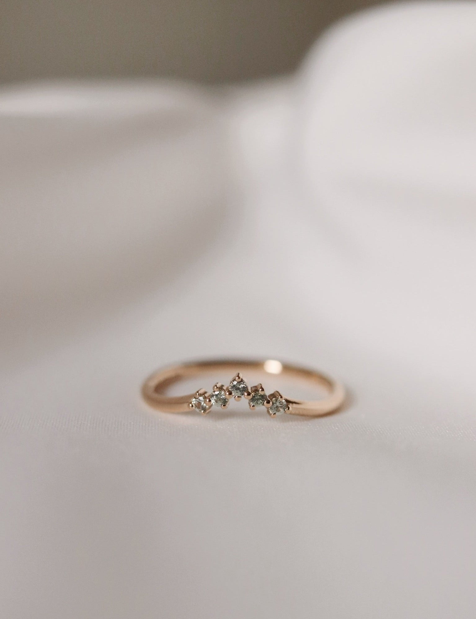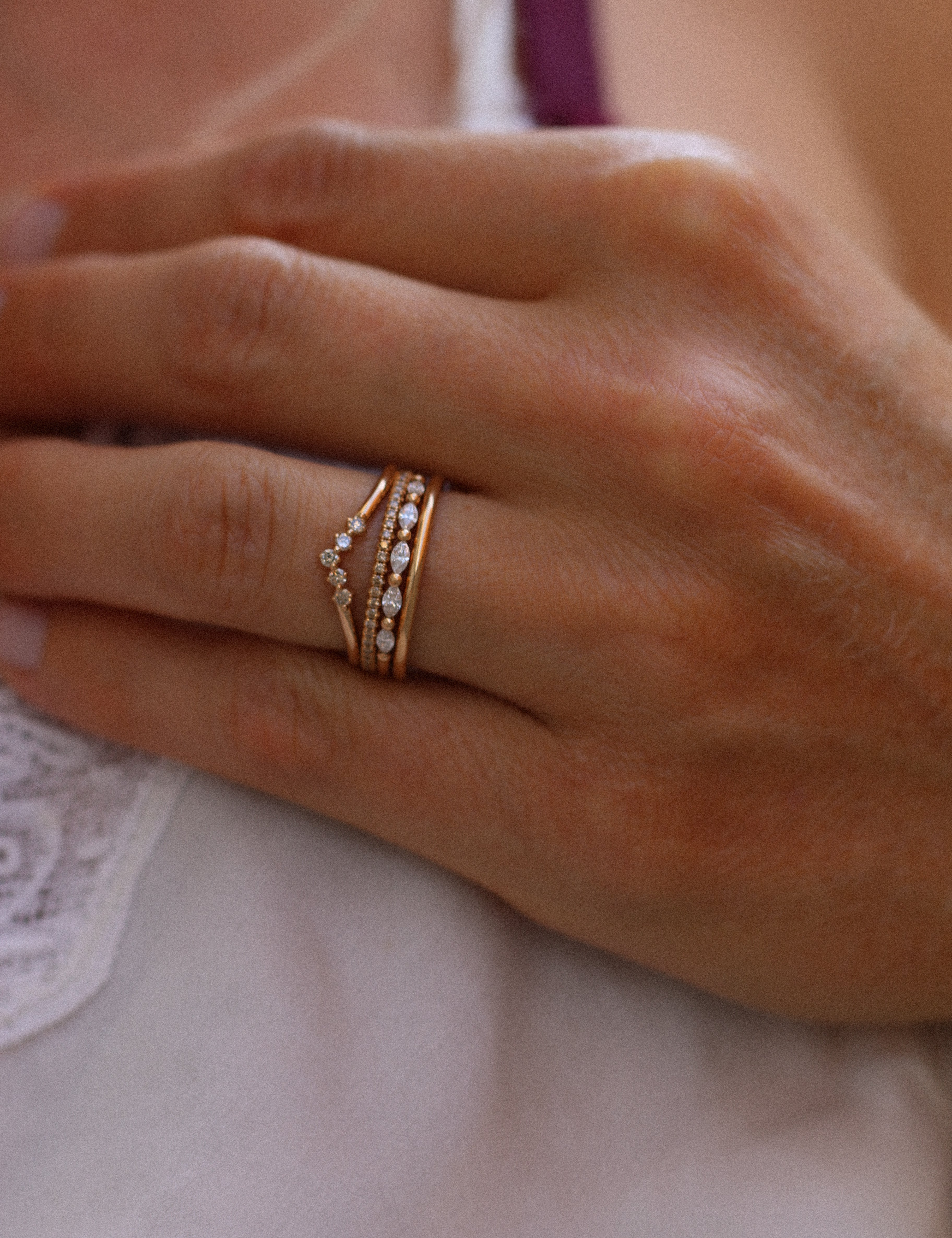 Five Diamond Triangle Ring is a dainty ring that gives a graceful, elegant finish to your ring stack.