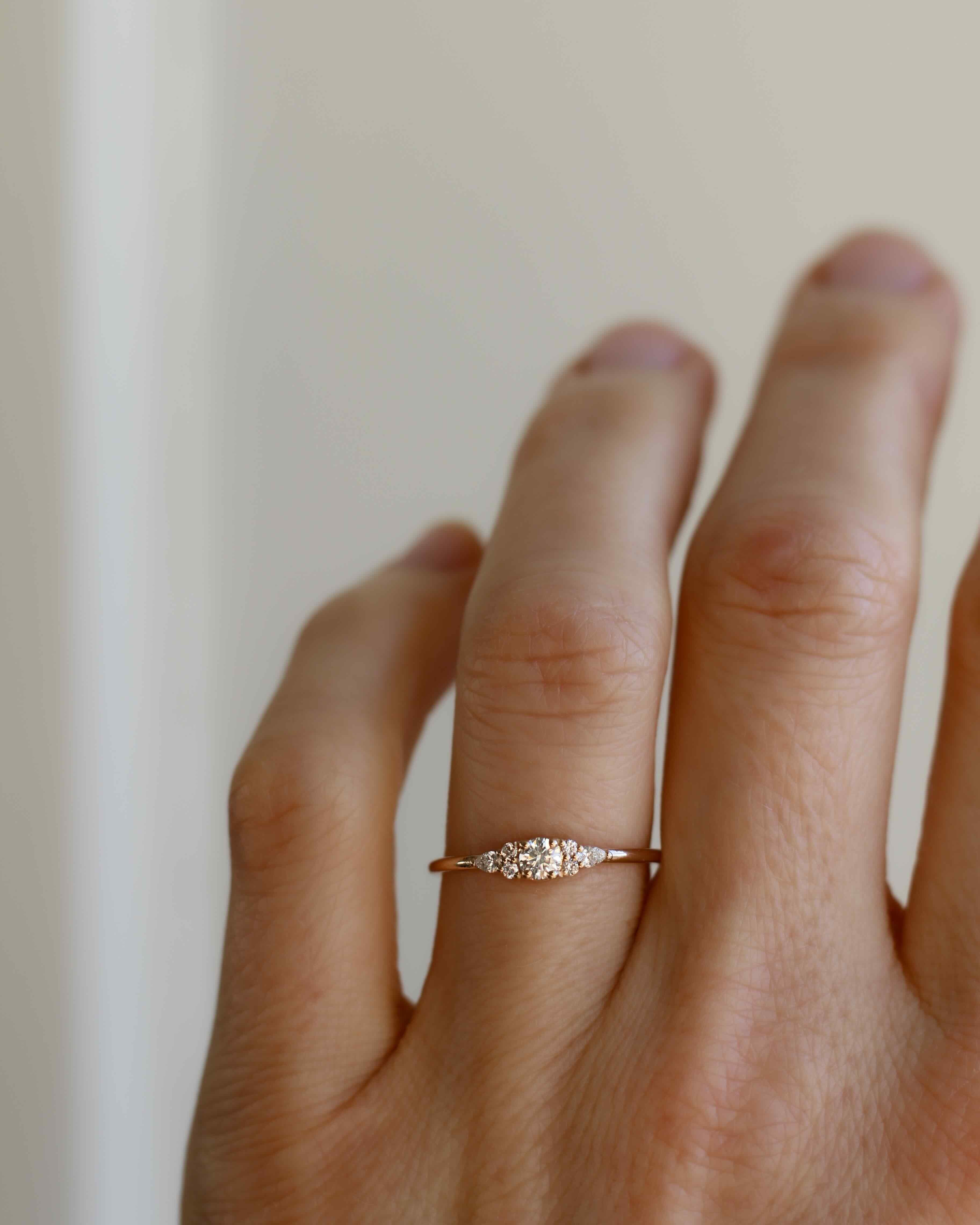 Mini Elise Ring med diamant i mitten och chokladdiamanter på sidorna