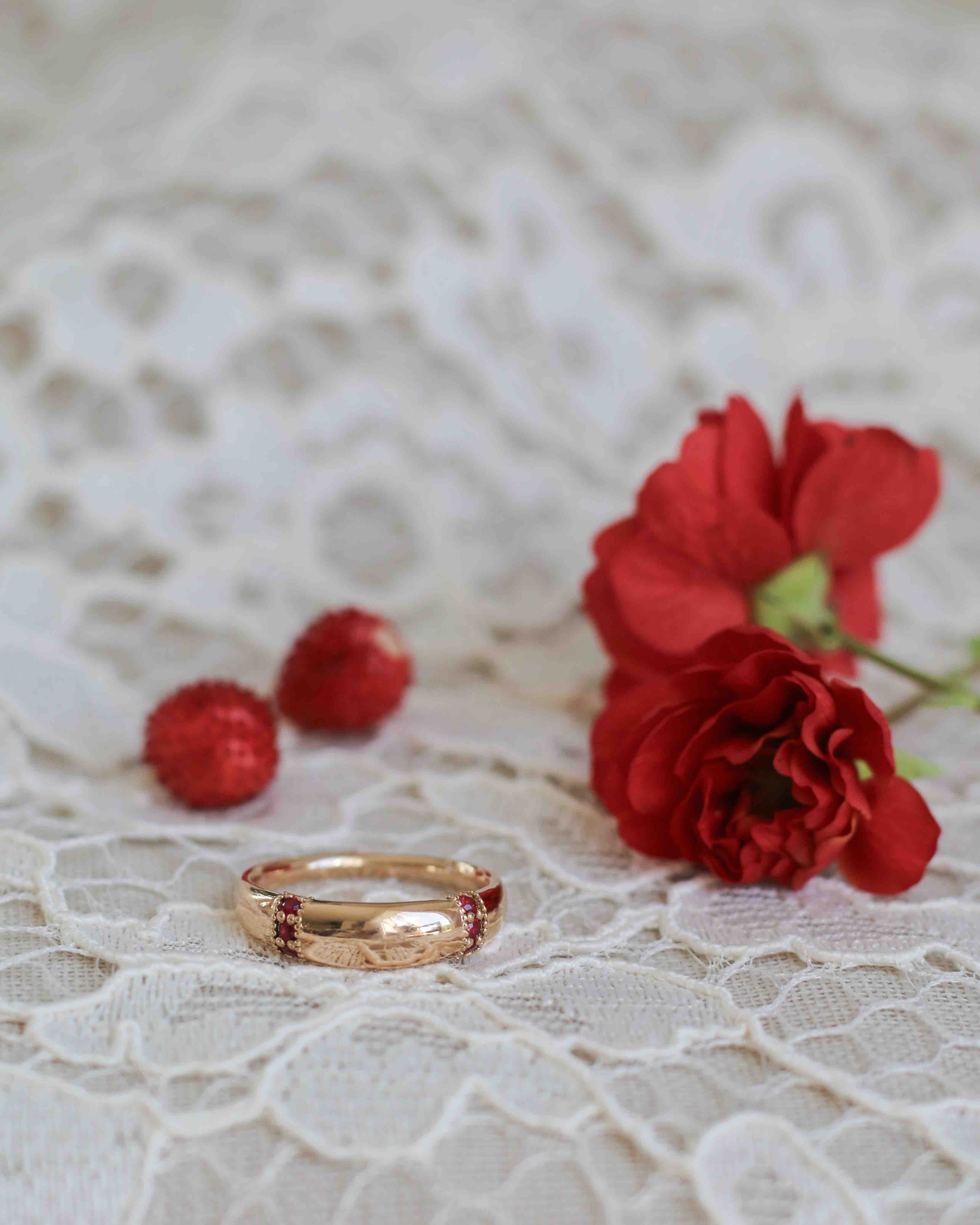 Det var till henne som vi gjorde den första Nonnas Dome Ring med vackra röda rubiner. Det finns en personlig historia som gör att ringen länkar samman Sofies mormor, henne själv och hennes egen dotter Bonnie på ett så fint sätt.