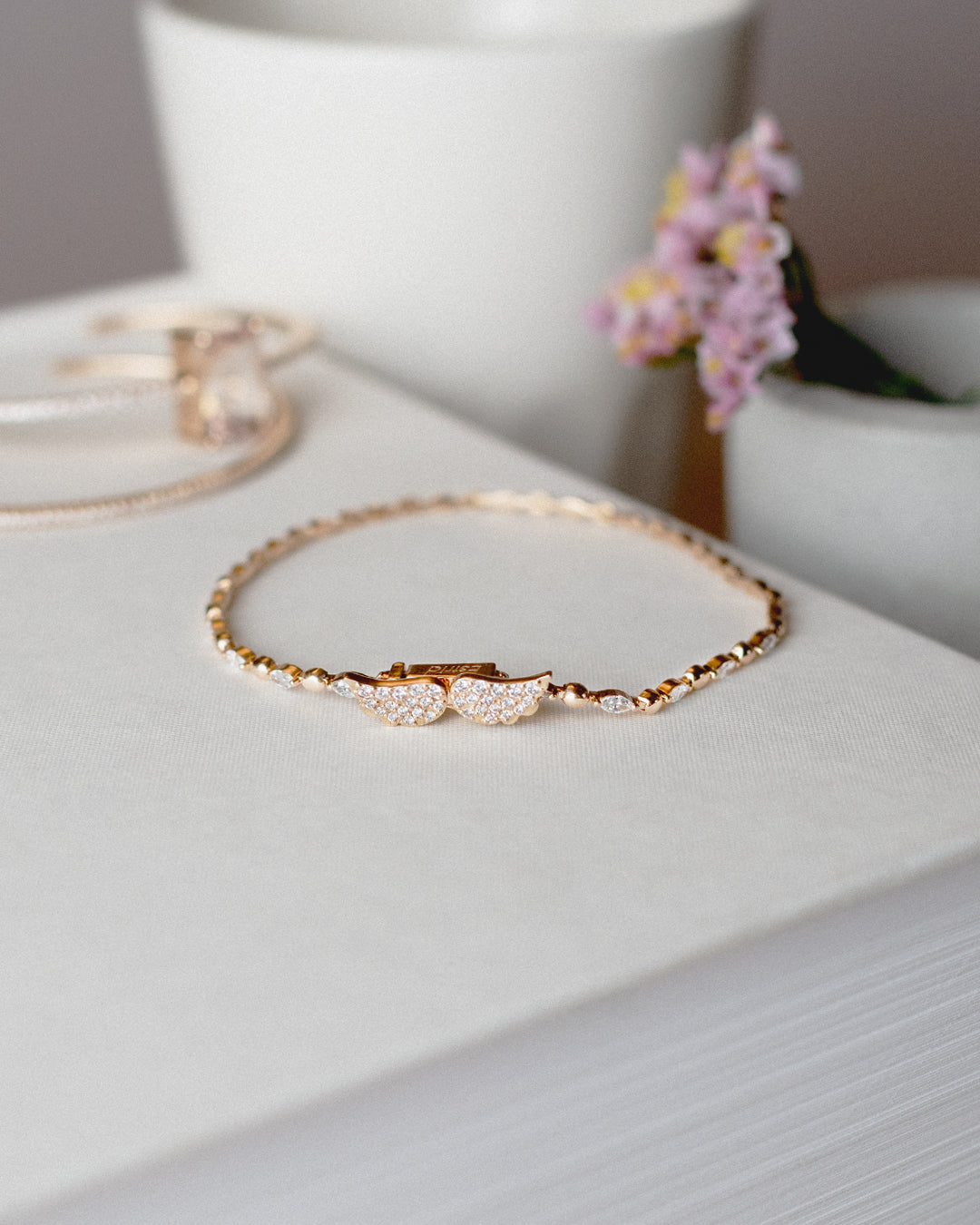 Bespoke Tennis Bracelet with Marquise-Cut Diamonds and Angel Wing Clasp
