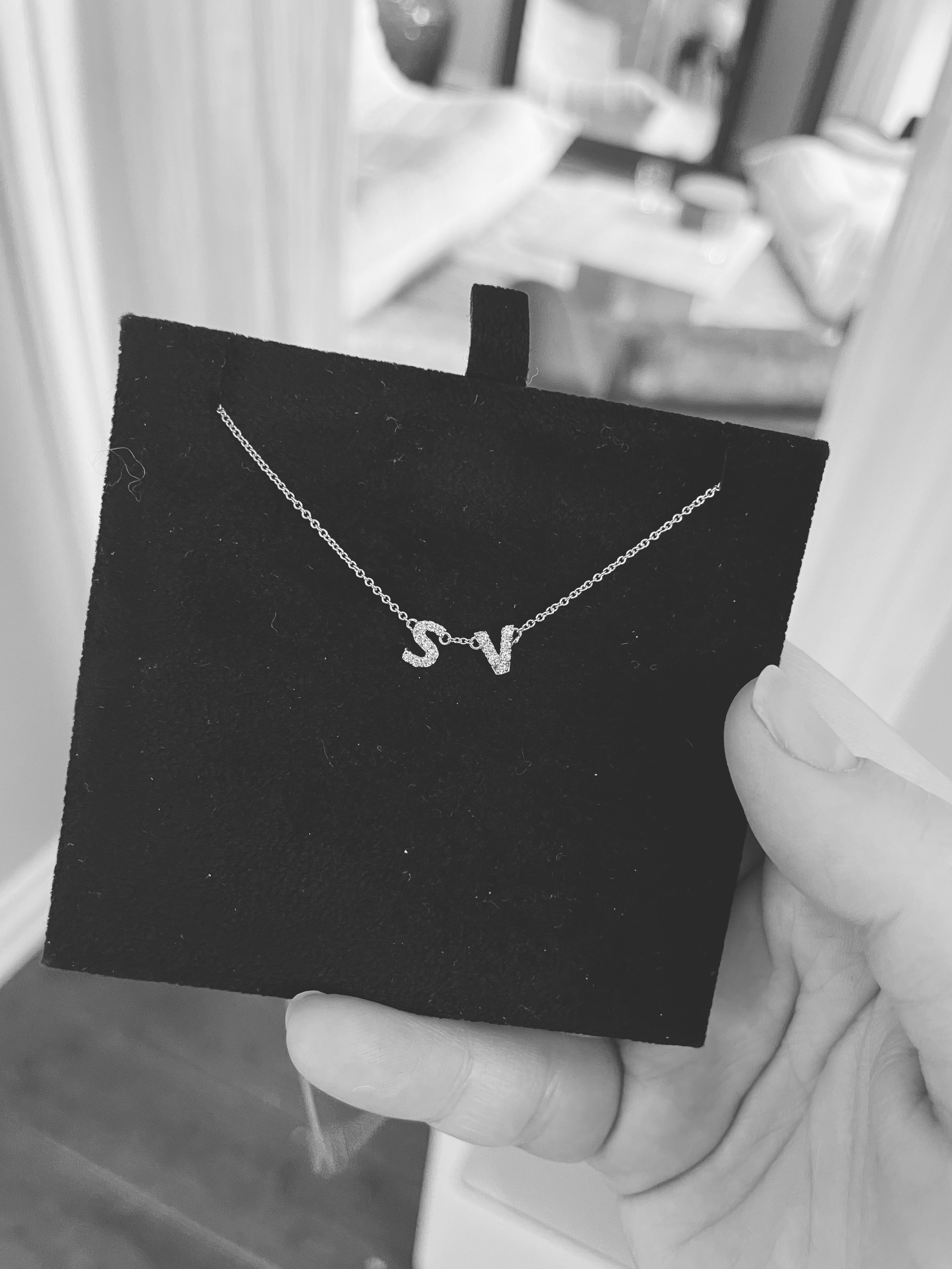 Each letter is covered in 0.005 CT Diamonds TWVS. The total number of diamonds varies between letters.