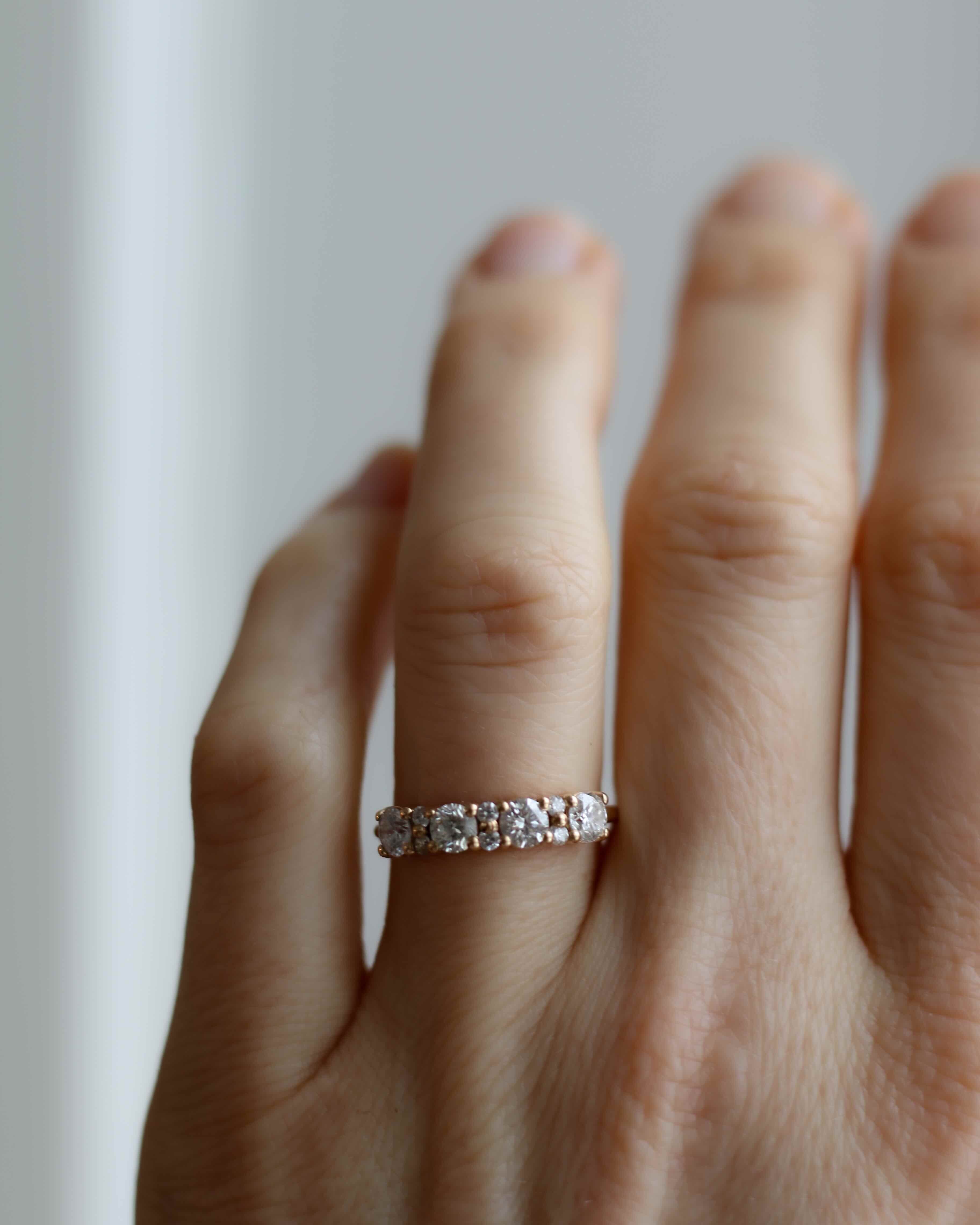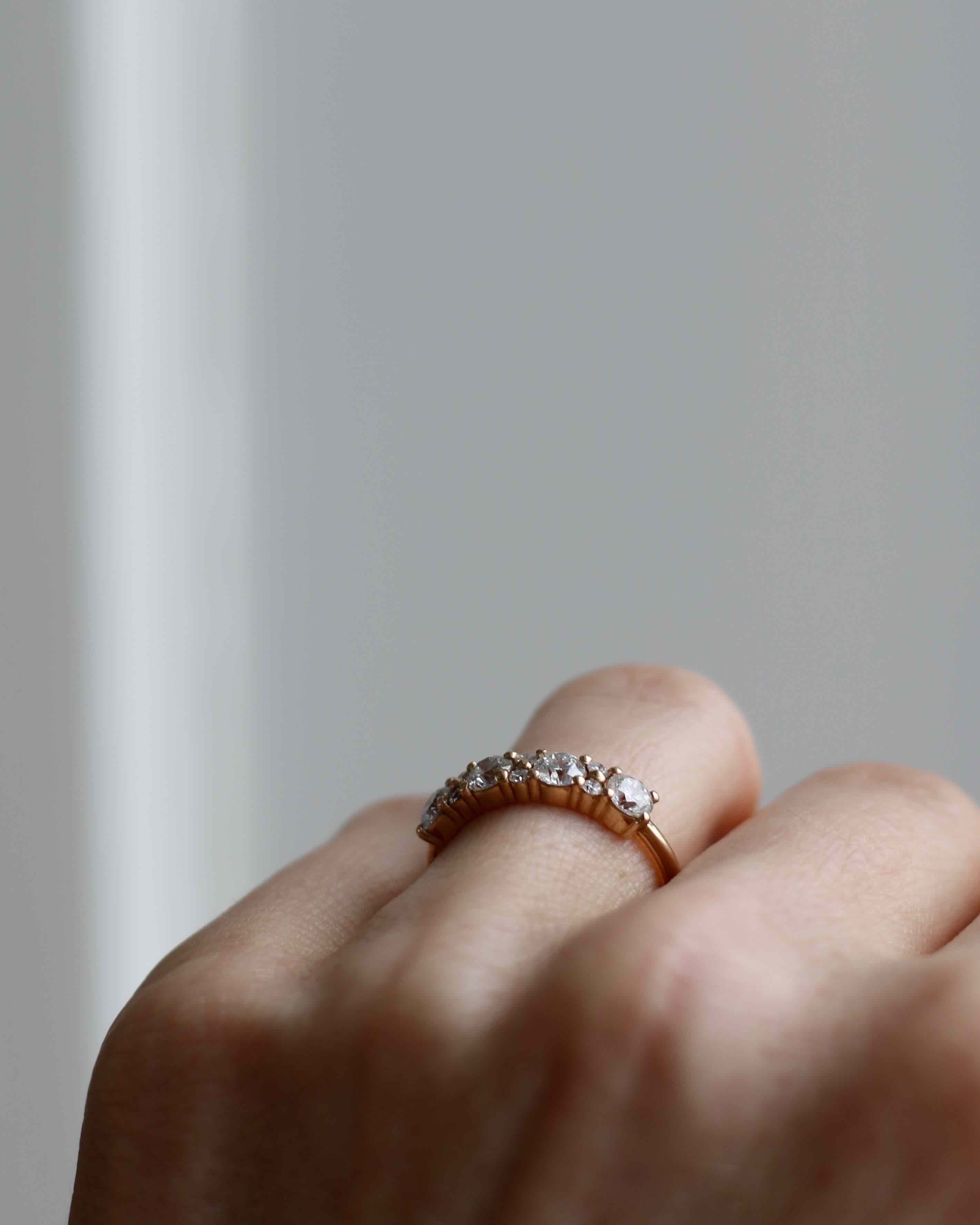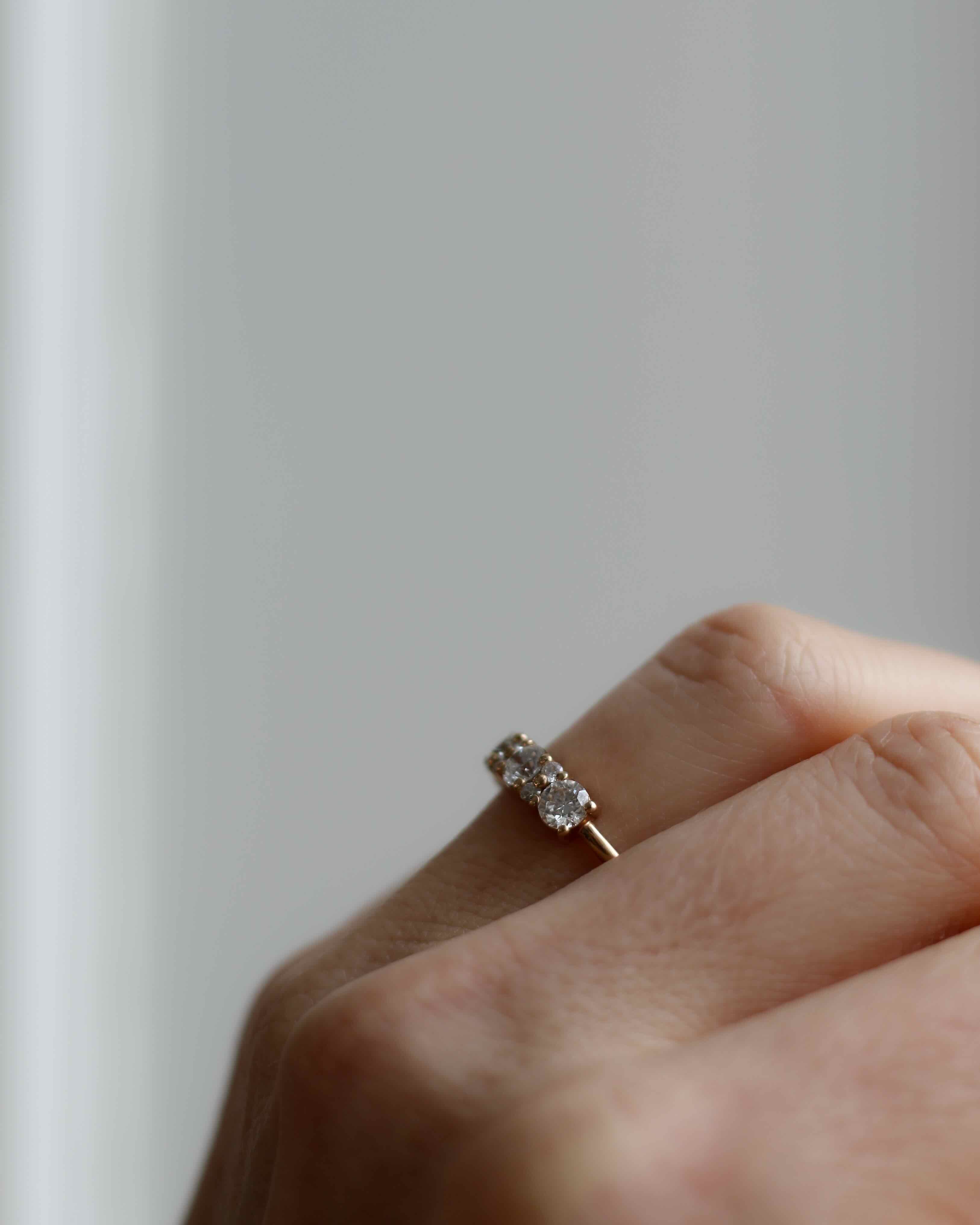 Anita is beautiful on its own as a statement piece, but also fantastic to combine with a thin diamond band such as the Jade Petite Ring or Marquise Ring