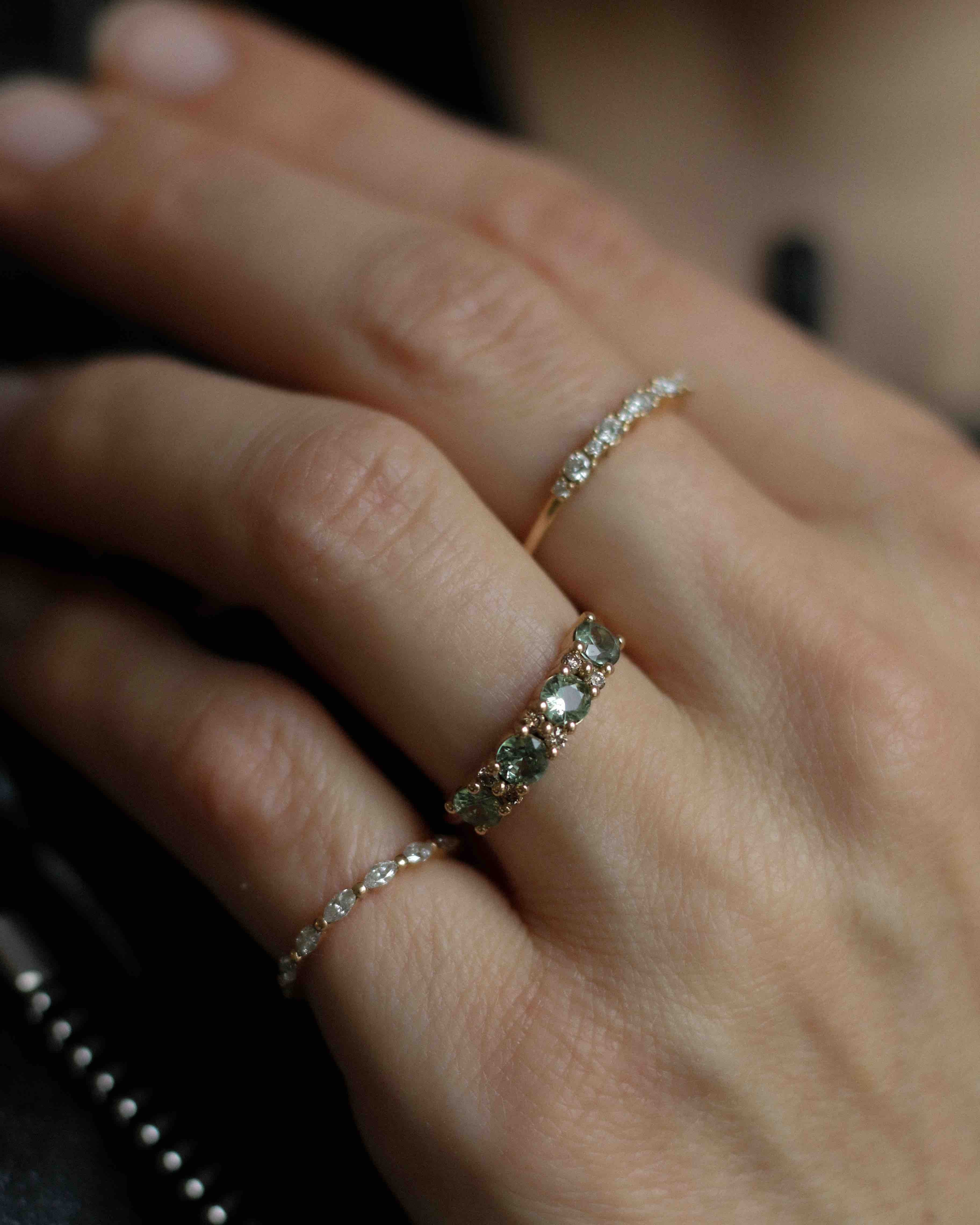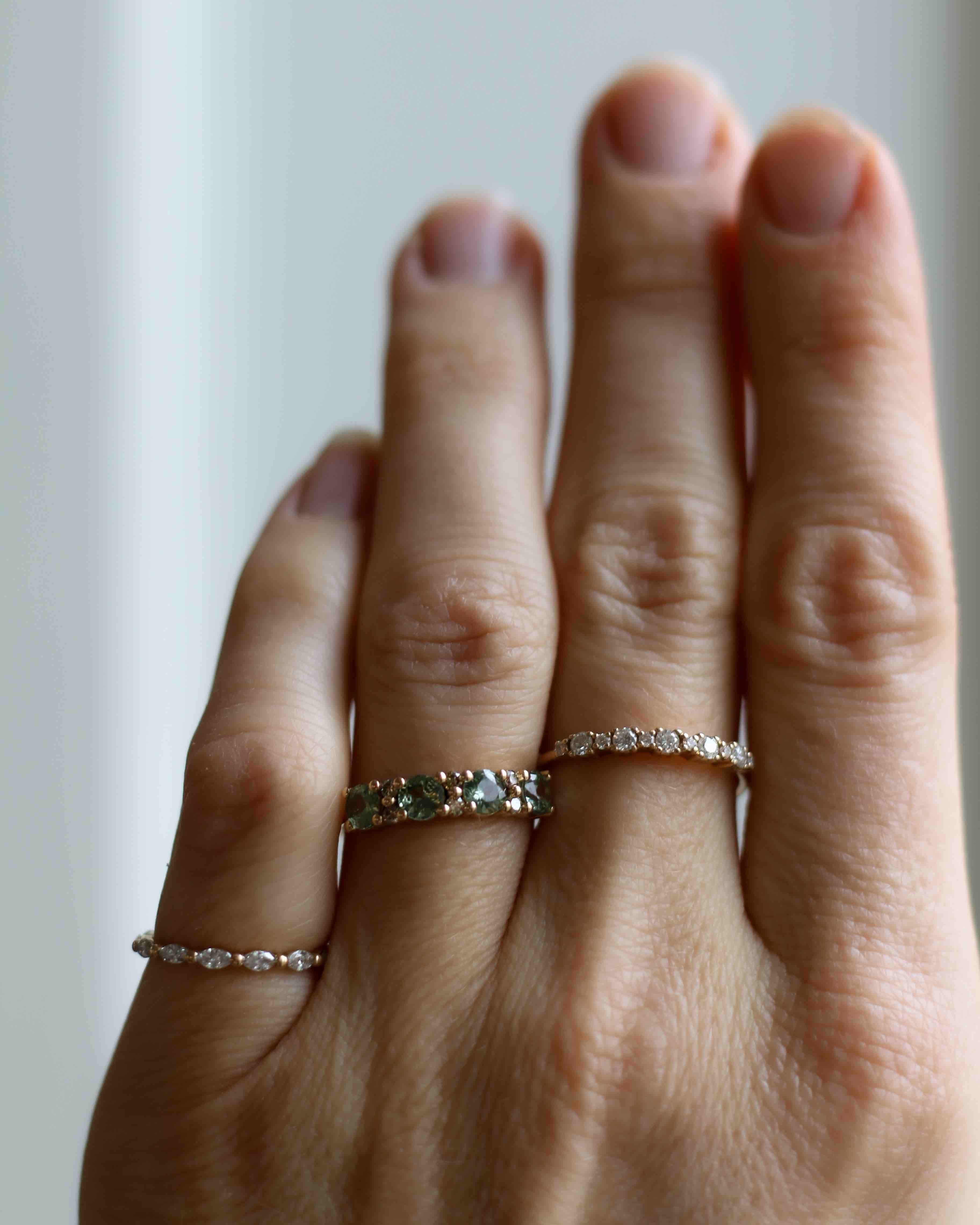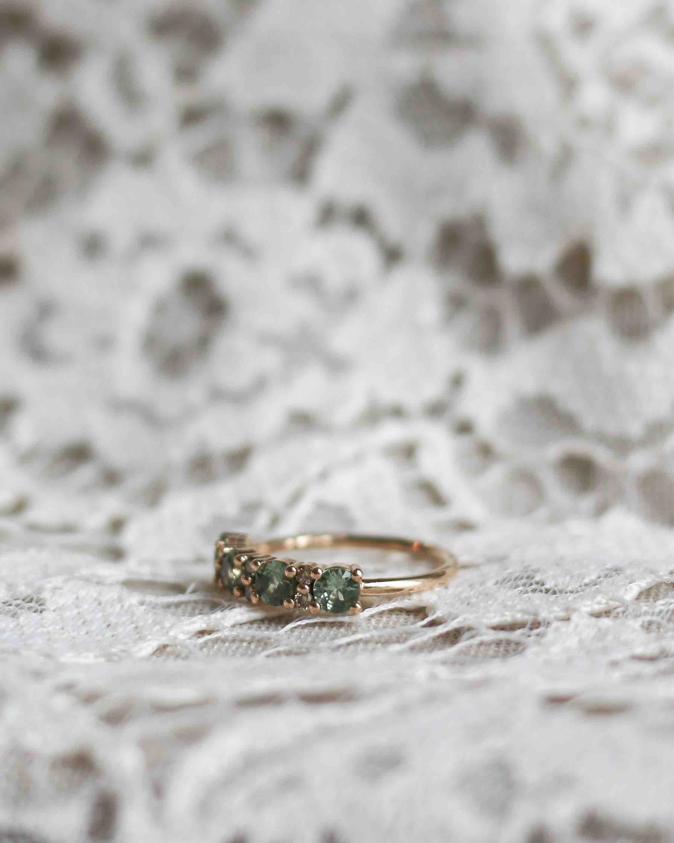 Anita Ring with Olive Green Sapphires and Champagne Diamonds