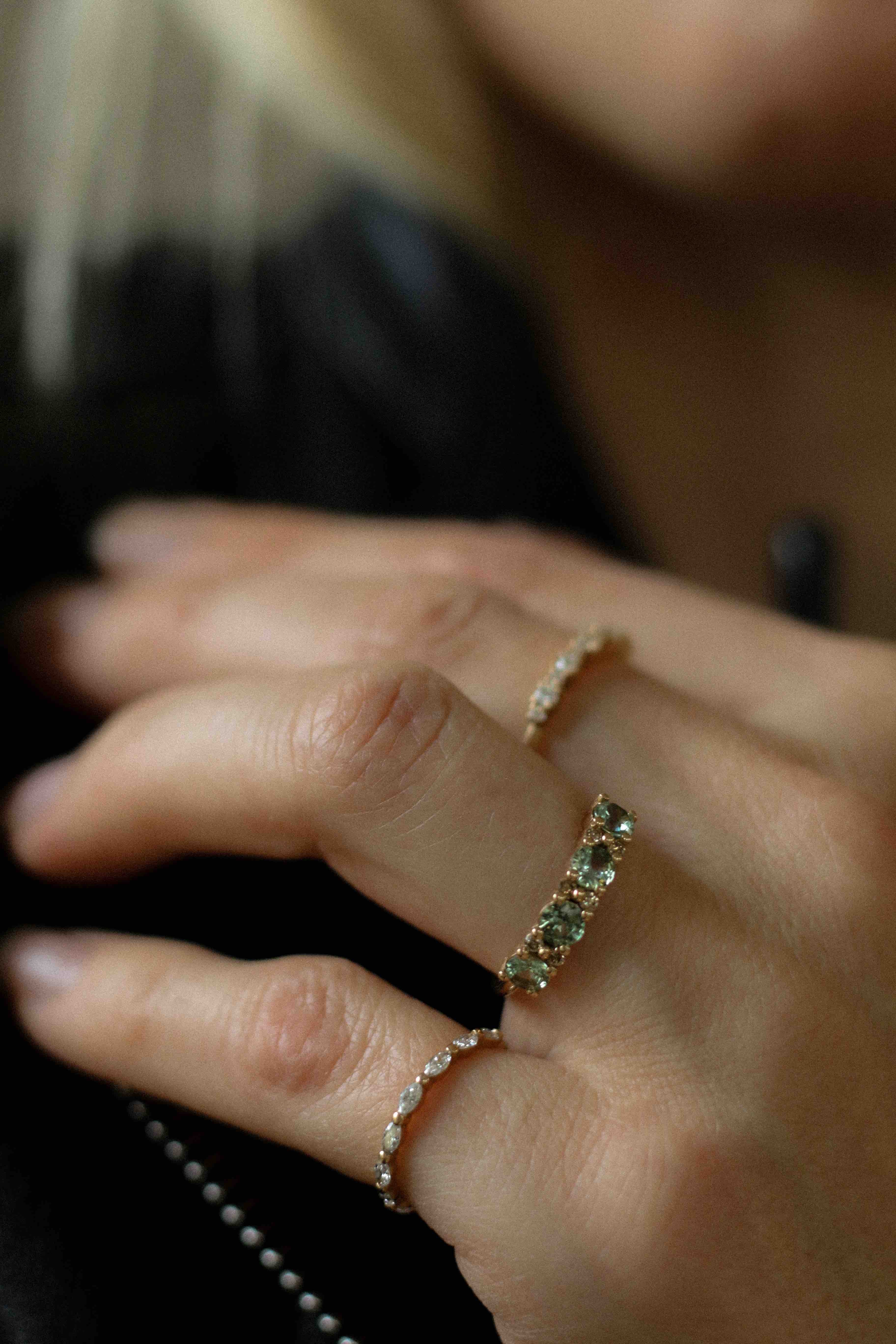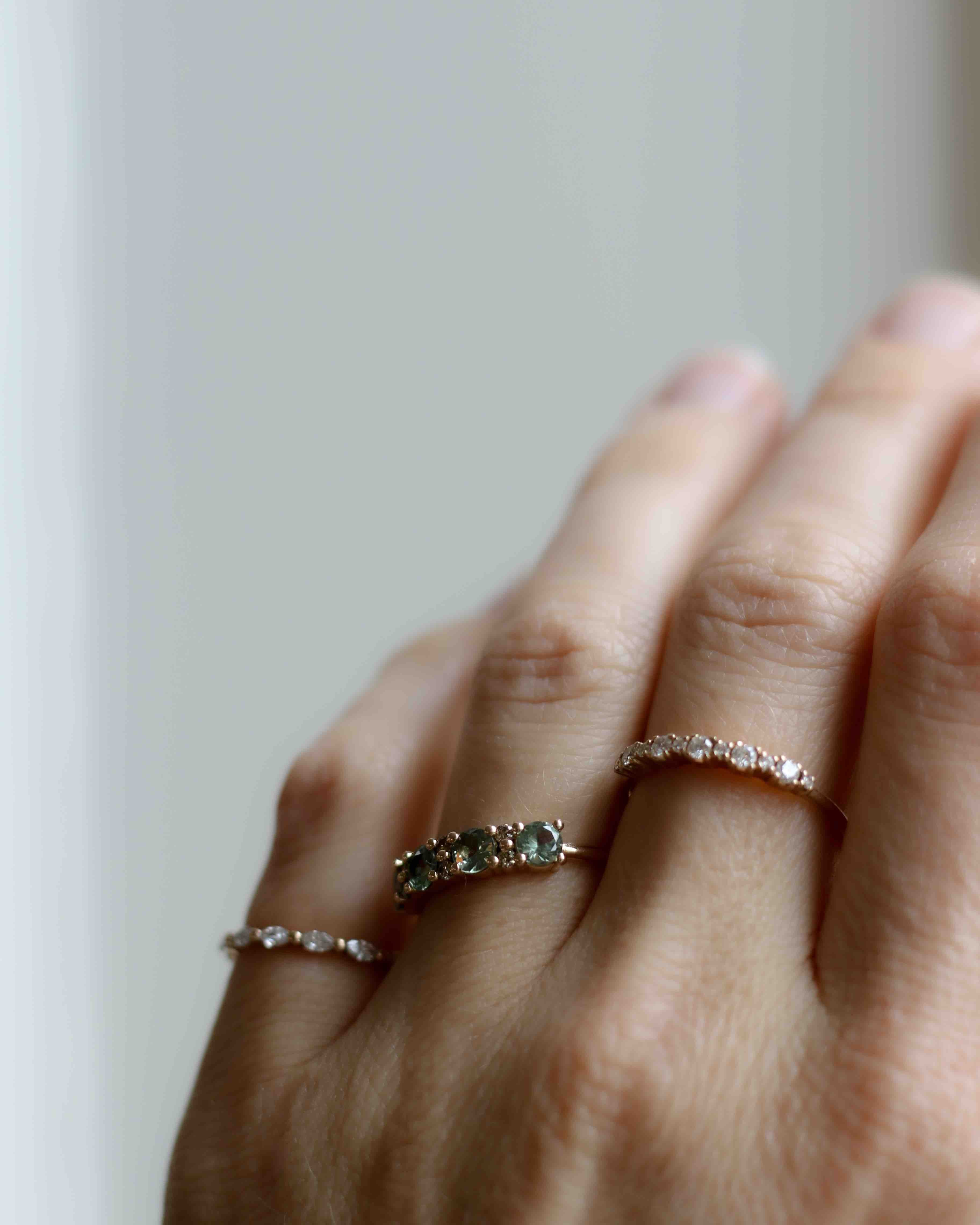 Anita is beautiful on its own as a statement piece, but also fantastic to combine with a thin diamond band such as the Jade Petite Ring or Marquise Ring