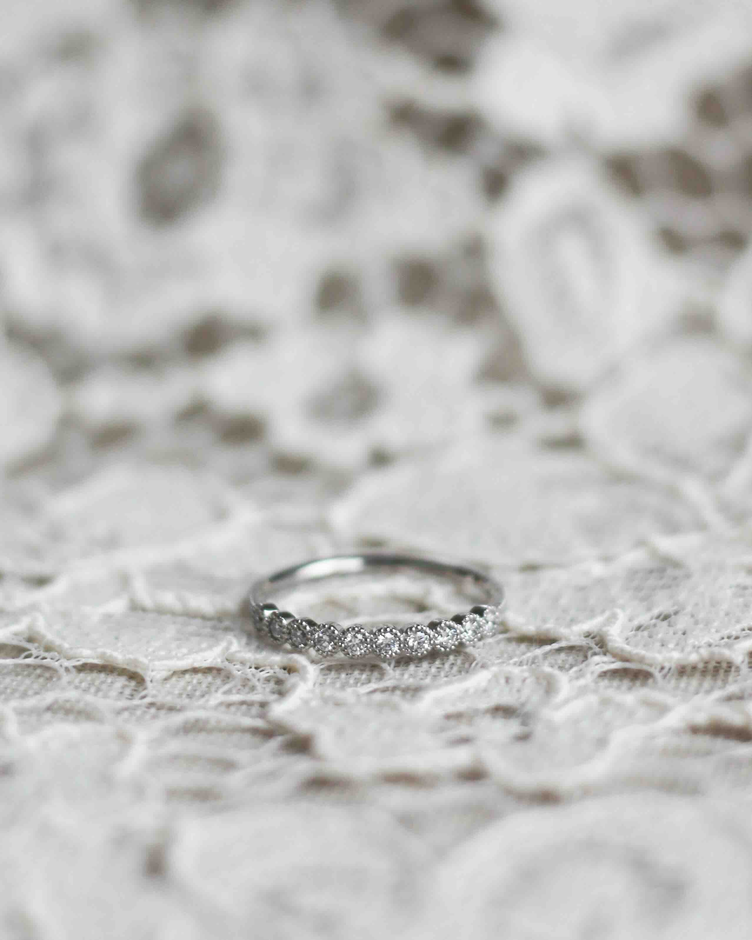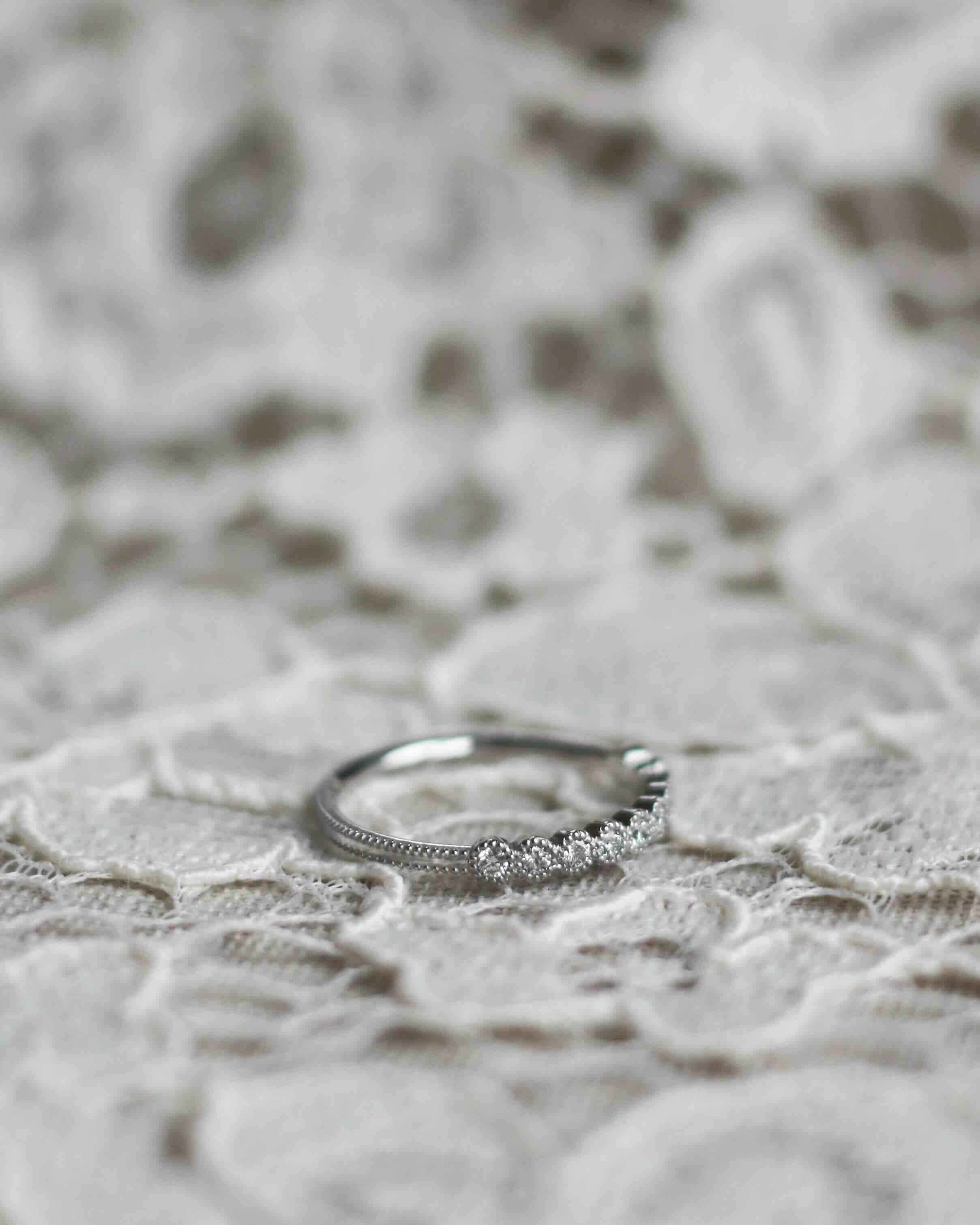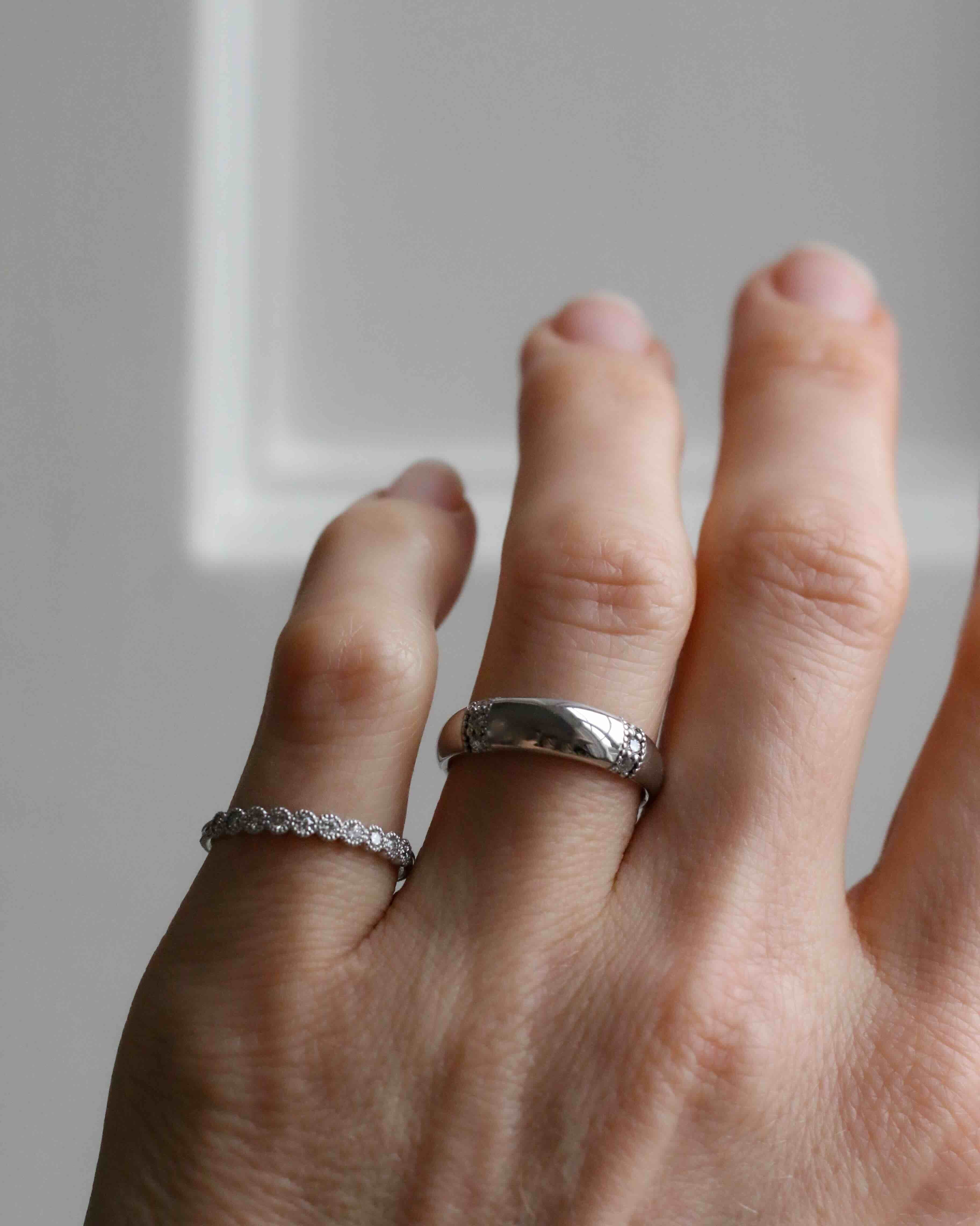 Astrid is an eternity band with a unique shimmer, thanks to the small gold dots, the milgrain decor. Milgrain was a common decoration on jewelry at the beginning of the last century (18/1900).
