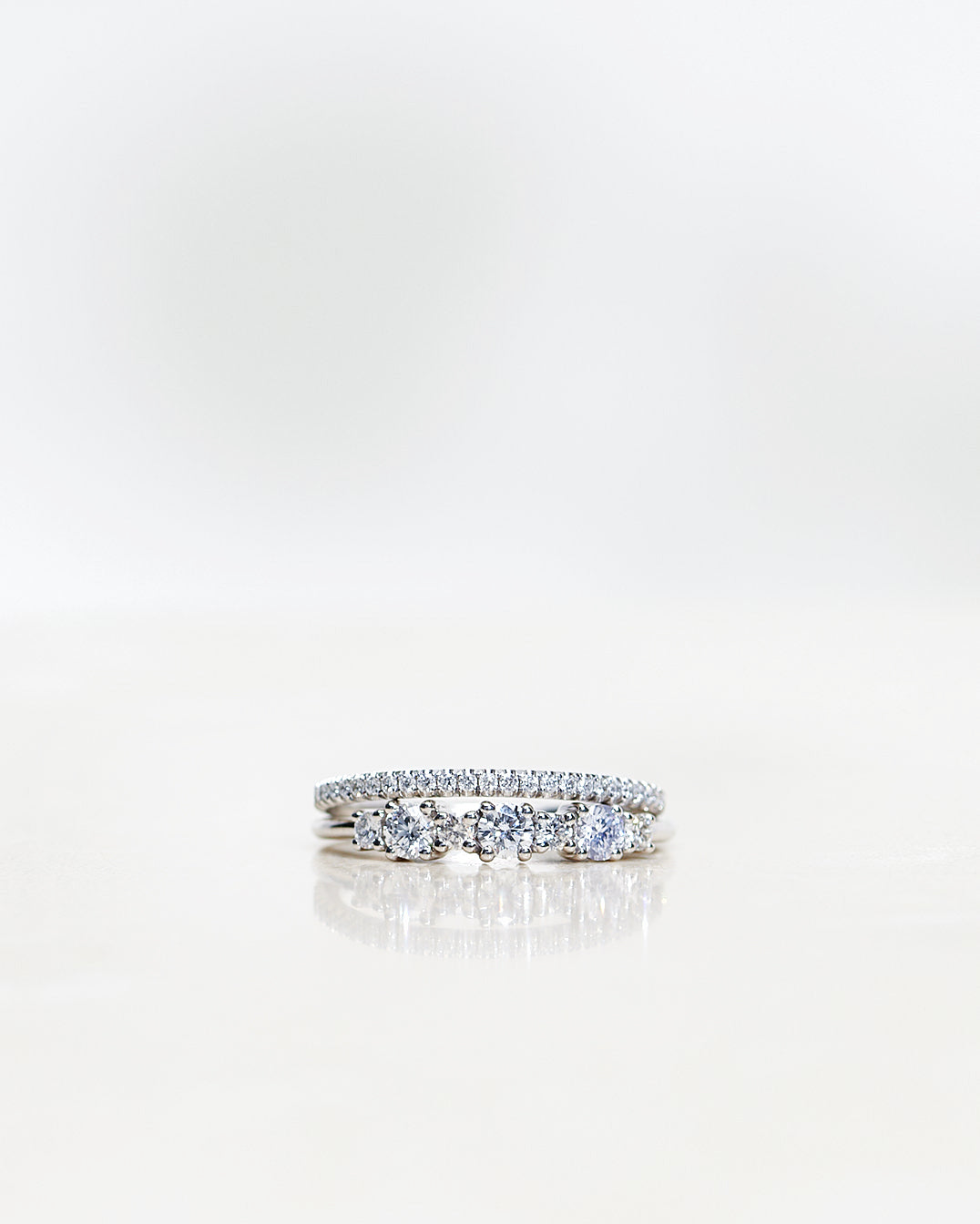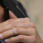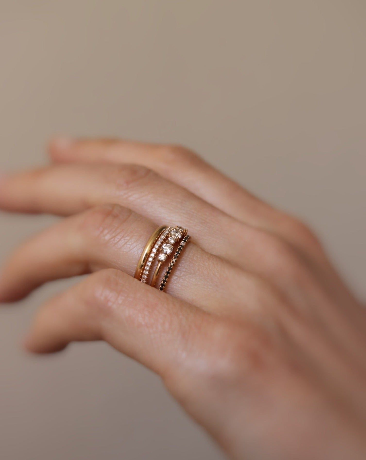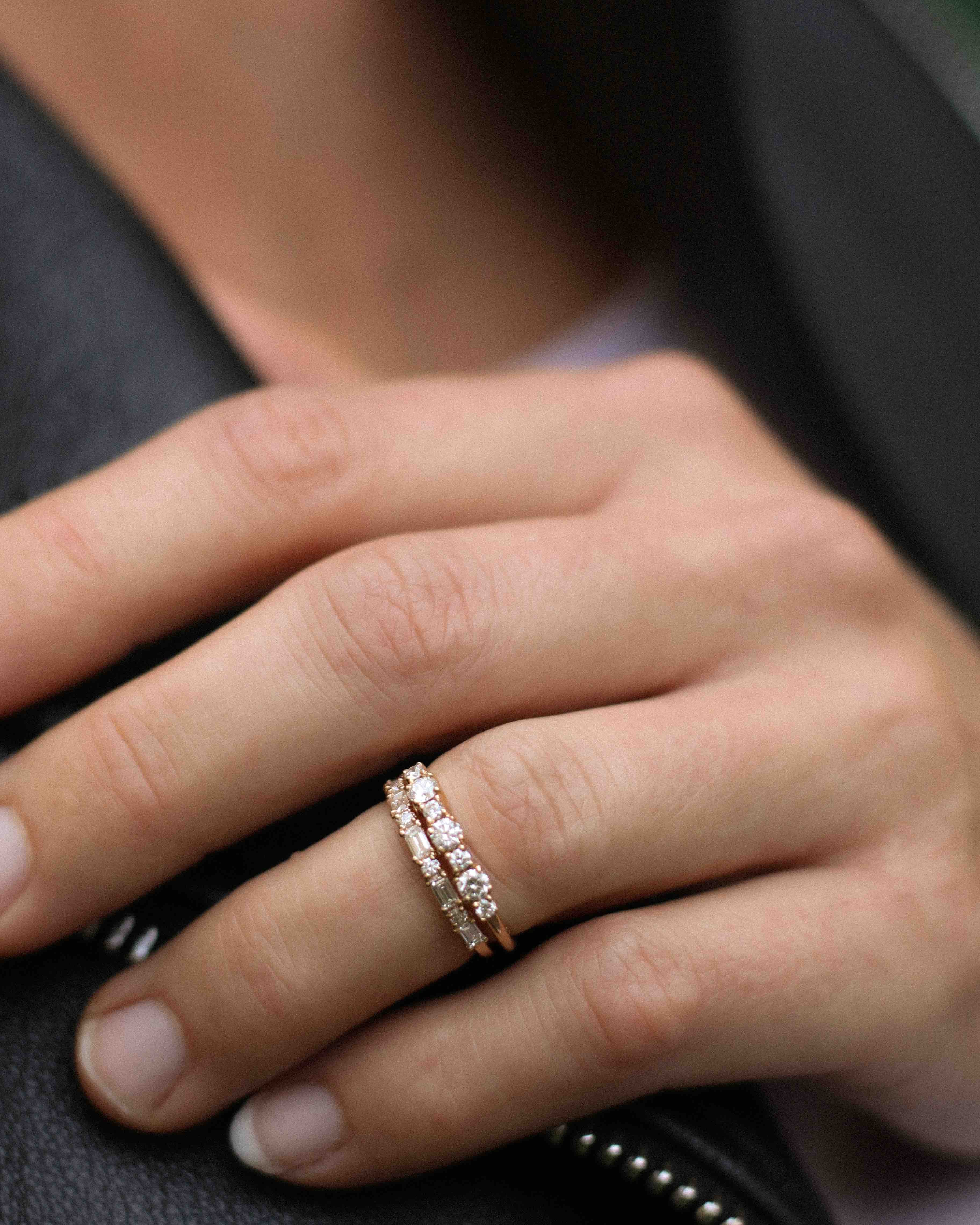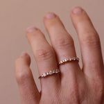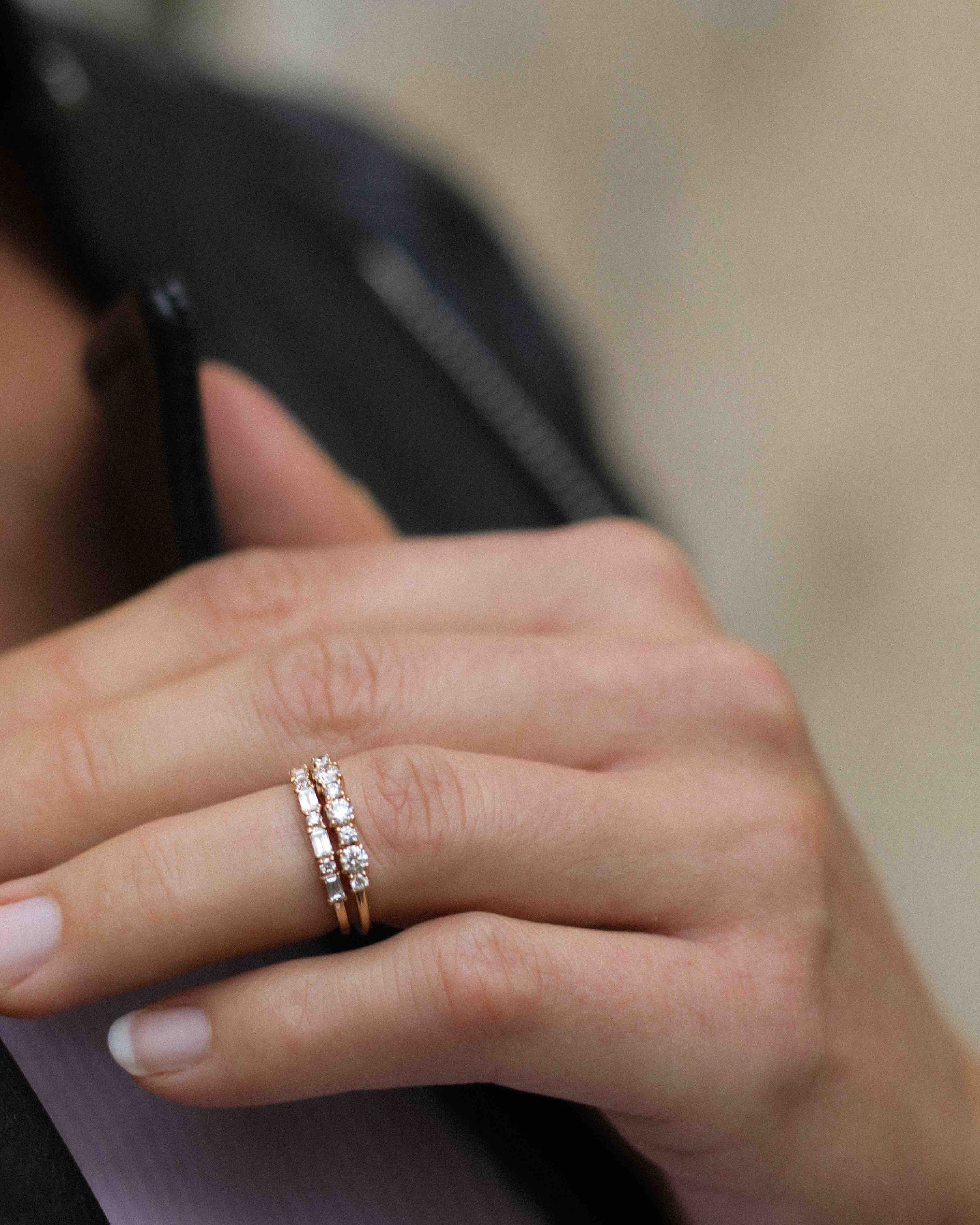 Many women choose between Edith Ring or Brigitte Ring. Our recommendation is to think about how you want to stack your ring in the future? Edith Ring can only be stacked with curved bands, while Brigitte Ring can be stacked with most other rings including eternity bands, solitaires, curved bands etc.