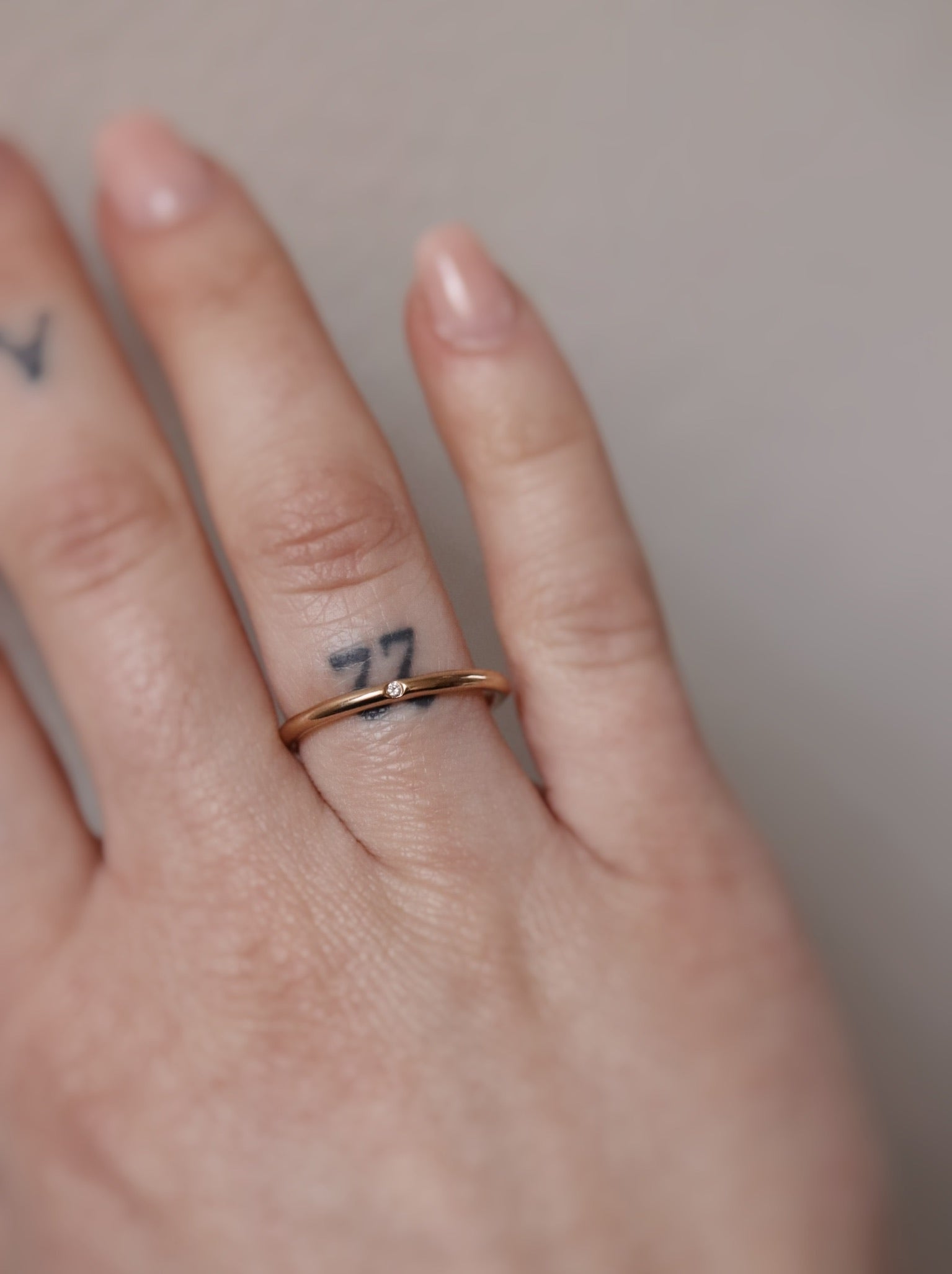 The first ring we made! I wanted to create a little gold ring with a diamond that you could see only if you looked closely. I still think it's such a beautiful, perfect everyday ring! Love Cecilia