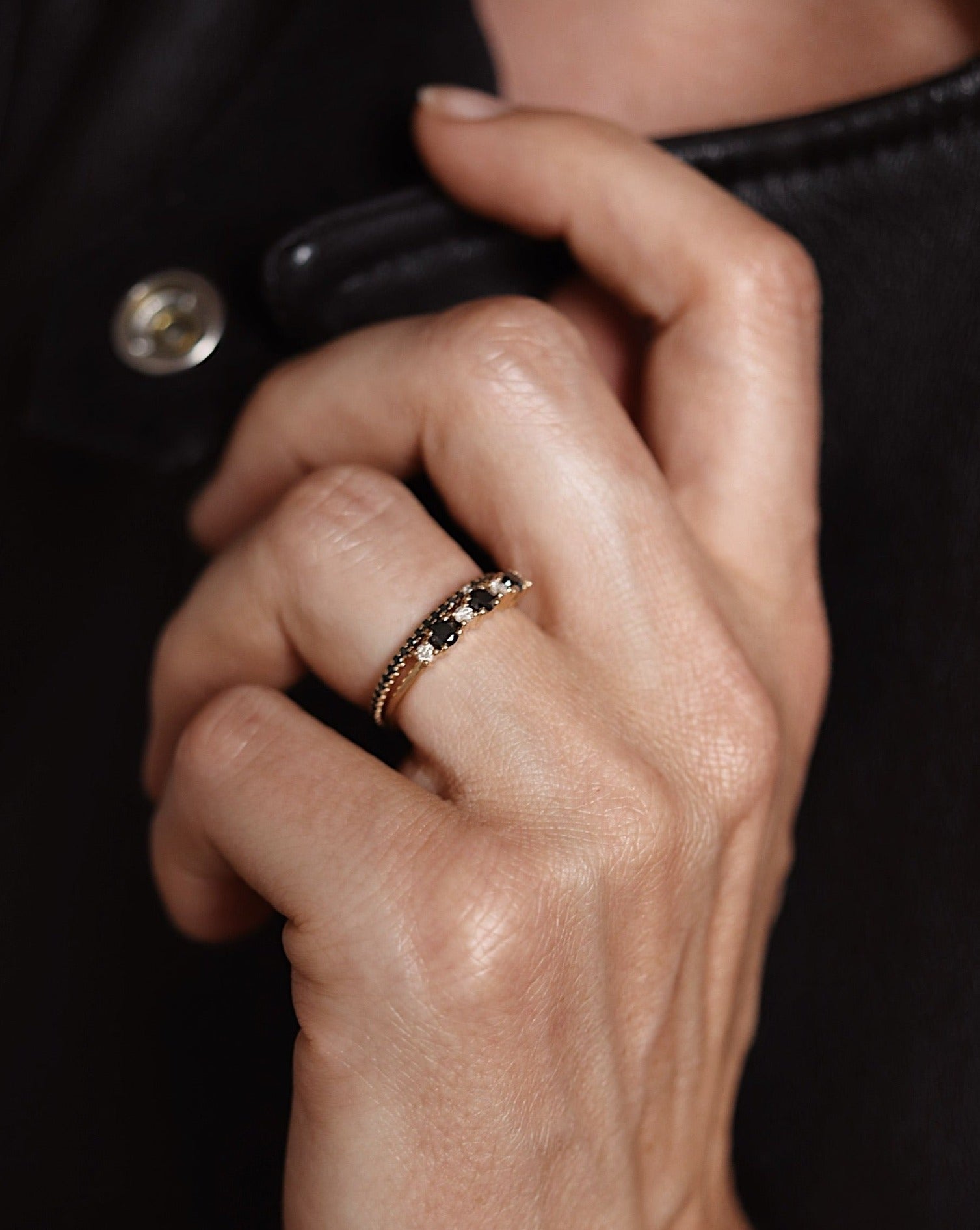 Jade Petite Ring with Black Diamonds