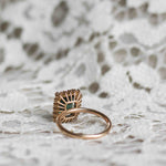This exclusive ring is a real statement piece. It features a stunning natural tourmaline highlighted by a halo of diamonds.