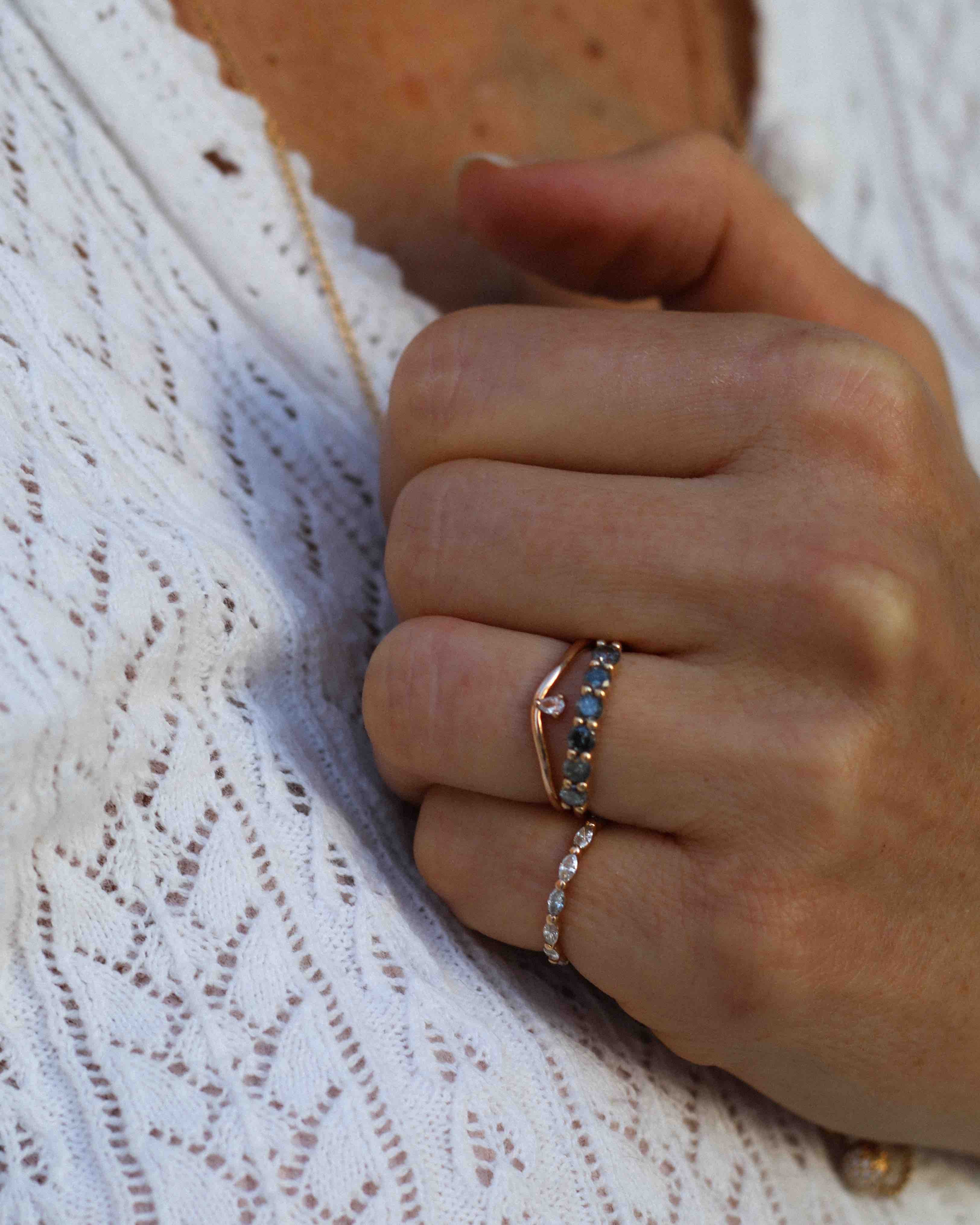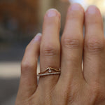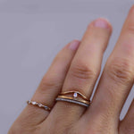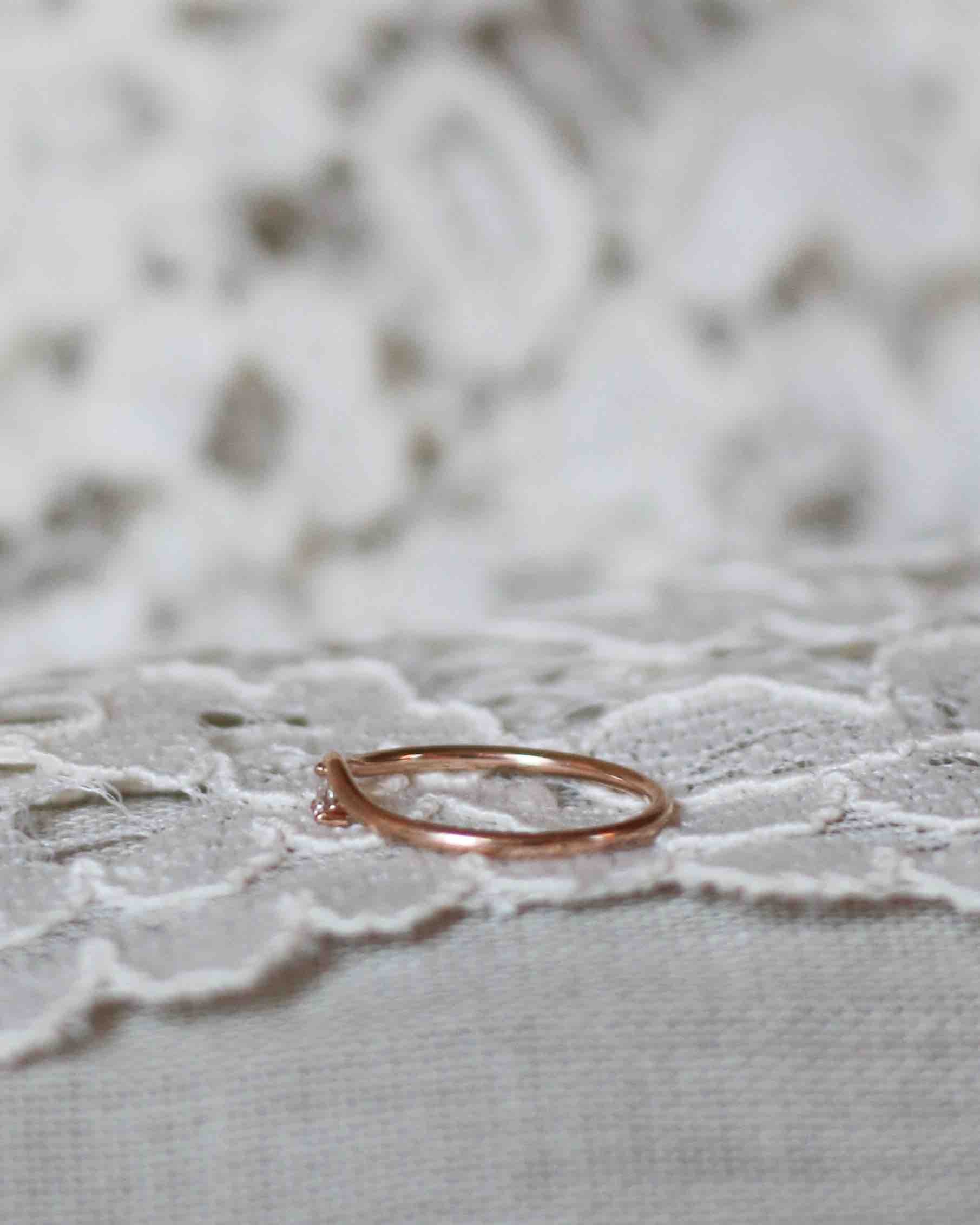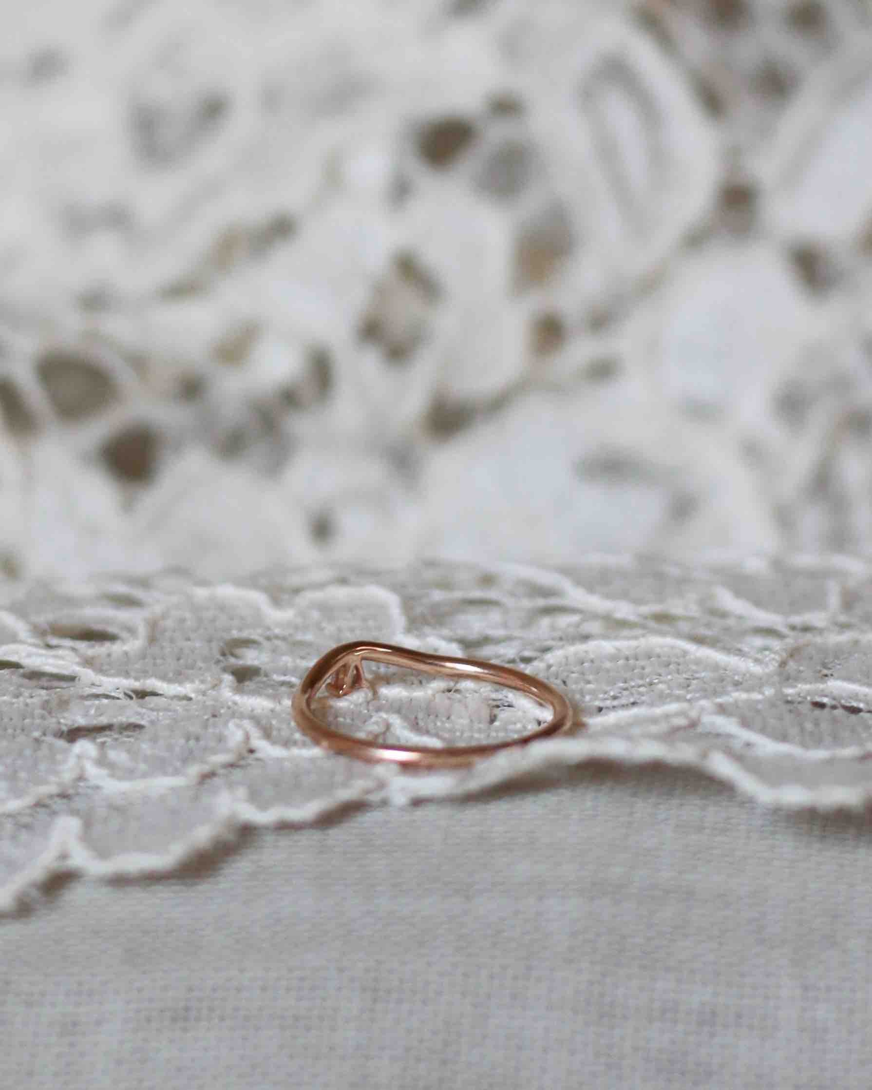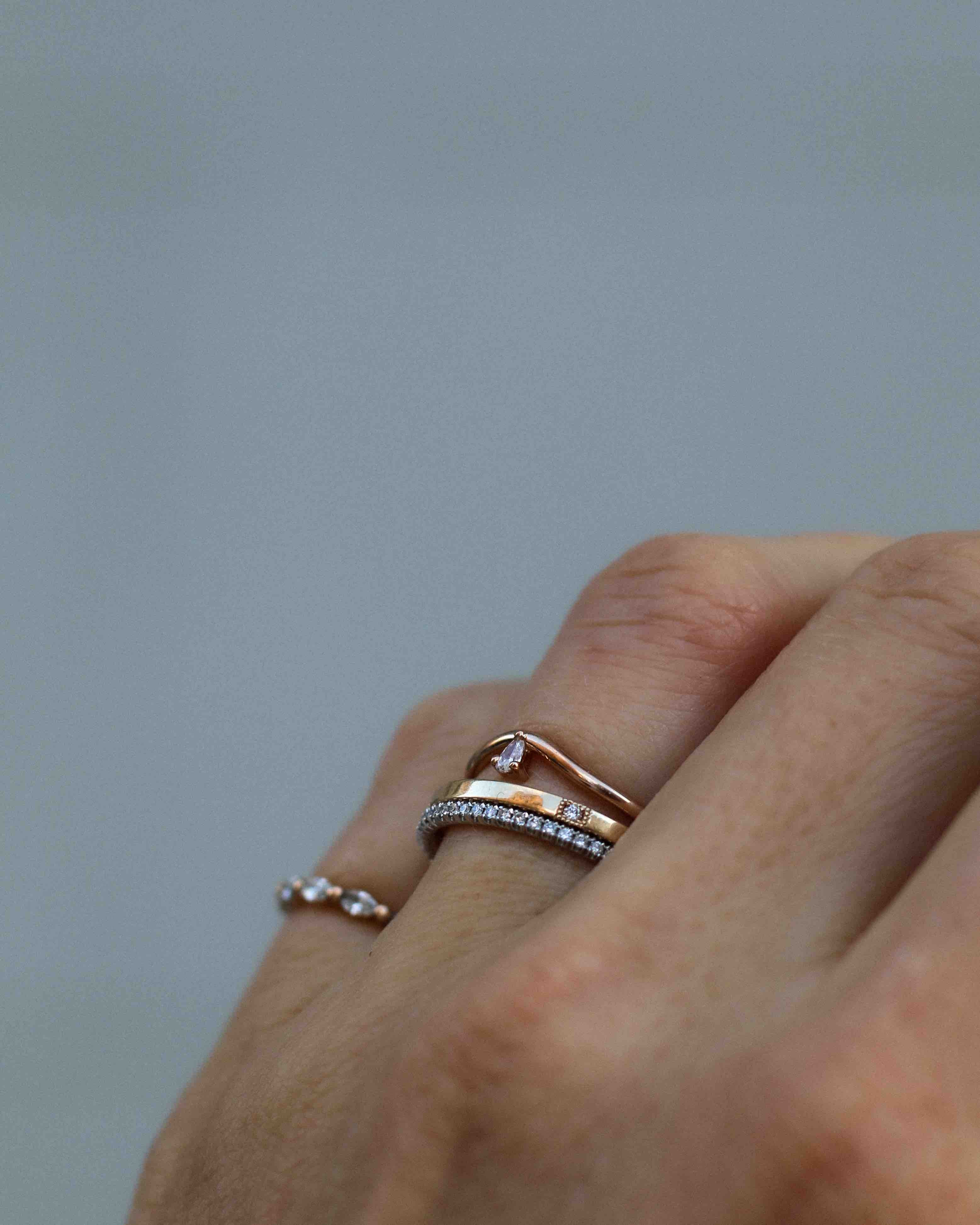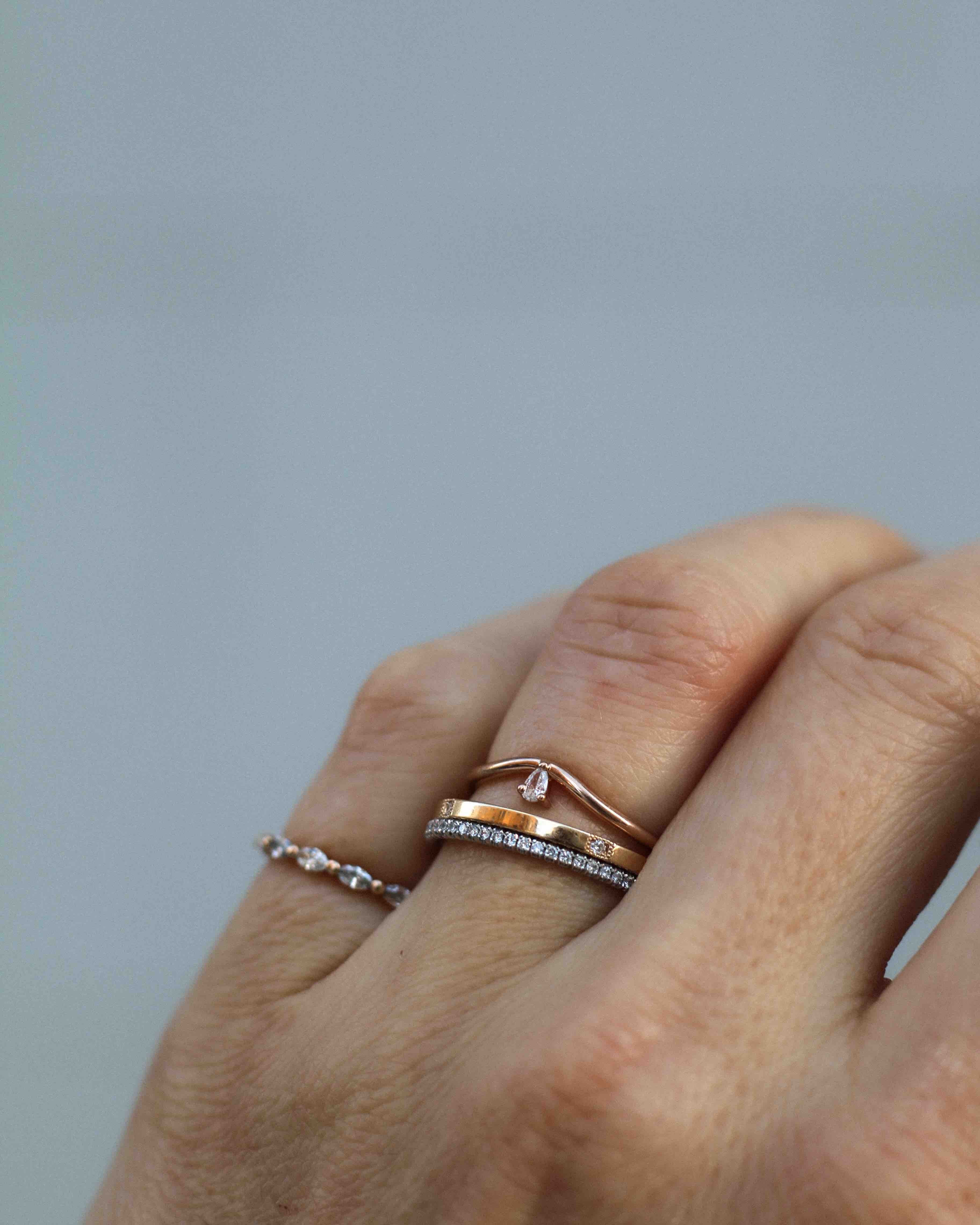 The ring band is curved and made to sit as a beautiful finish to your ring stack. So beautiful to wear on top or at the bottom of your stack of many rings!