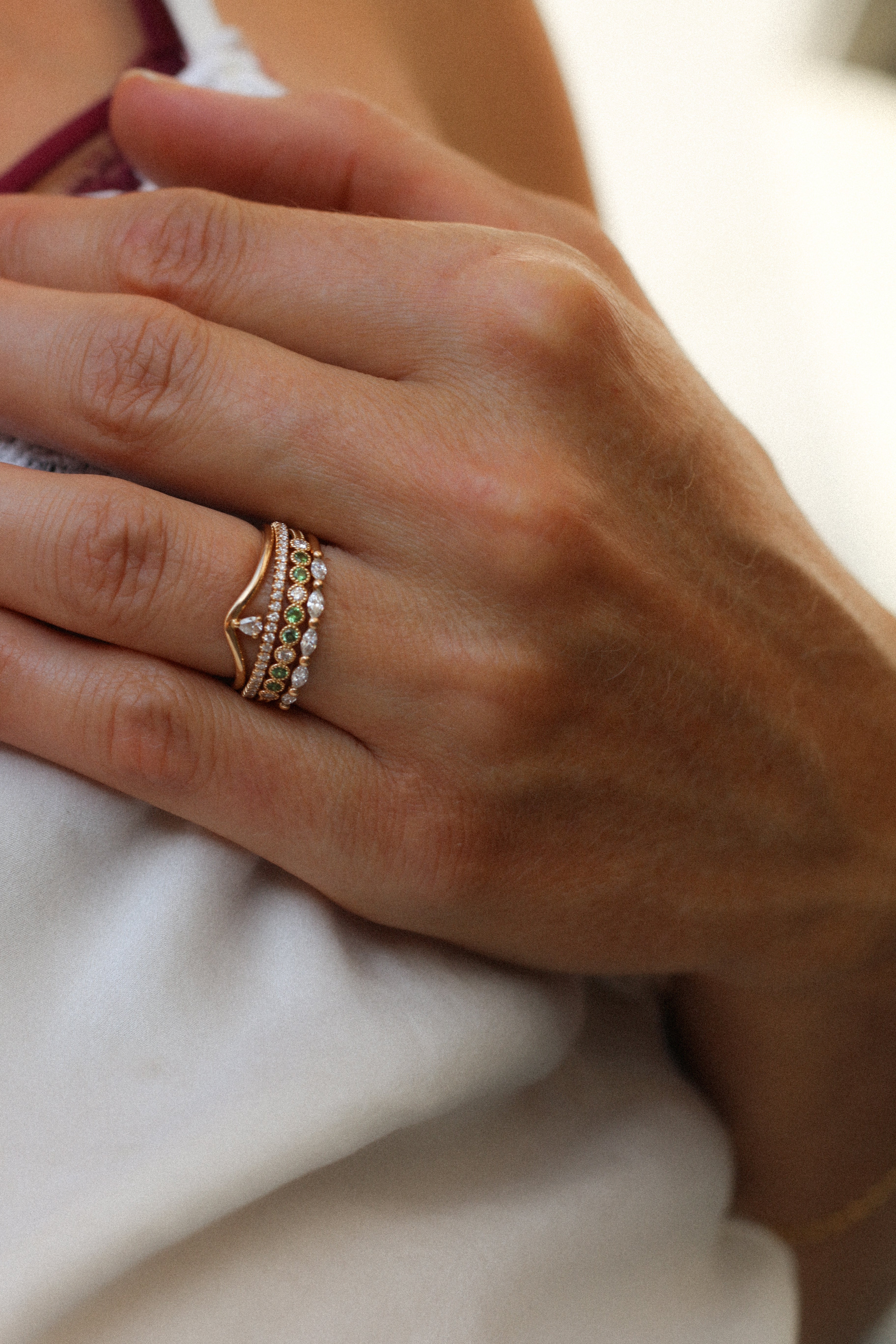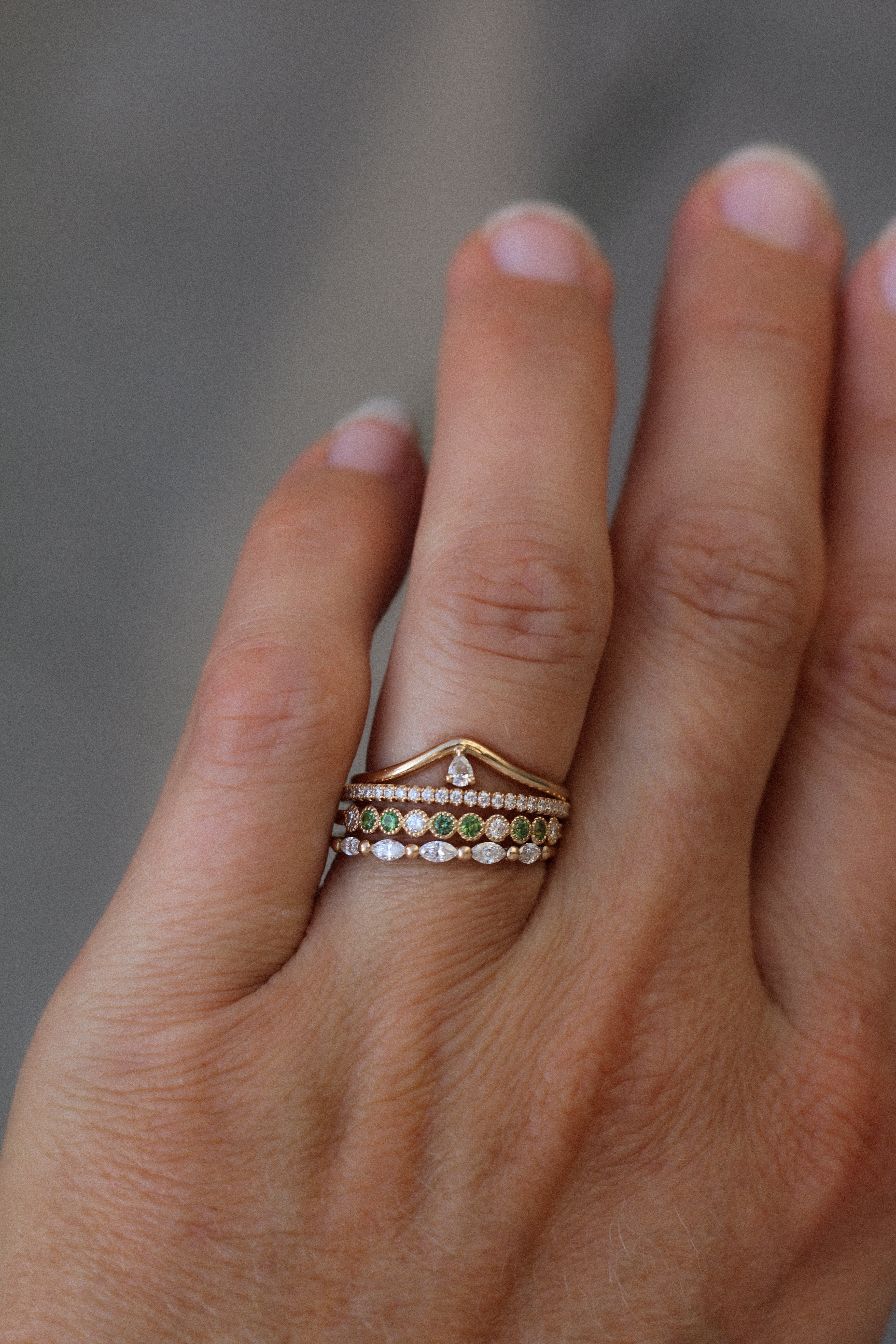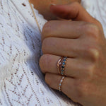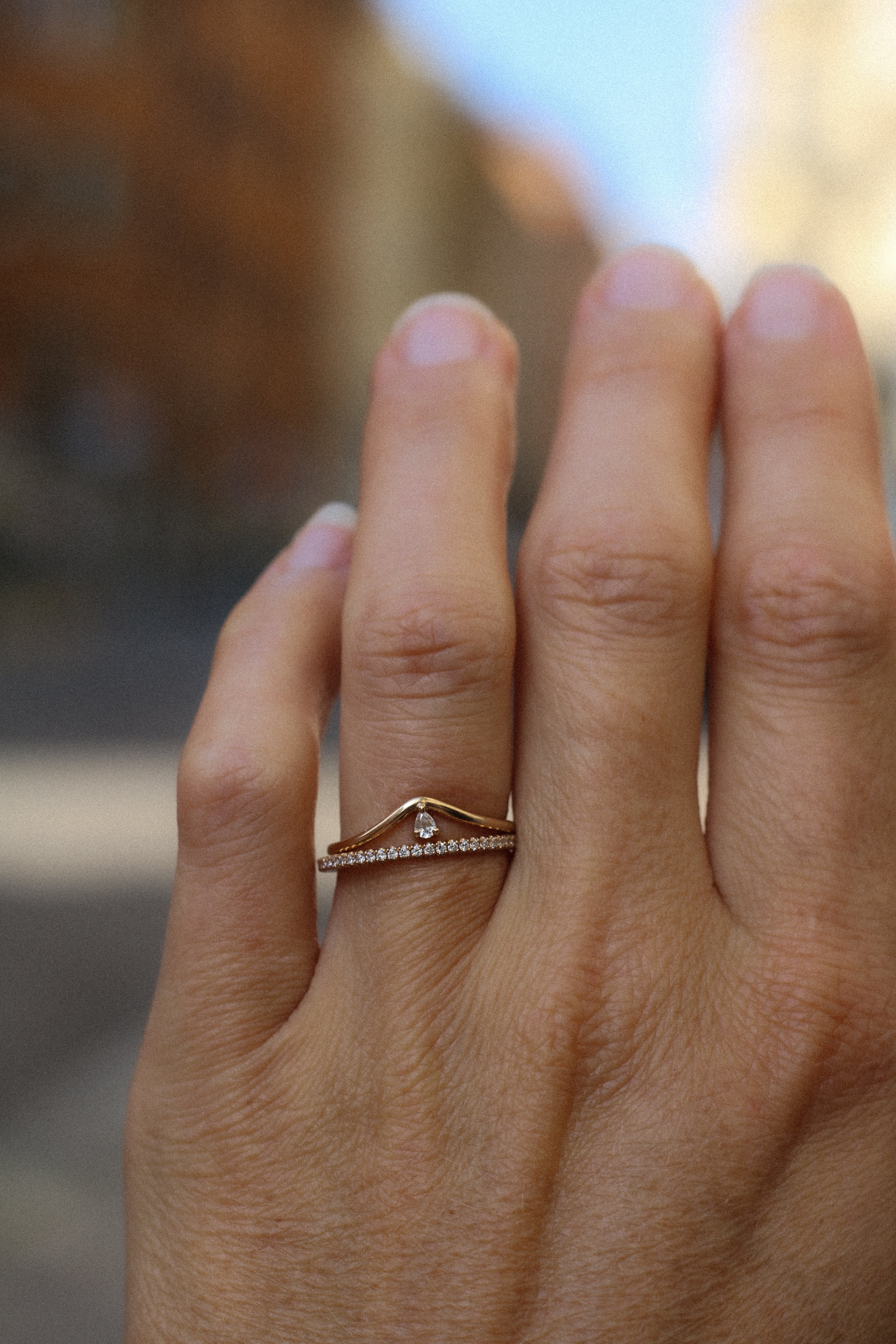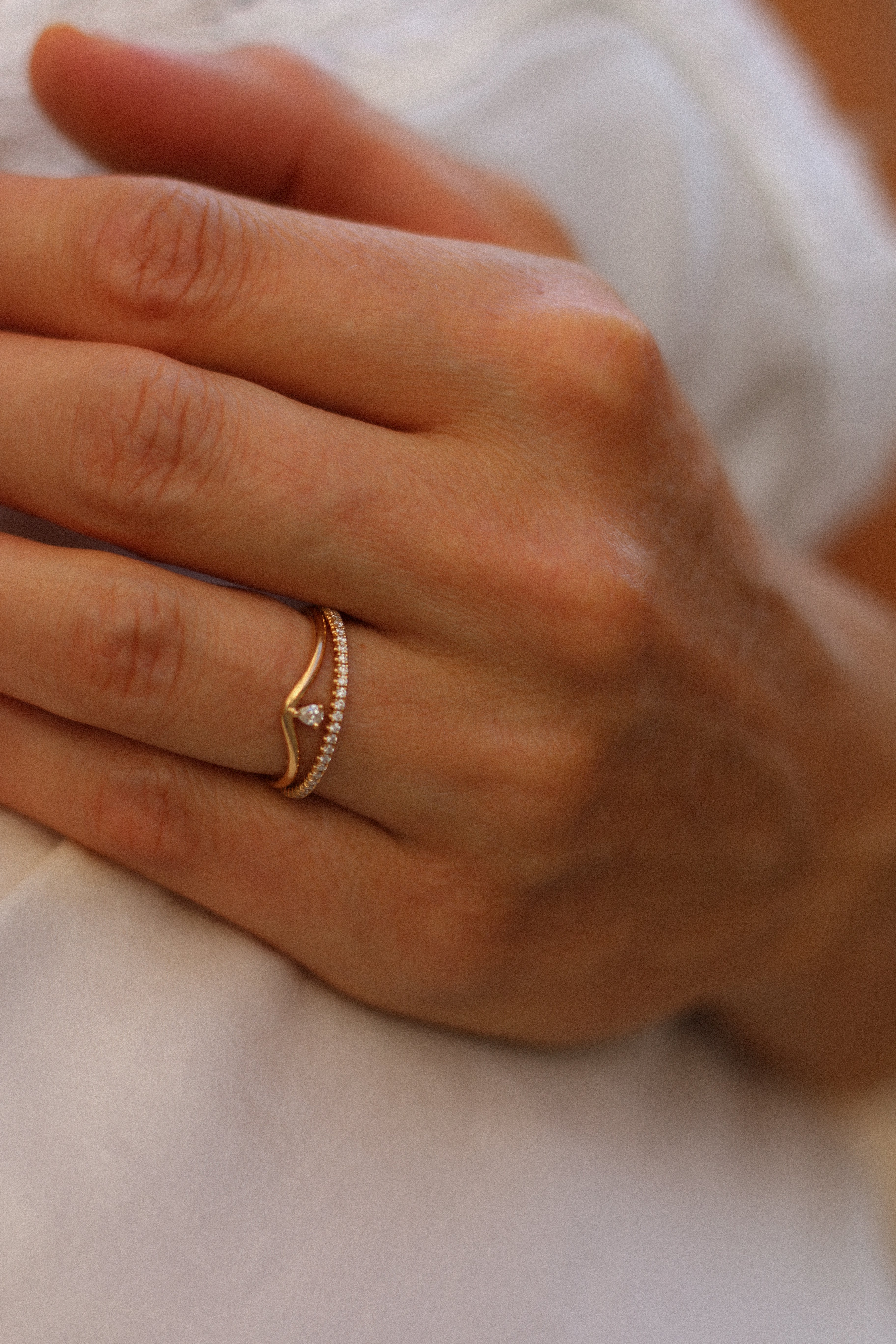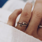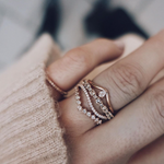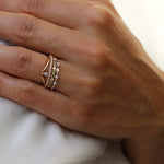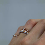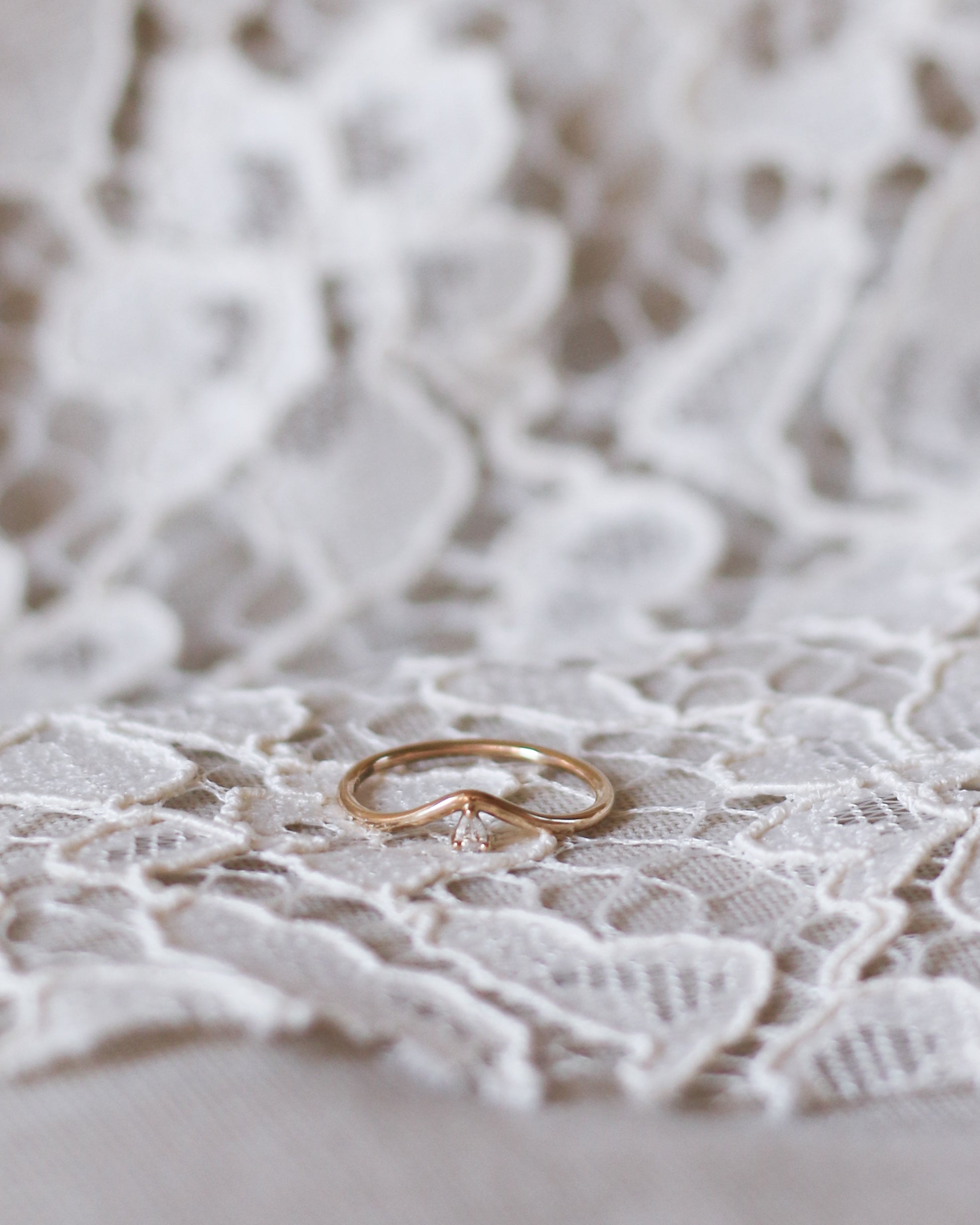 The ring band is curved and made to sit as a beautiful finish to your ring stack. So beautiful to wear on top or at the bottom of your stack of many rings!