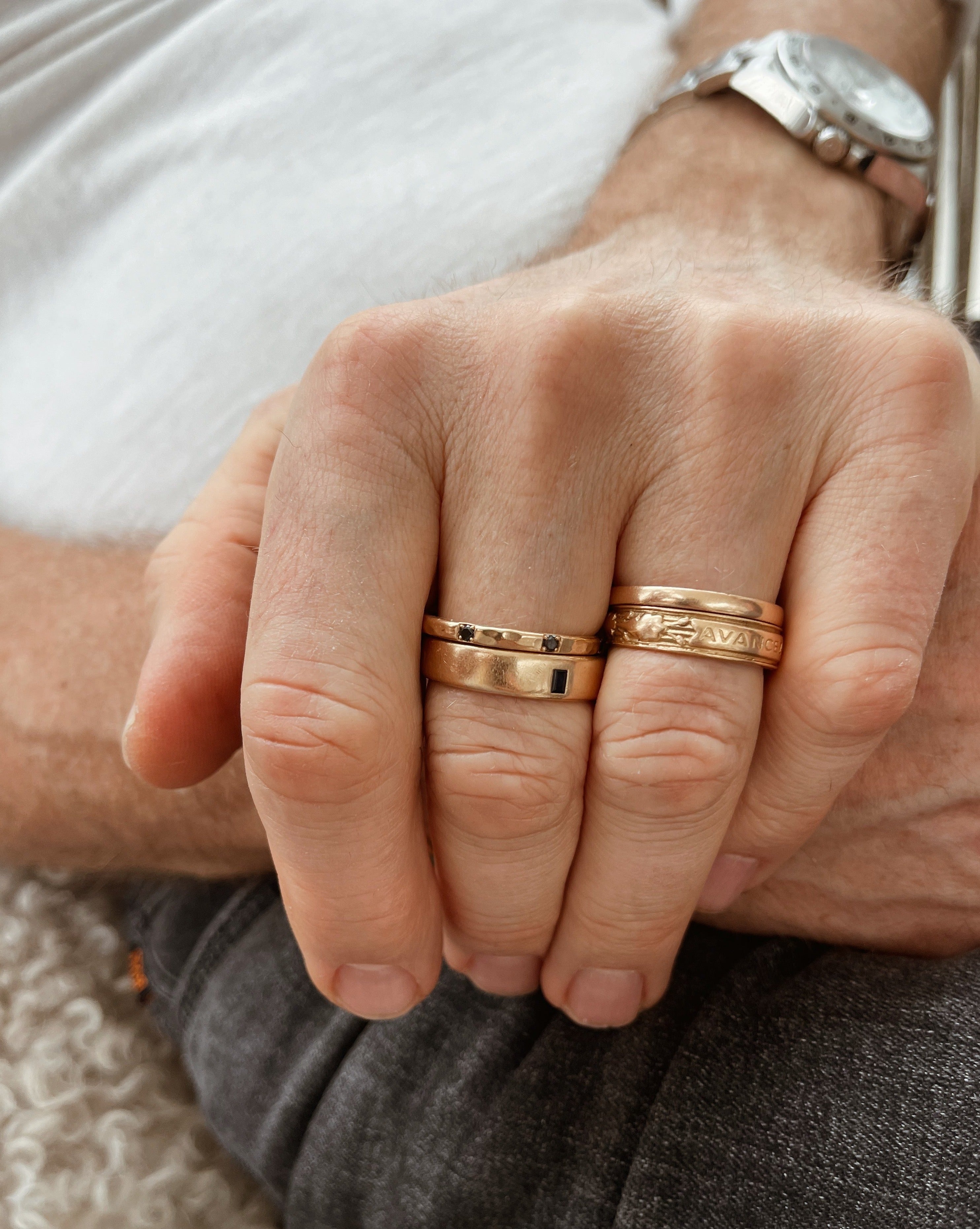 To stack with our Ben Ring, choose 1.8 mm high. To stack with Logan Ring, choose 2 mm high. We can also make a custom height so you can stack it with a ring you already have at home.