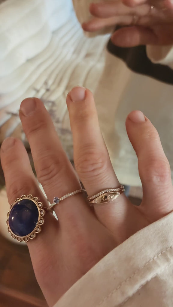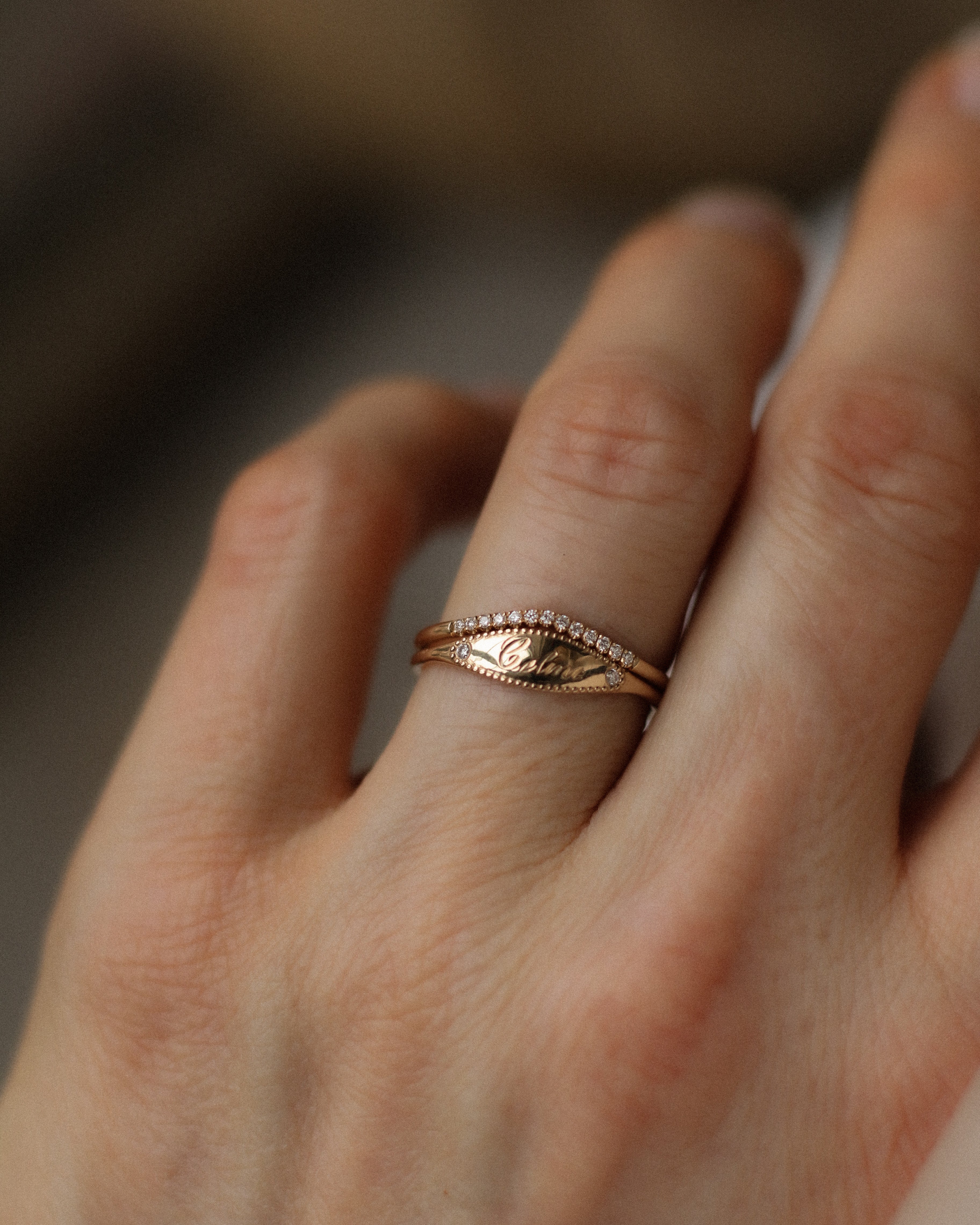 This ring is designed to stack beautifully with all our curved bands! So you can build on your ring stack later if you wish.
