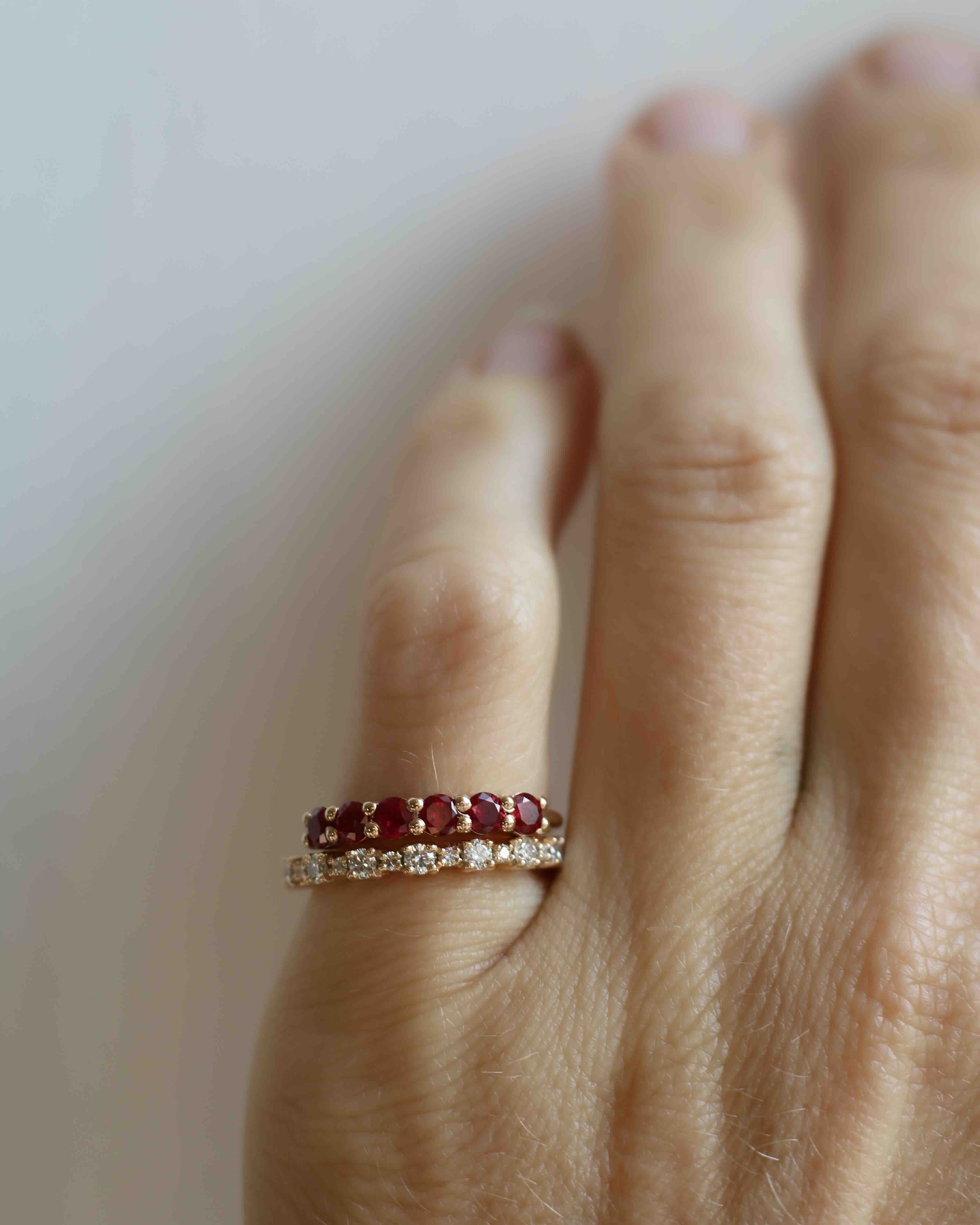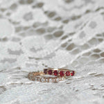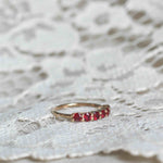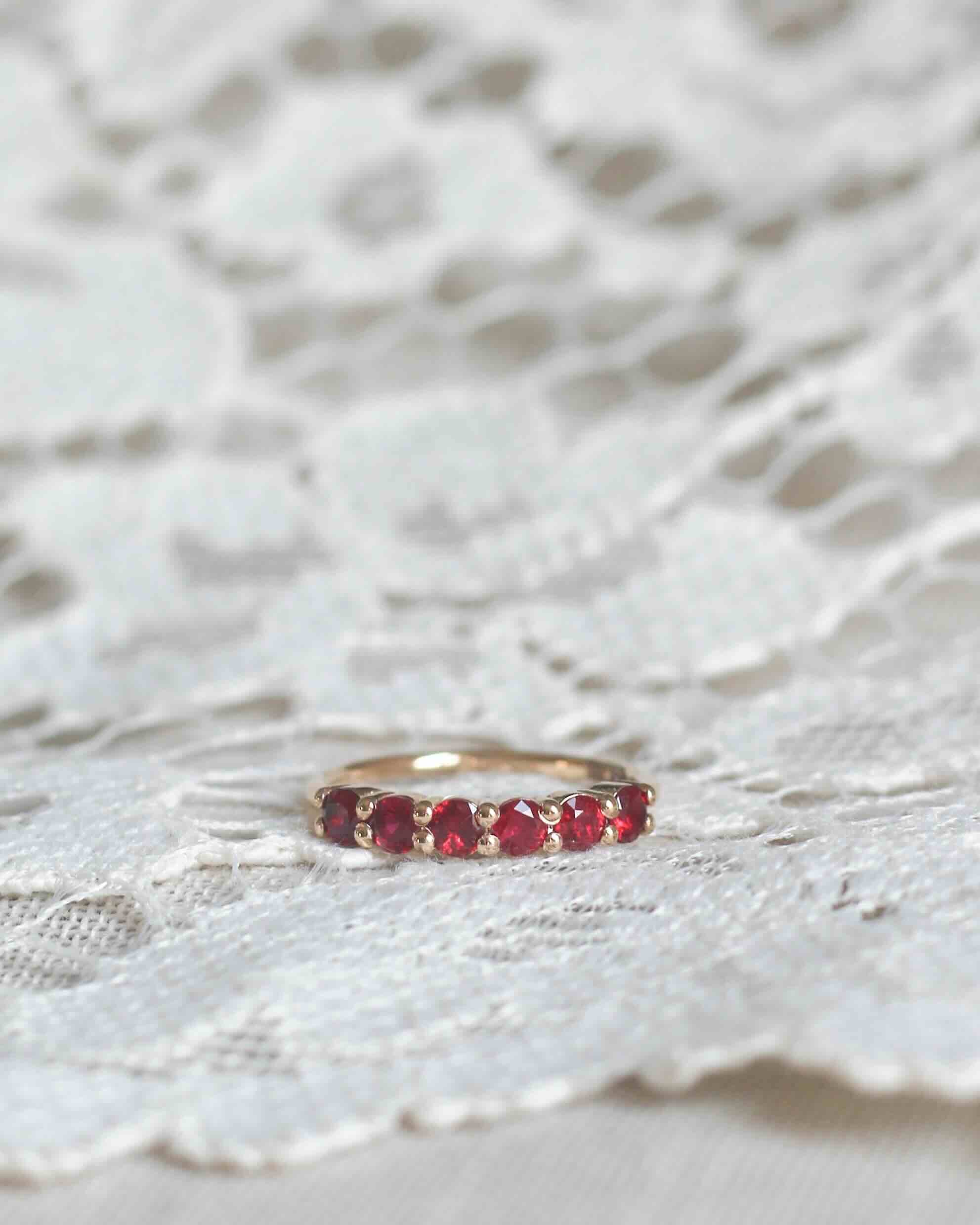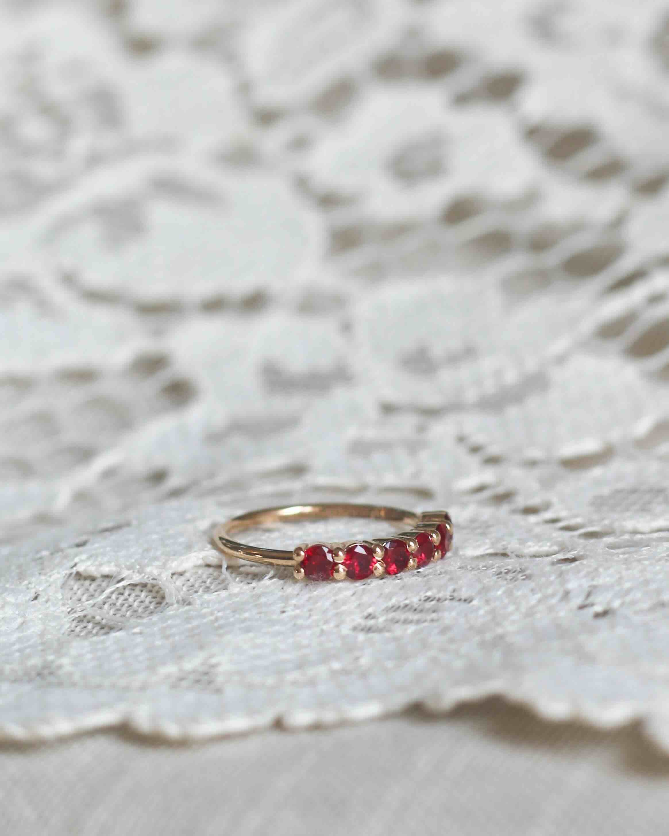 The beautiful rubies give the ring a subtle vintage feel.