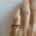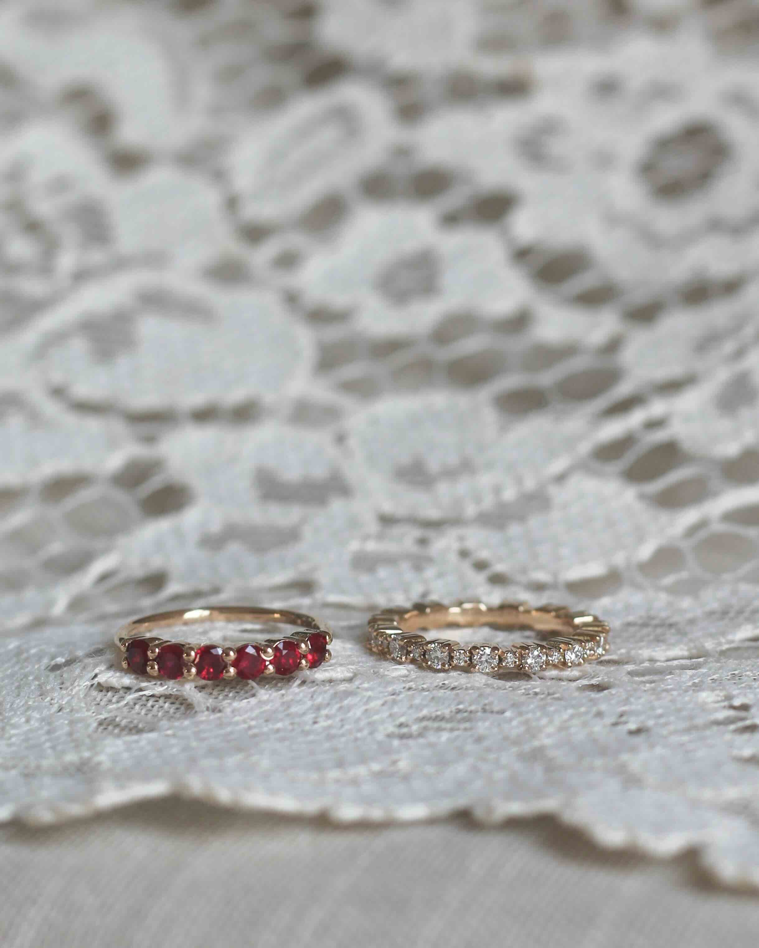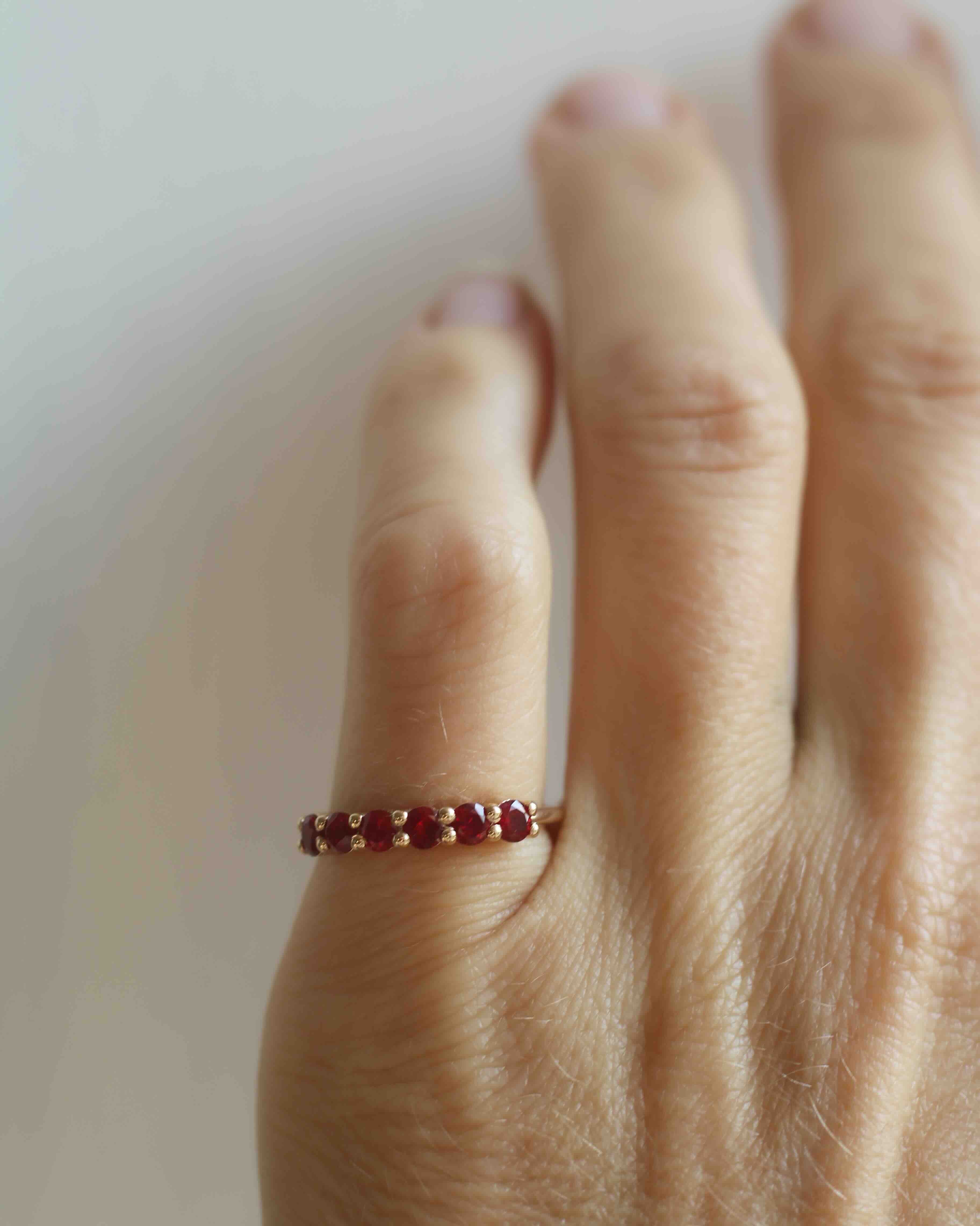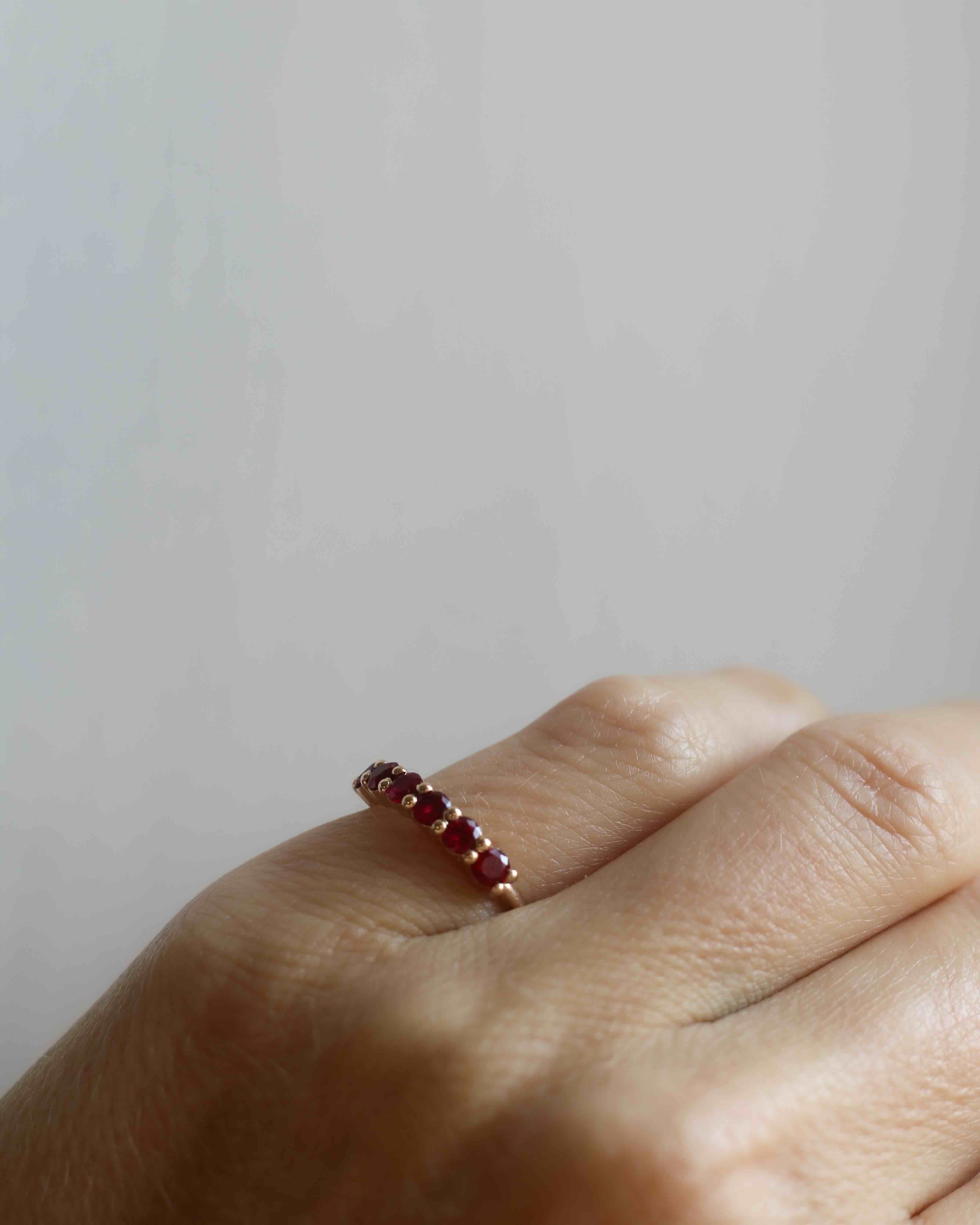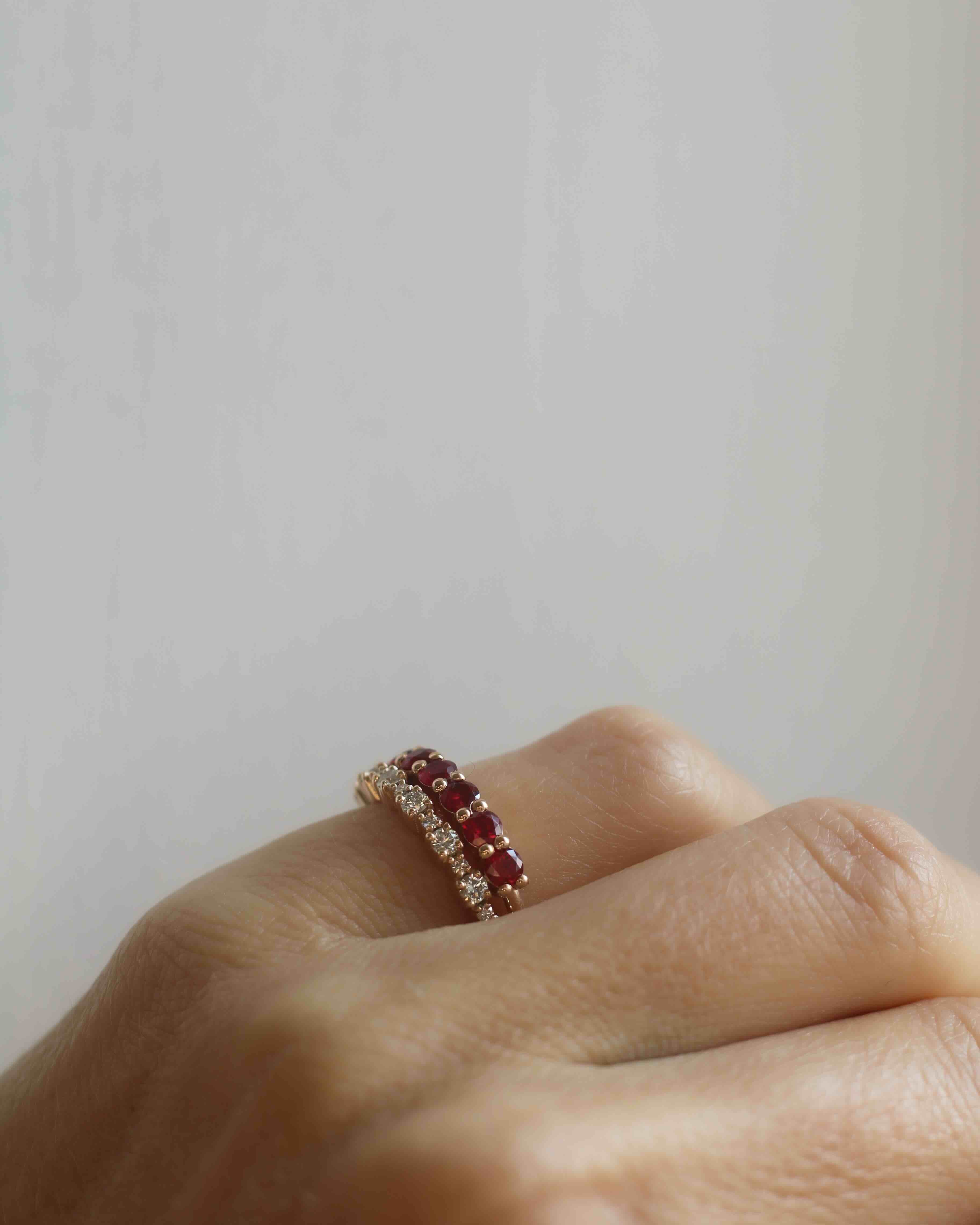 The beautiful rubies give the ring a subtle vintage feel.