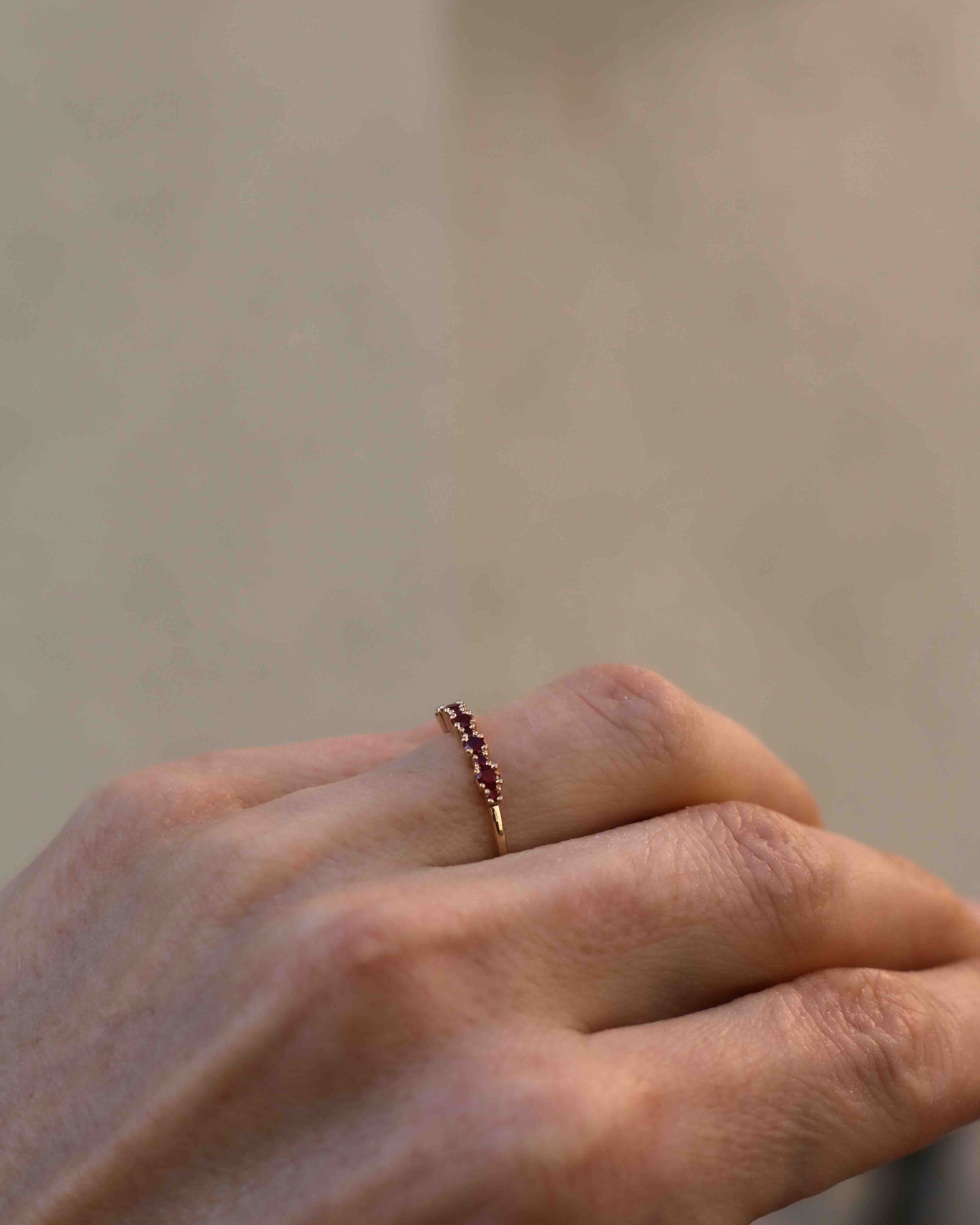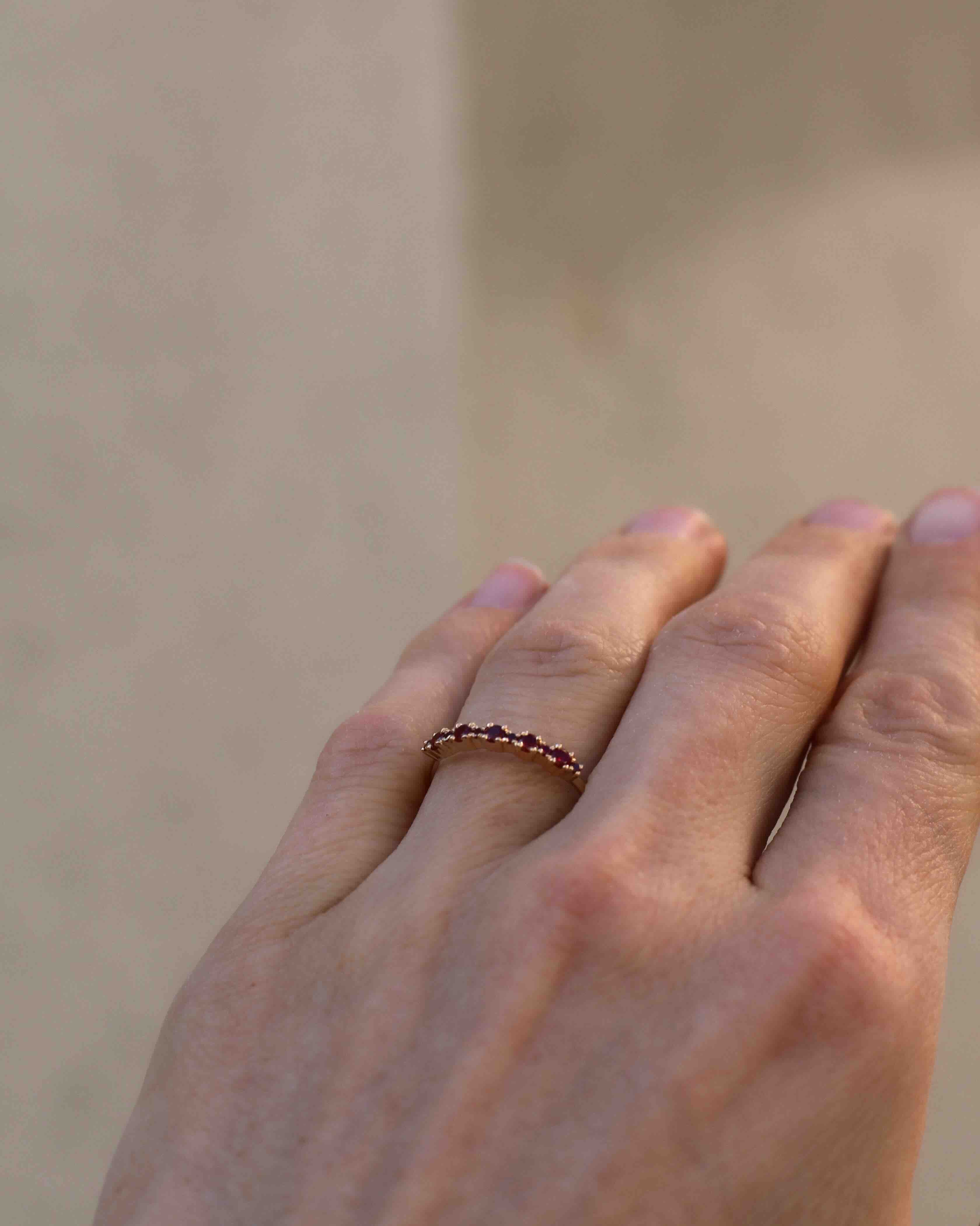 The pictures show the ring in size 17.5/55 with eleven rubies