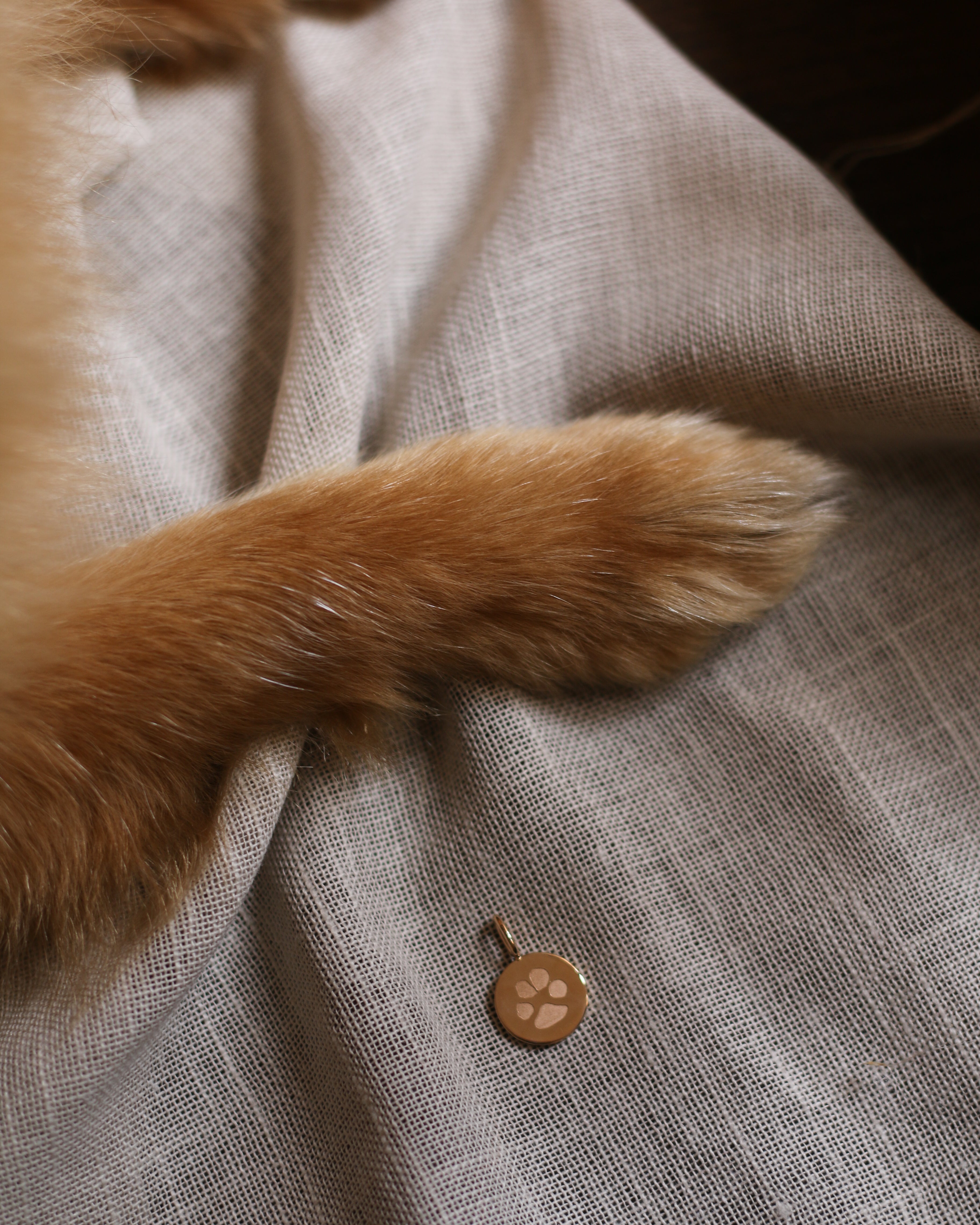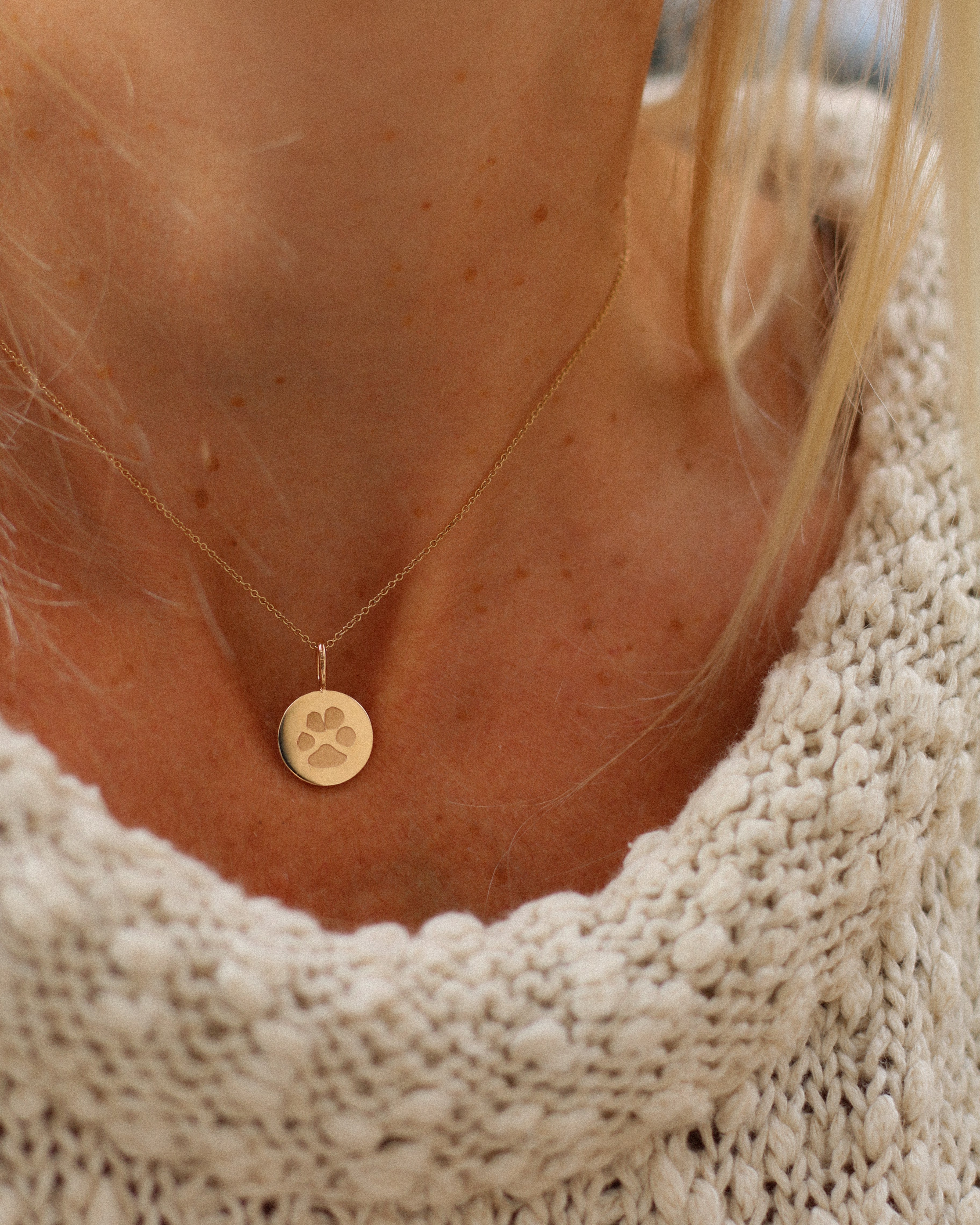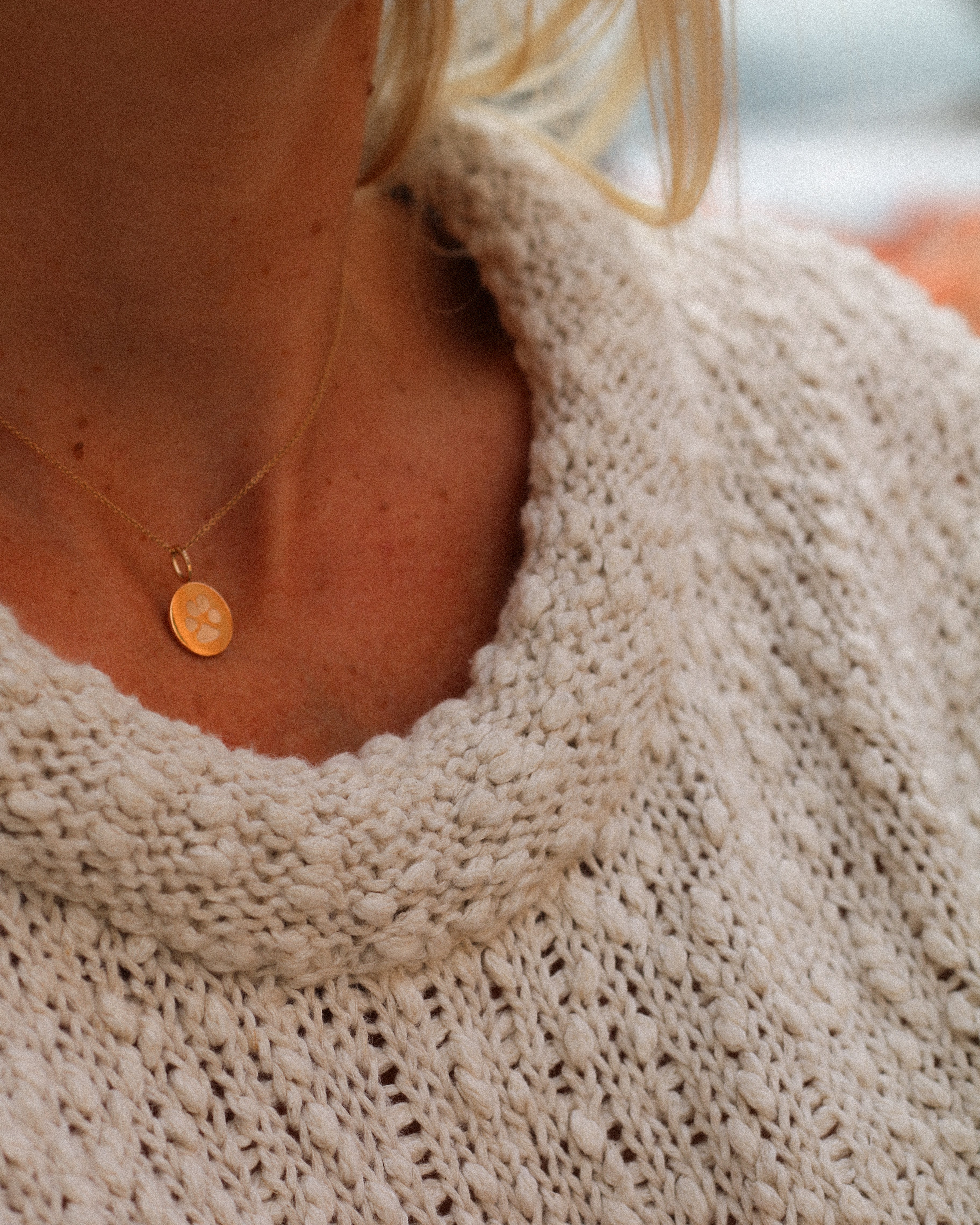 Ett hänge med din pälsklings tassavtryck på ena sidan och hans/hennes bokstav på den andra!