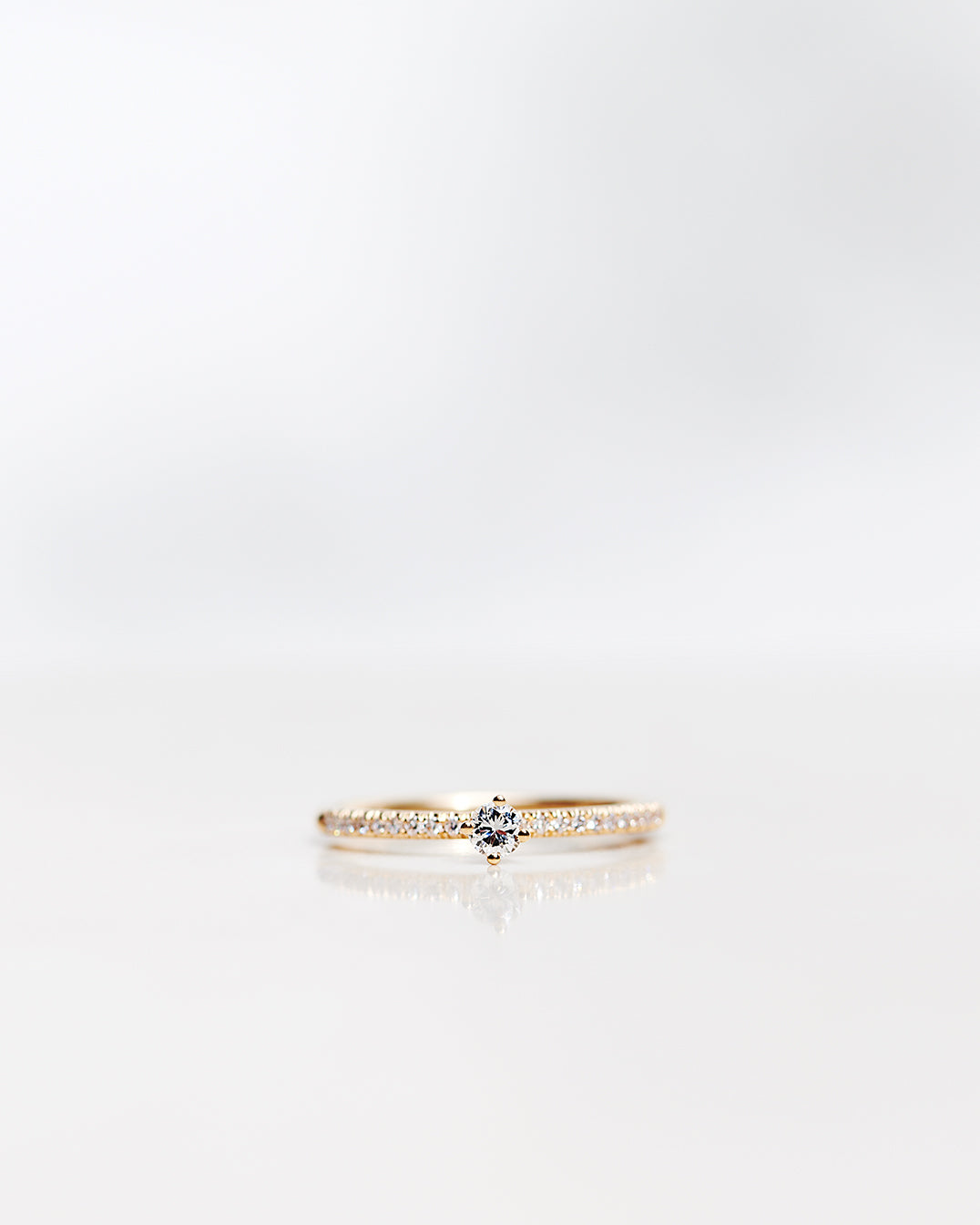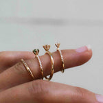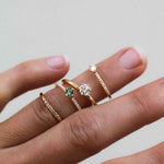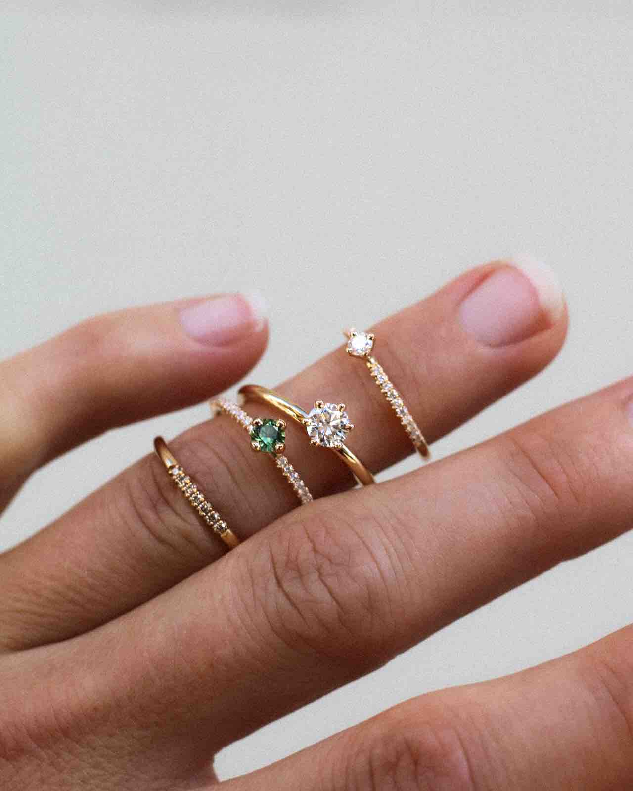 The special thing about the Not So Tiny Sparkle Ring is how it is both minimalistic and subtle - thanks to the relatively modest size of the center diamond and the pared-down design of the ring - at the same time as the diamond sparkle on the sides makes it bohemian luxurious.