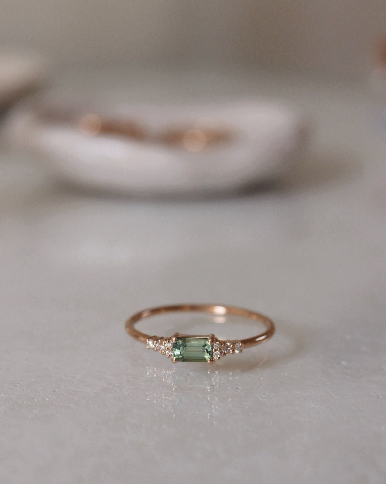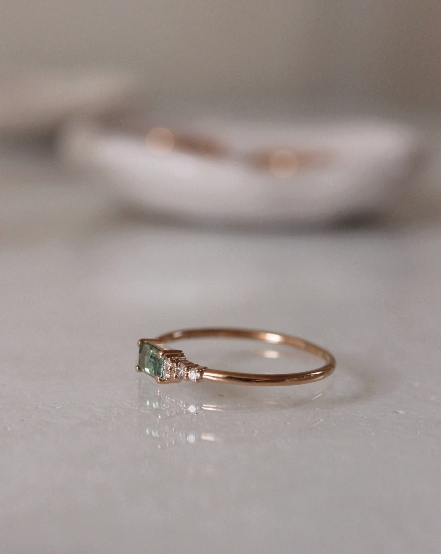 Tourmalines rank a hardness of 7-7,5 on Moh's Scale of Hardness and come in many different colors. In this ring we have used stunning dark green tourmalines.