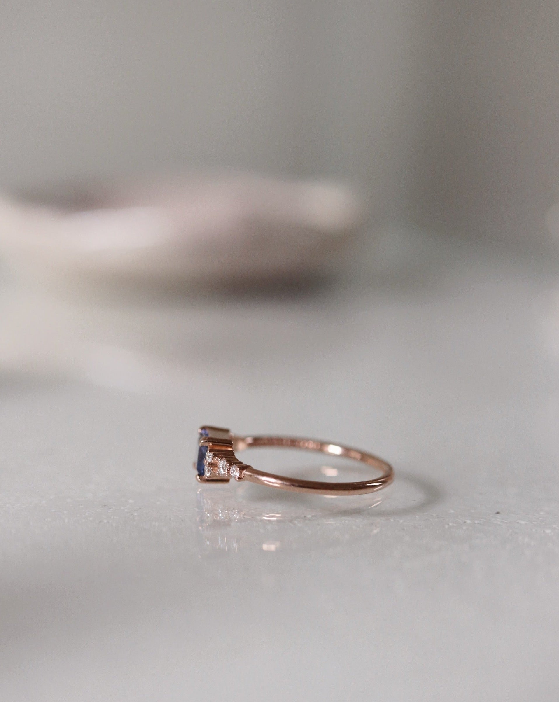This ring is beautiful worn alone but also stacks beautifully to eternity bands or curved stacking bands.