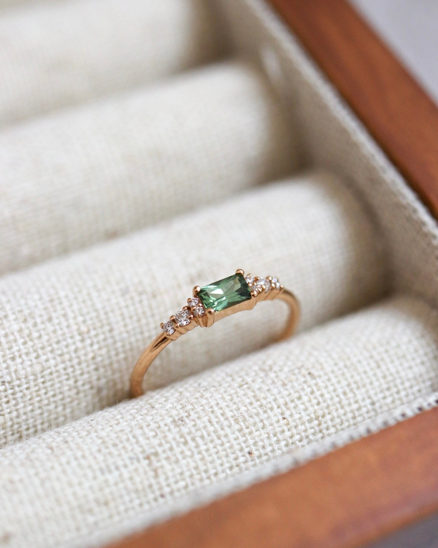 Our green sapphires come from Madagaskar and Tanzania, and our olive green sapphires from Thailand and Kenya. This beautiful 0.29 CT CT sapphire comes from the Umba River area in Tanzania. It is completely natural and hasn't gone through any colour-enhancing treatments.
