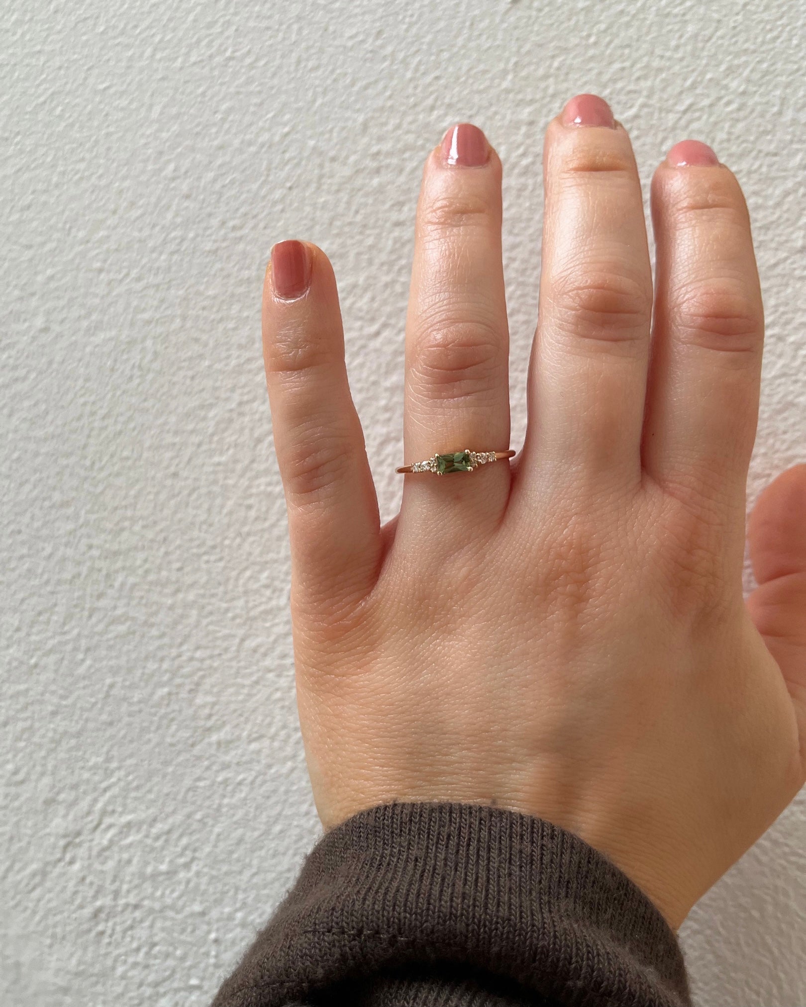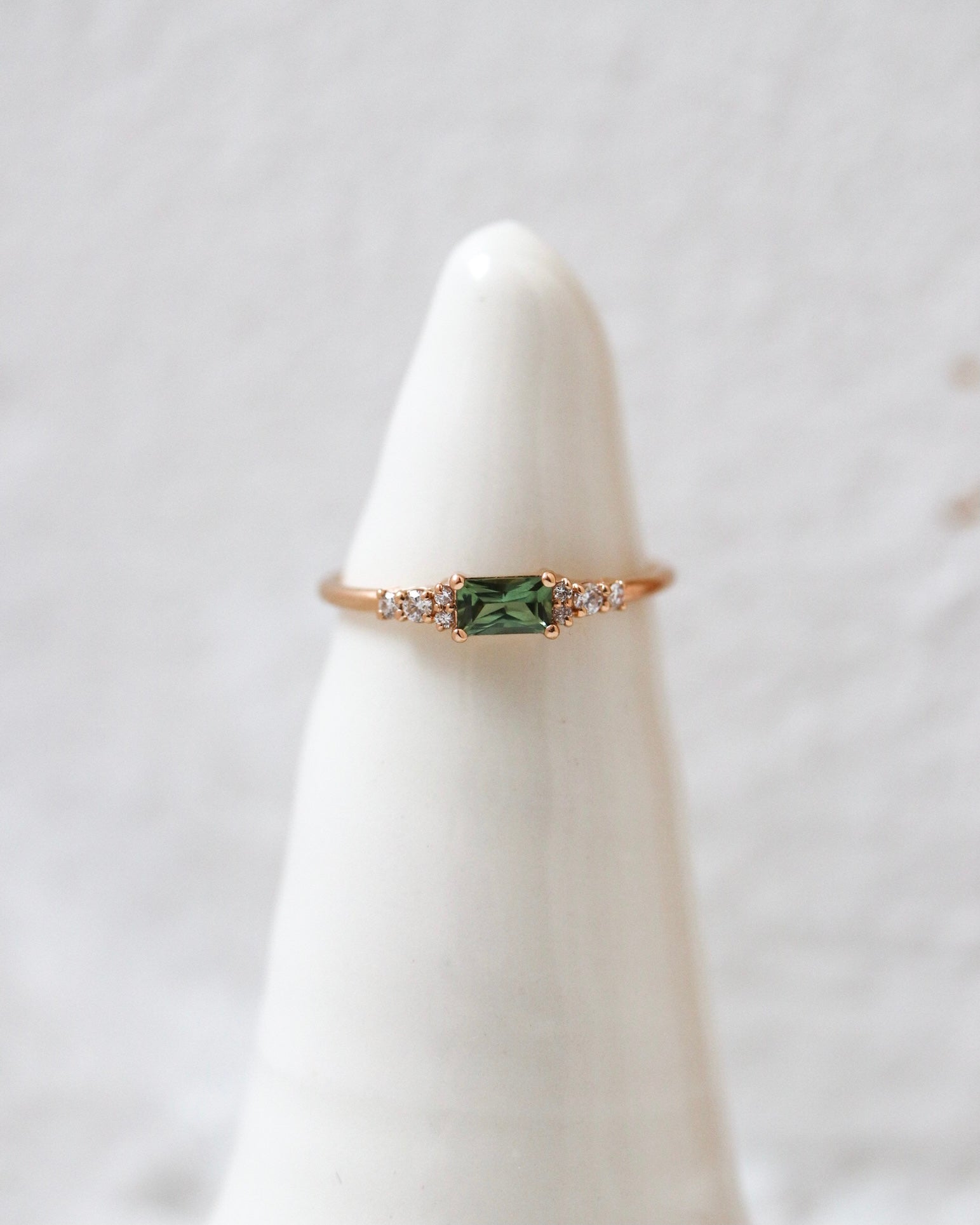 This ring is beautiful worn alone but also stacks beautifully to eternity bands or curved stacking bands.