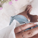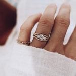 Pinky Jade Ring started as a 2+1 patterned Jade Petite Ring that Cecilia made to wear on her ring finger. Today, many wear it on the pinky finger, but some even as a wedding band! You choose how you wear yours!