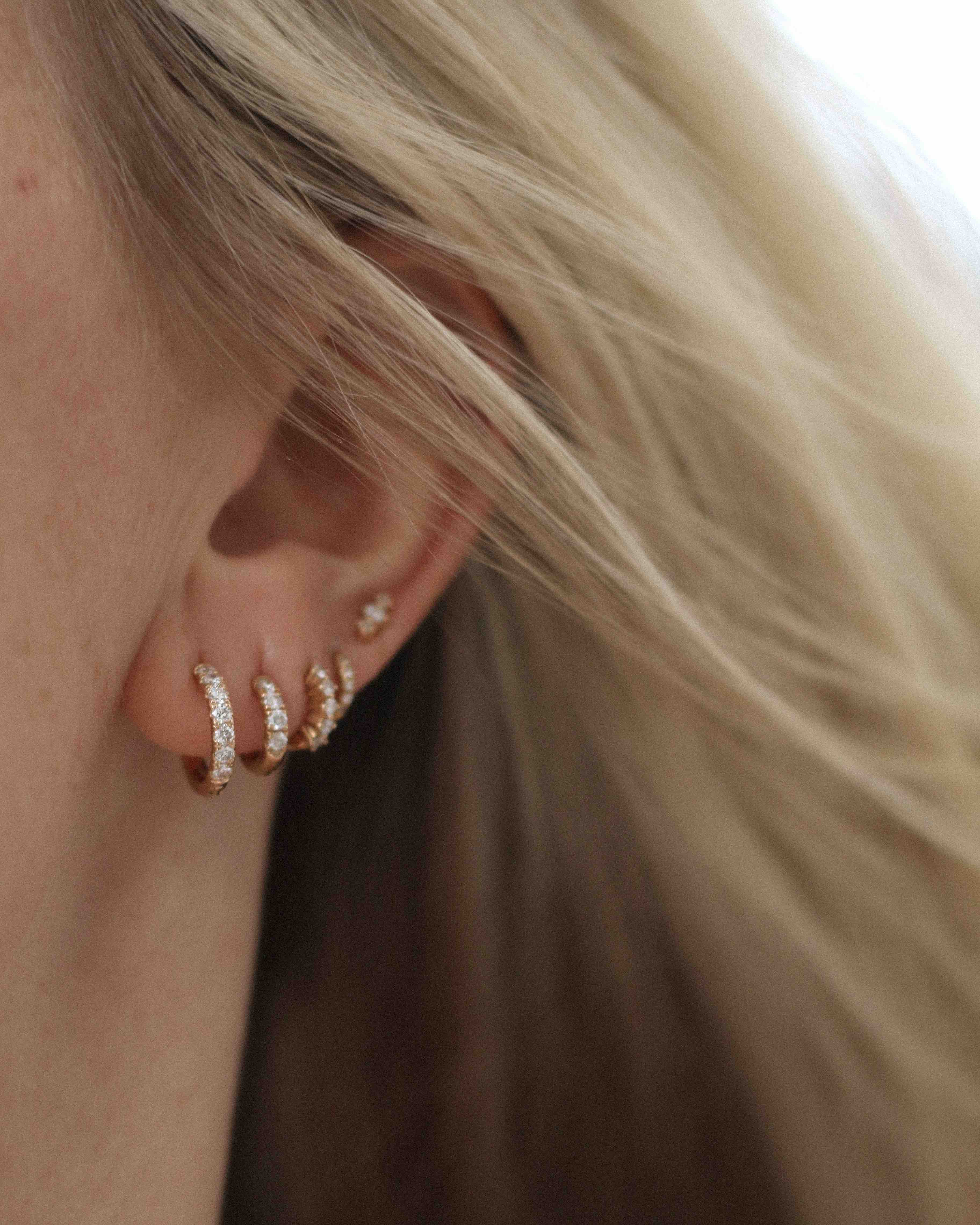 The diamond huggie is a key piece of my capsule jewelry wardrobe. I never take mine off! I wear a 4 mm in the fourth hole of my left ear. /Cecilia