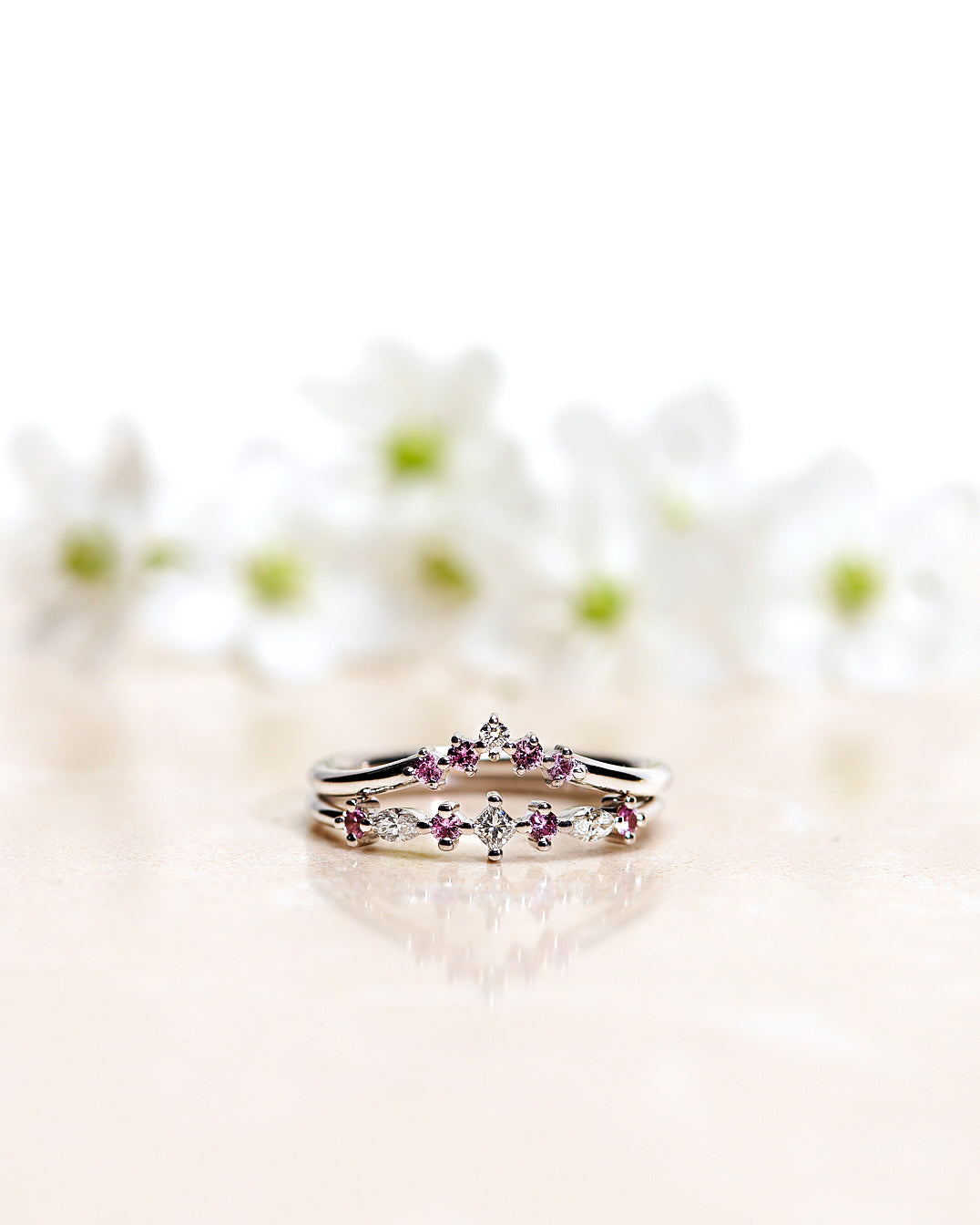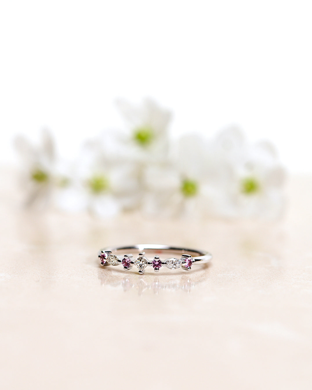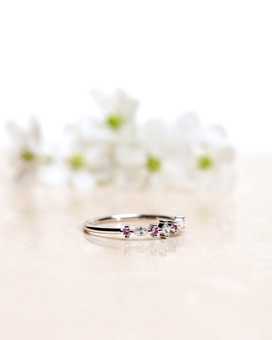 - Hilda Ring in White Gold with Light Pink Sapphires and Diamonds