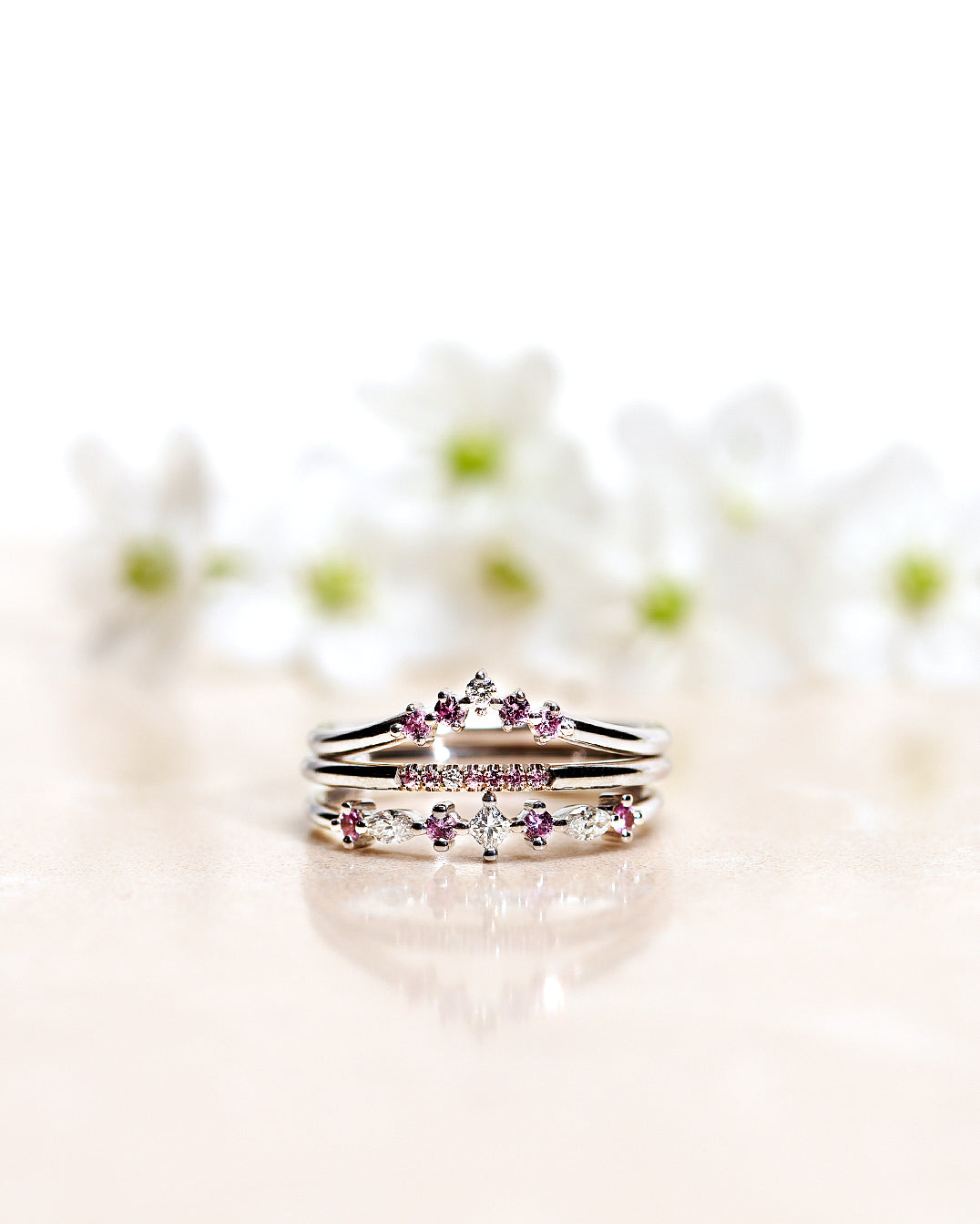For this week's auction we've used white gold, diamonds and light pink sapphires to create four beautiful rings!