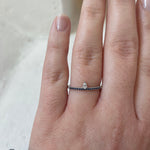 Finished: Lily Tiny Diamond Drop Ring in White Gold with Dark Blue Sapphire Row