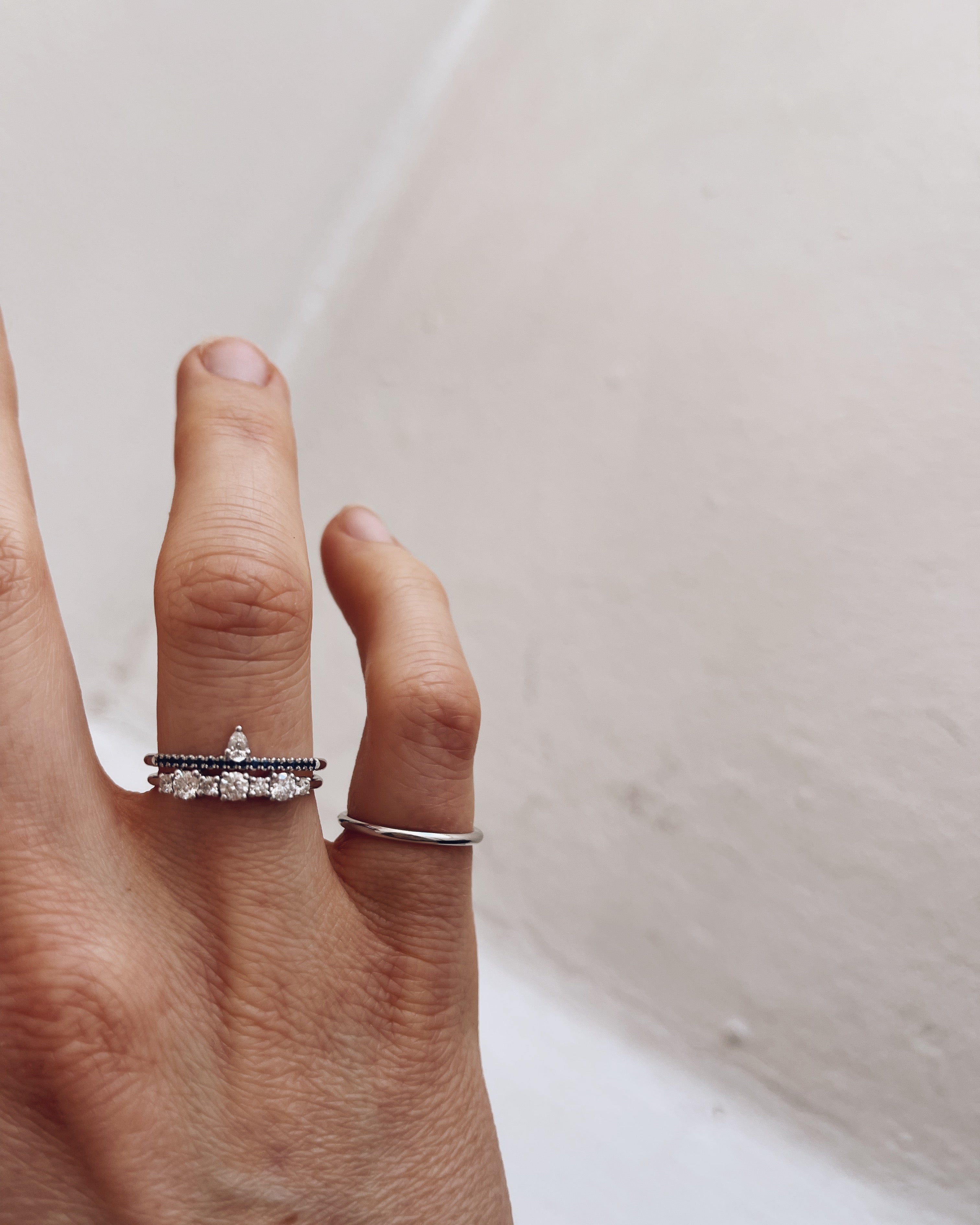 This is a versatile ring to wear on top of a stack or alone on any finger. It can also be worn as a top ring.
