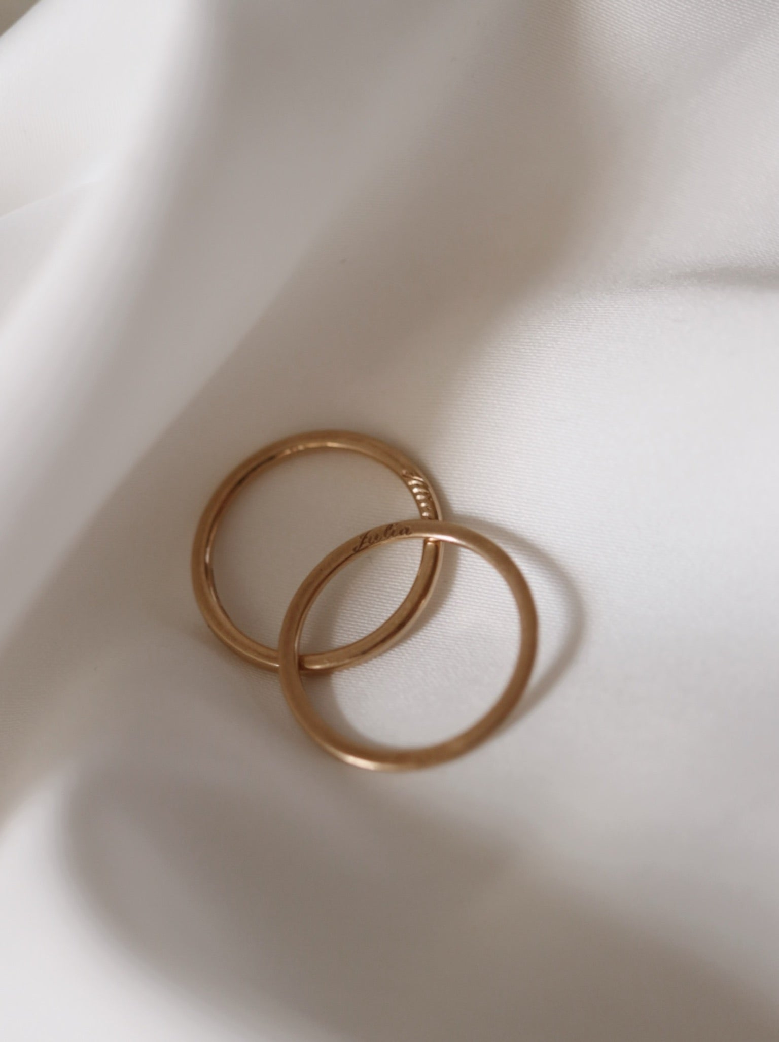 Our gold bands are engraved by hand in a beautiful vintage style.