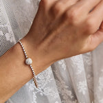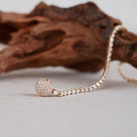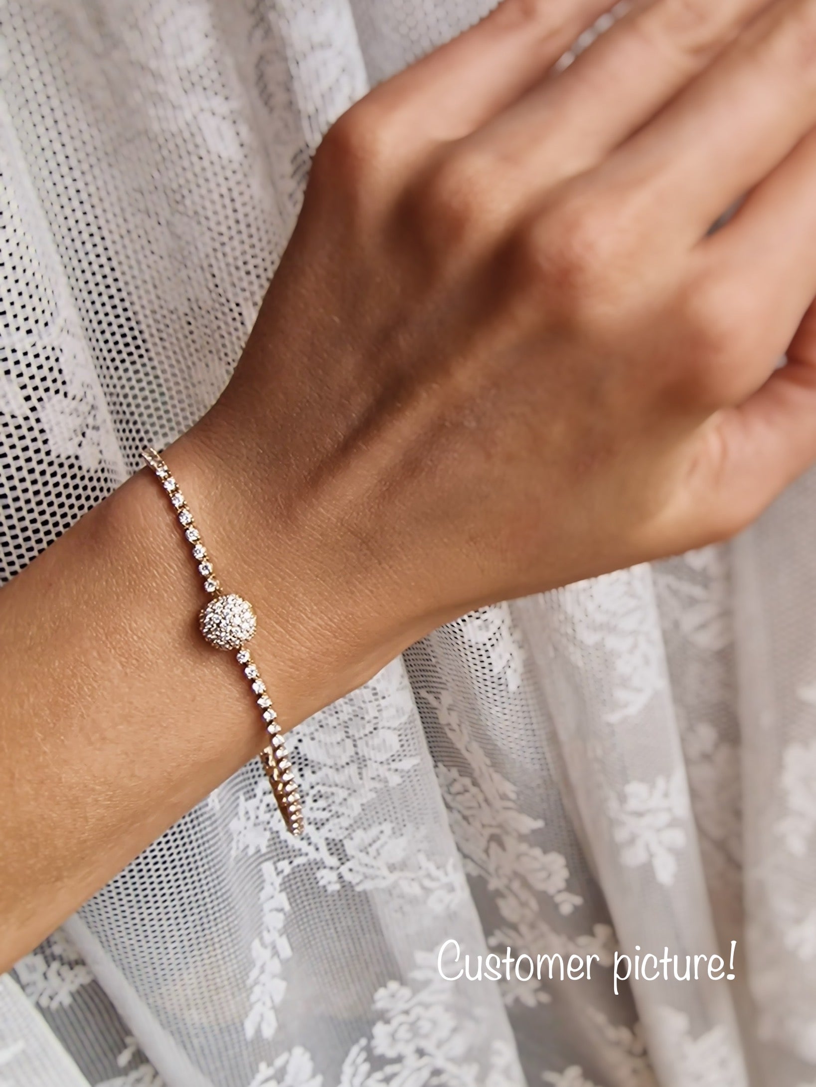 The tennis bracelet is a beautiful staple piece and a must-have in my own jewelry collection. The clasp has the most lovely design, resembling a small locket. It not only keeps the bracelet safely locked around your wrist, but it also creates a balance so that the flood of diamond is always facing up! Love, Cecilia
