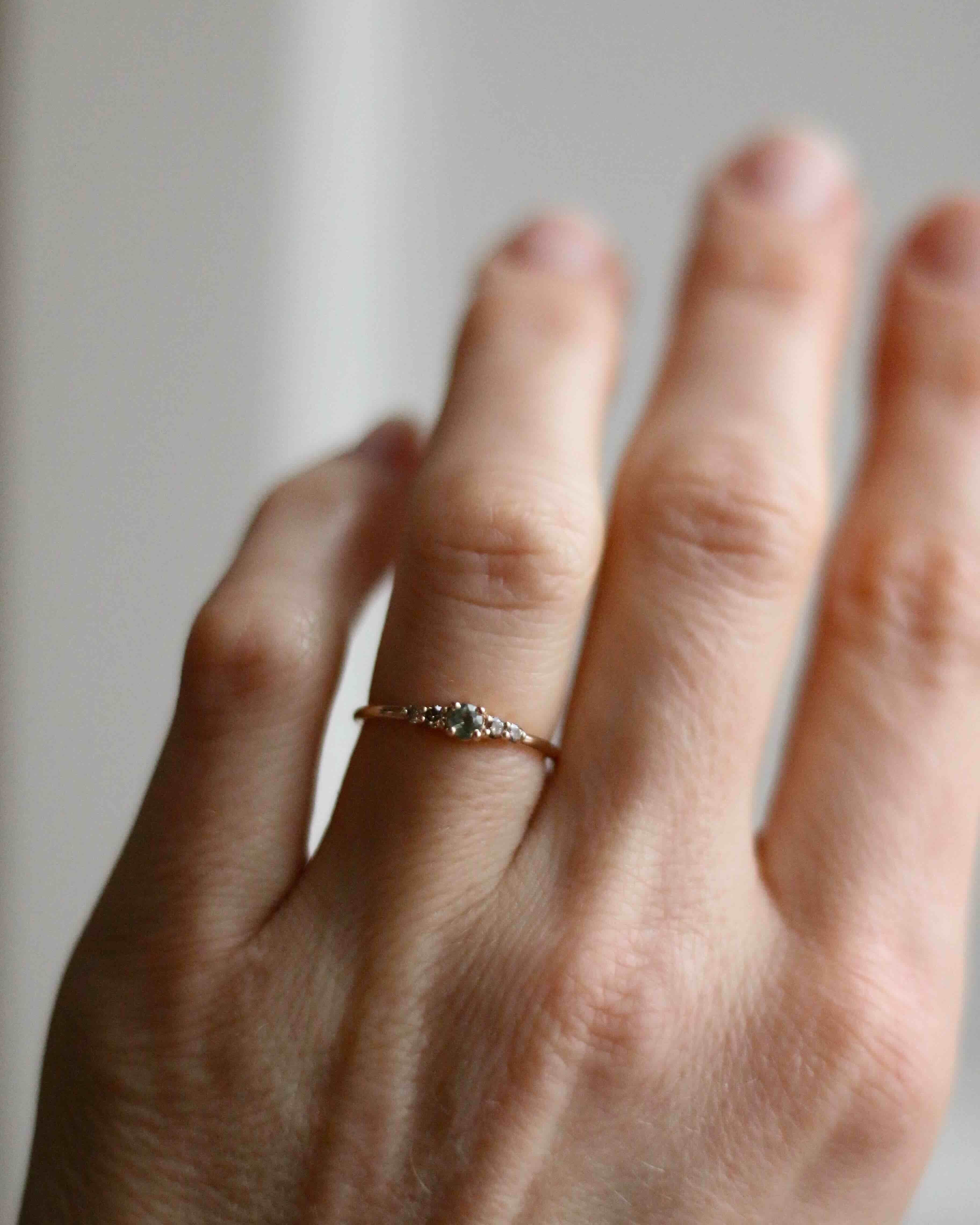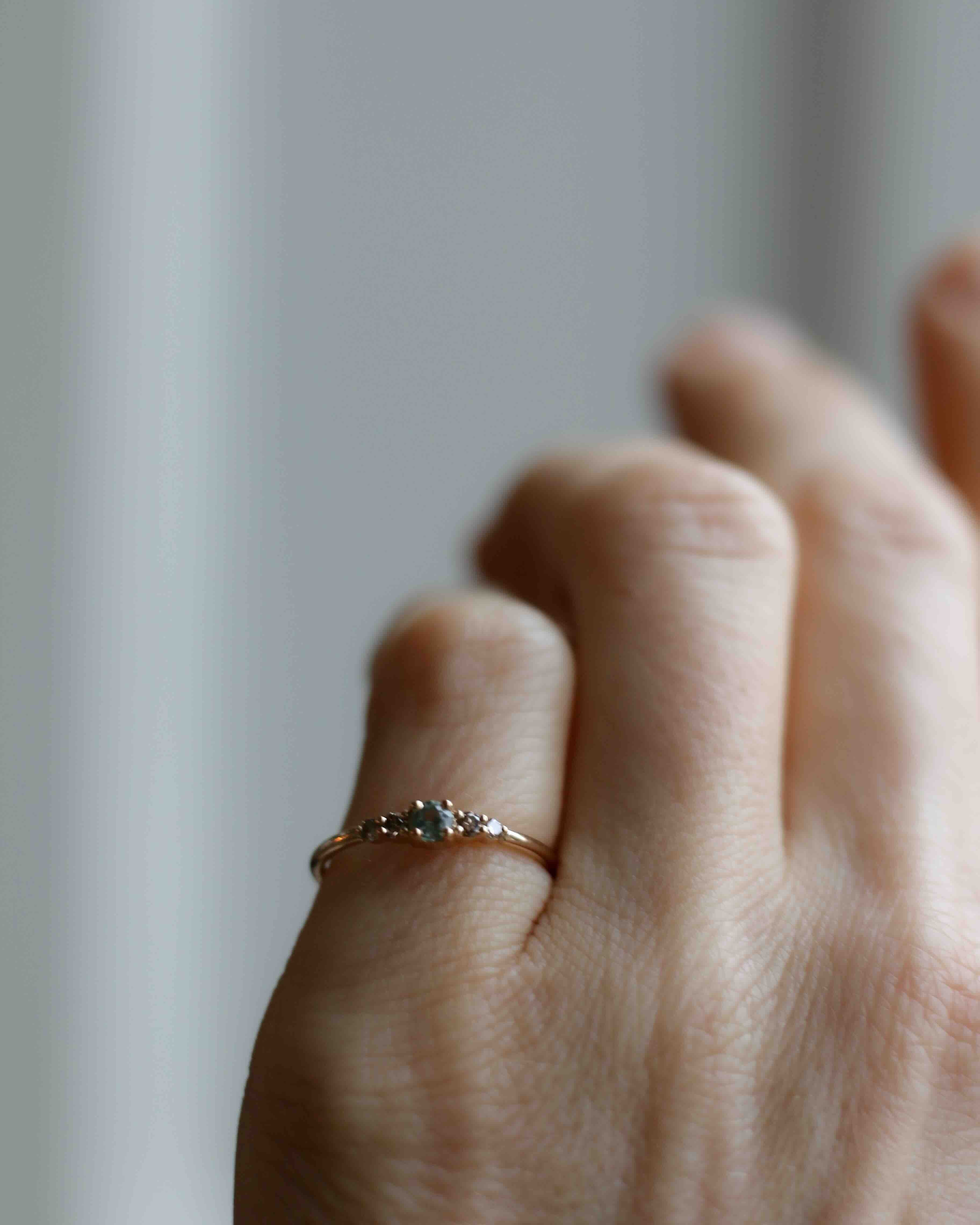 Many who try the Mini Elise Ring in our showroom experience that it sits very nicely on the finger and that the balance between the five stones is so harmonious.