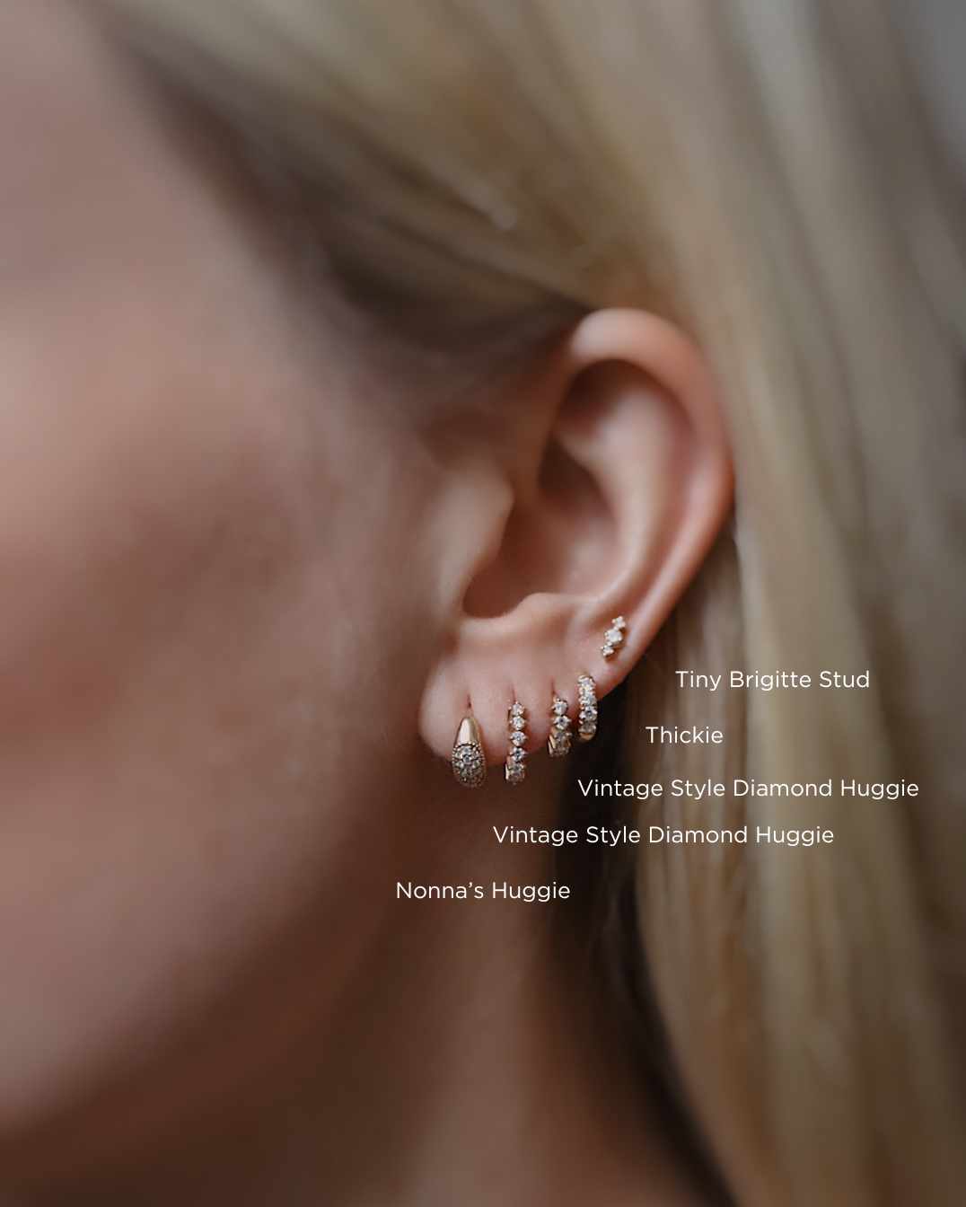 Huggies are small hoop earrings that are designed to "hug" your ear. They are wonderfully comfortable and often it becomes the jewelry you never take off!