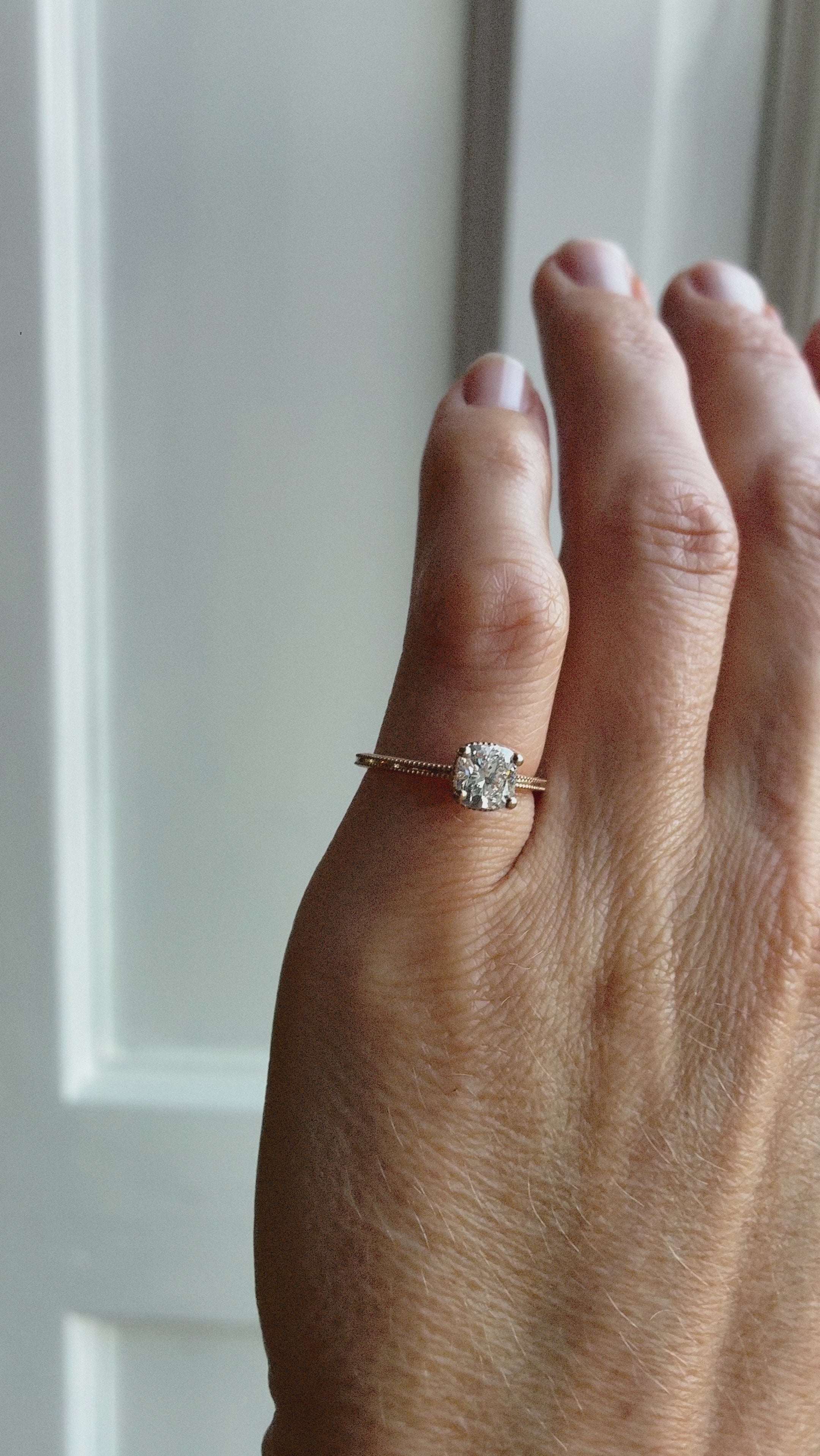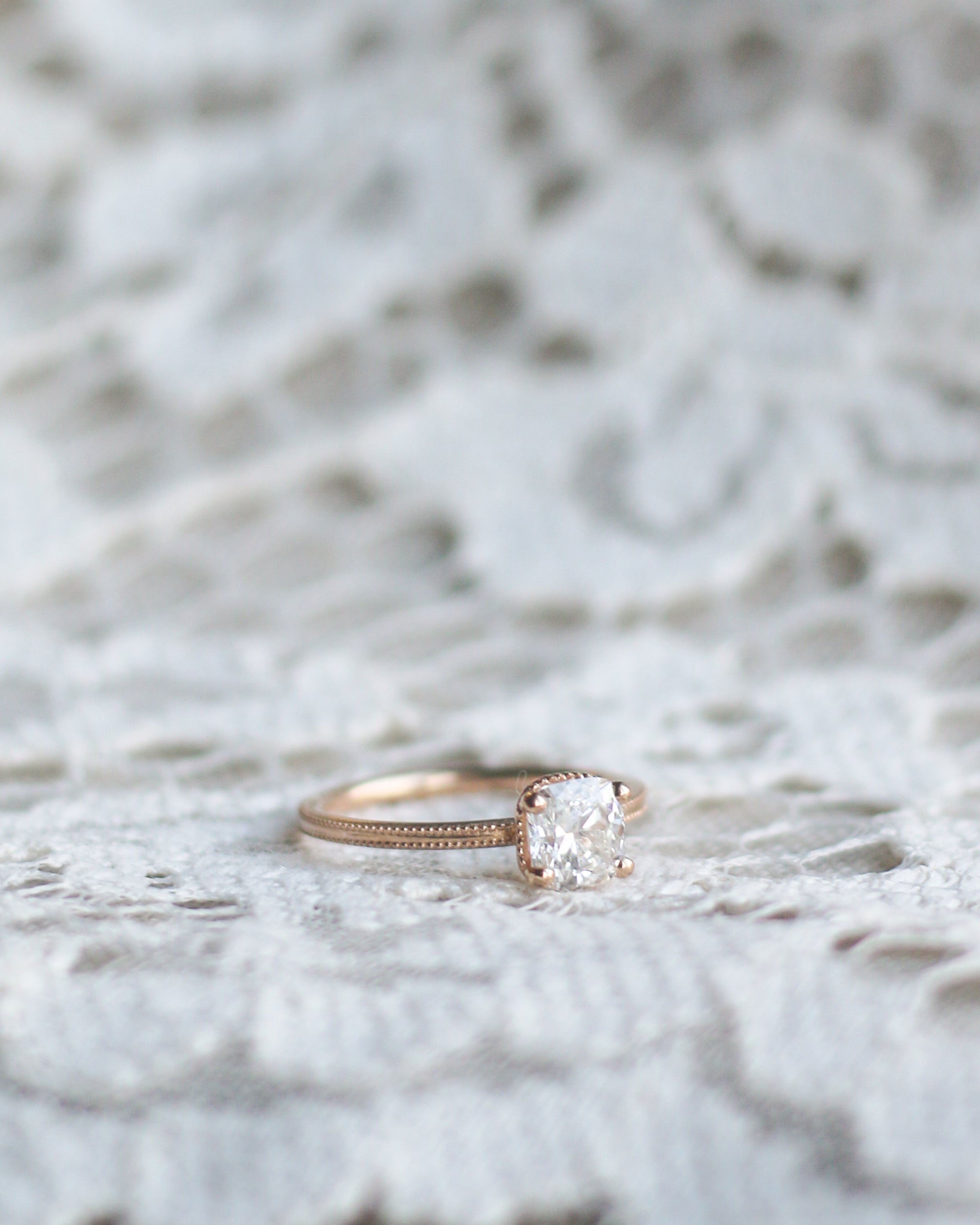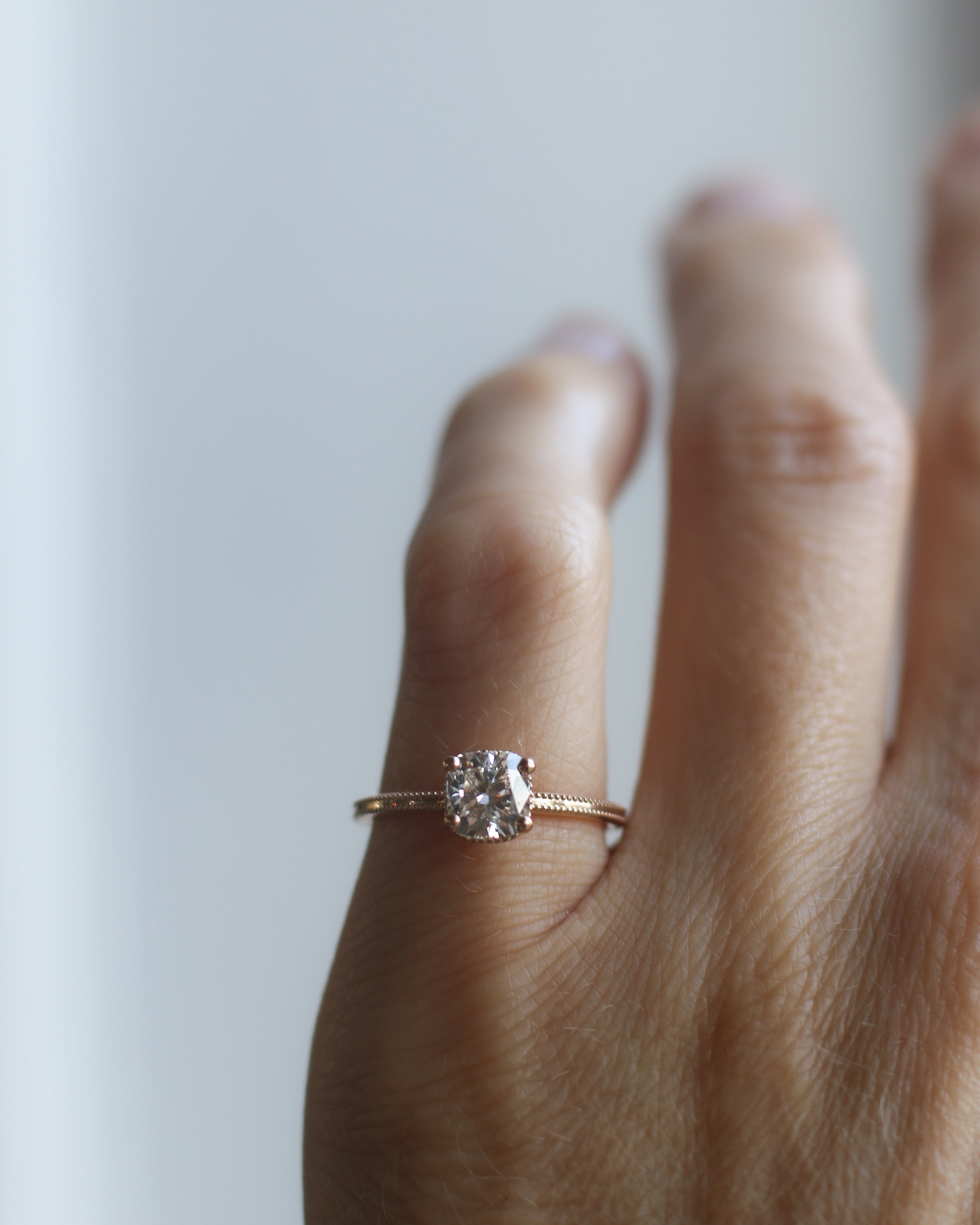 A beautiful old style solitaire ring with a cushion-cut diamond. (If you'd rather have an antique diamond in your ring, you can find them here )