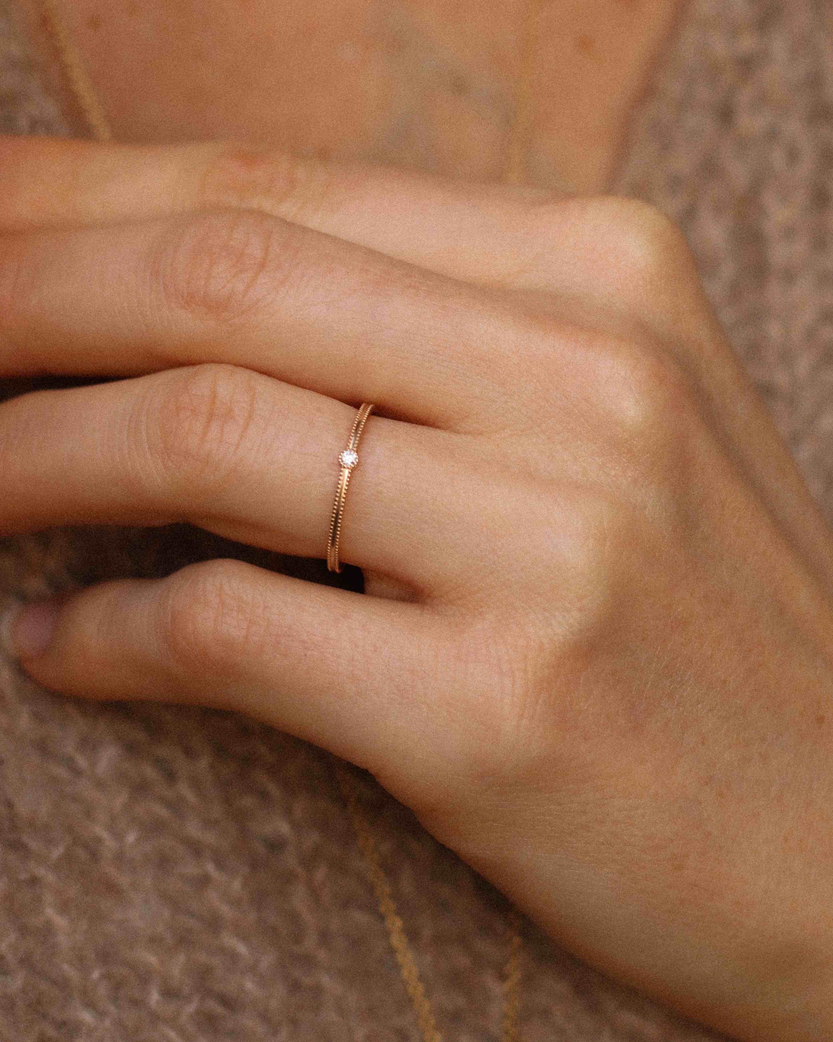Many people invest in a little diamond ring as their very first piece of jewelry. It is a ring that will stay with you throughout your life. Personally, I never get tired of my Tiny Diamond Ring, one of the first rings we made. Still today, I wear my Tiny Diamond Ring on my middle finger almost every day - even though I have added many more jewelry pieces to my collection over the years. I hope your Tiny becomes a part of you too. XX Cecilia