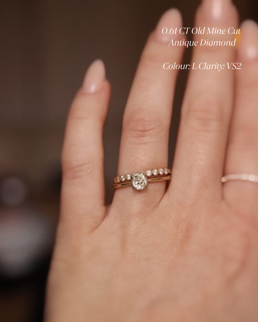 💎 Antique diamonds often have a warmer colour than “perfectly white” modern machine-cut diamonds