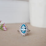 She had a beautiful, almost turquoise blue Aquamarine set in an old gold ring that she truly disliked. She handed it in to us* with the idea of maybe letting us creating a bracelet from it. But eventually, Fanny helped her create a beautiful replica of one of Cecilia's own rings (this one)!