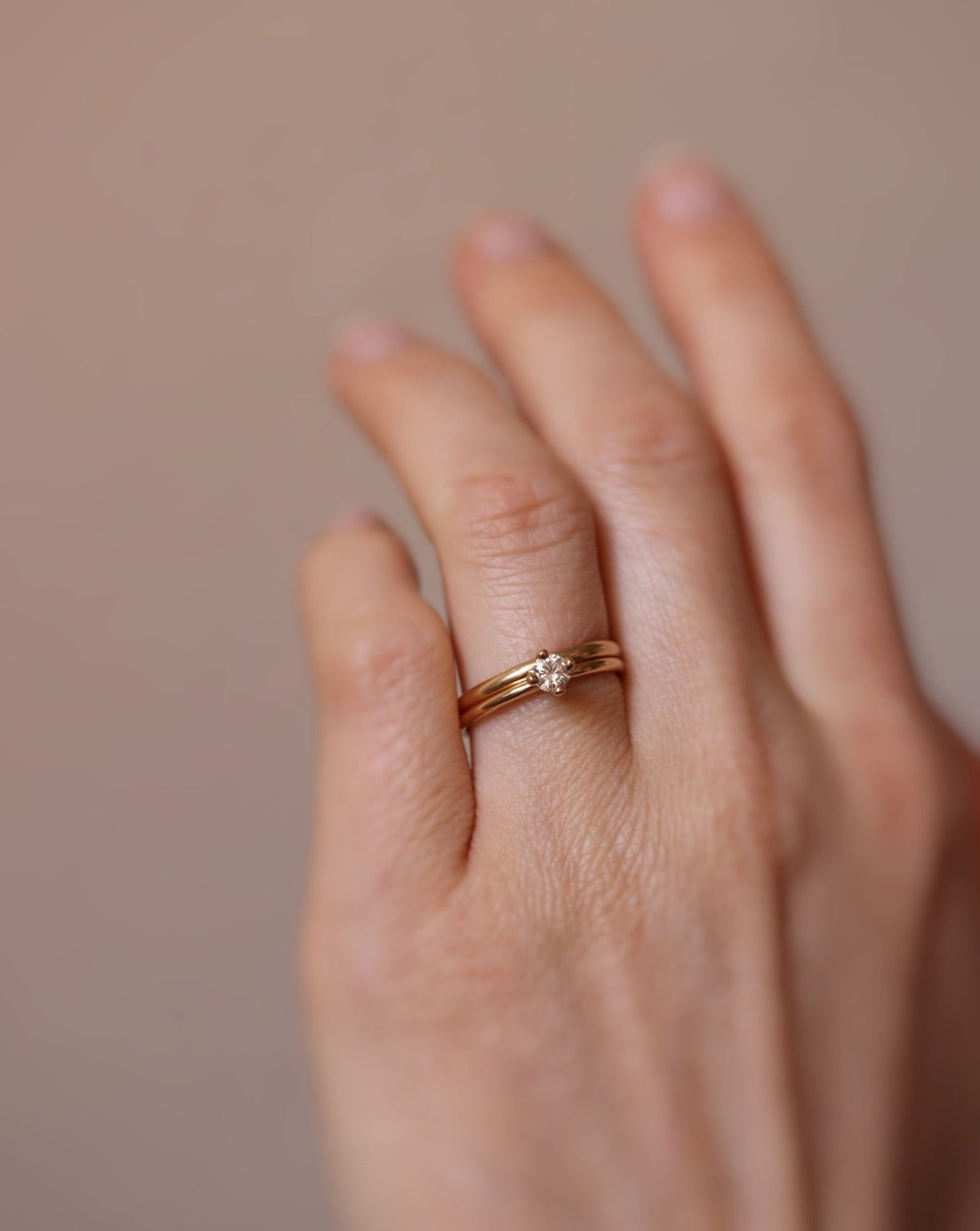 Den klassiska, lätt rundade profilen är samma som vi använt i Casper Clean Ring. Detta är en ringmodell som var vanlig som förlovningsring bland både kvinnor och män i Sverige under första halvan av 1900-talet.