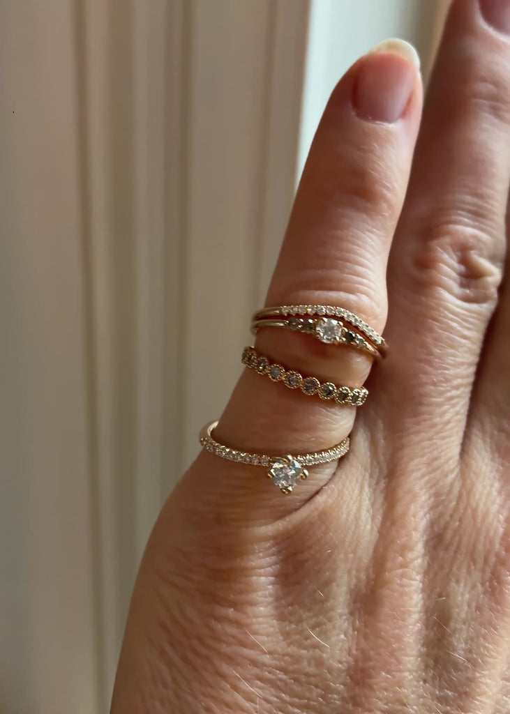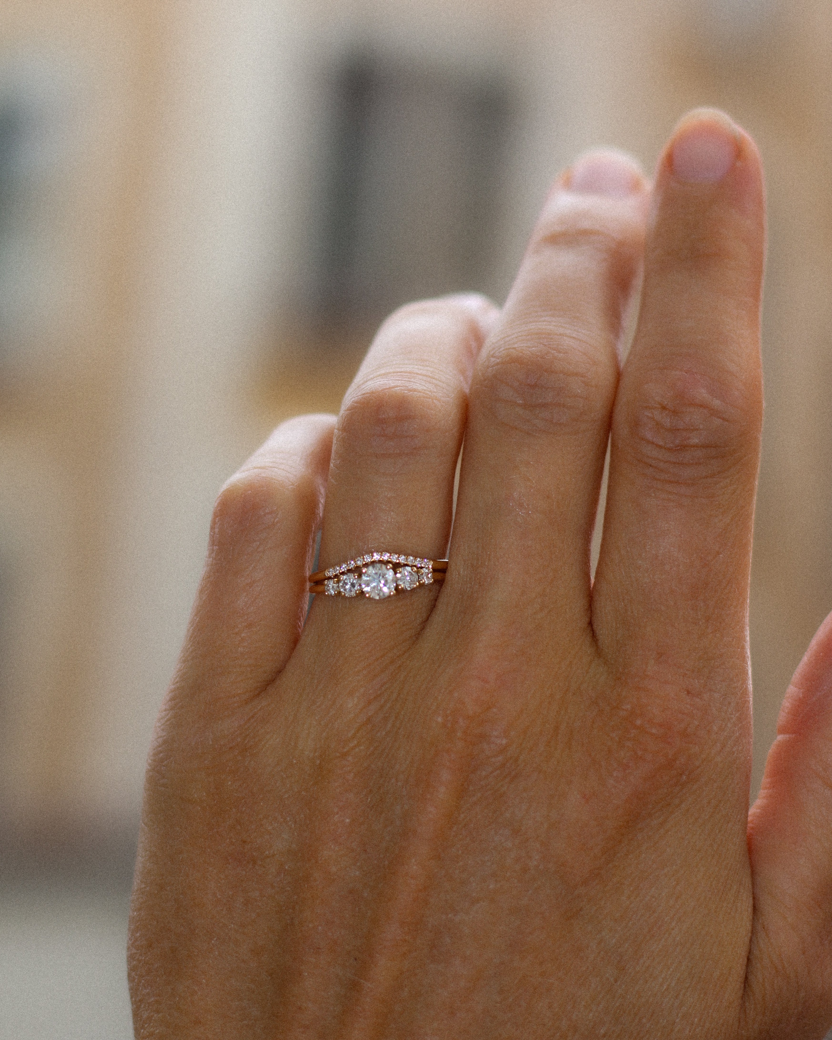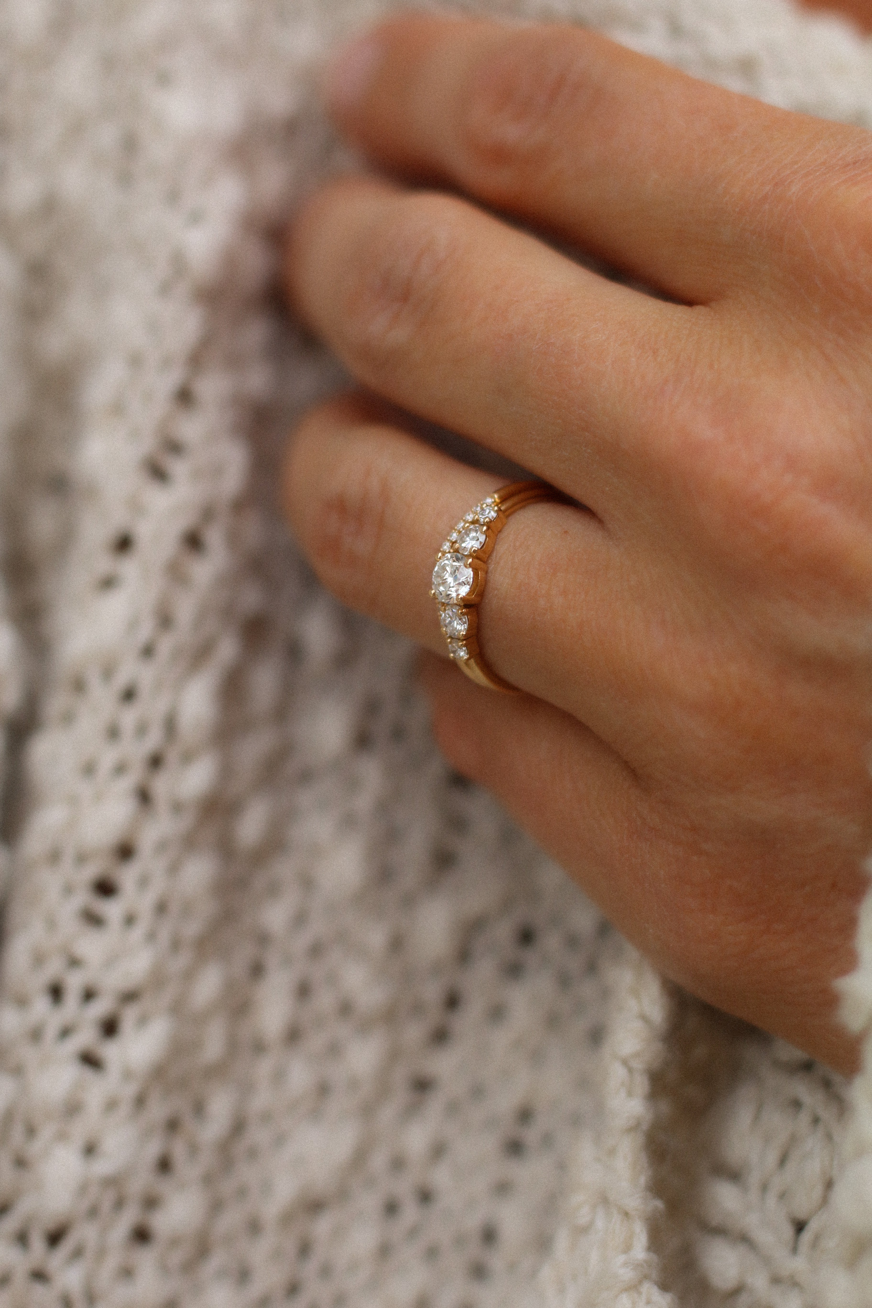Lika vacker att kombinera med en trestensring eller femstensring som Edith, Elise, Mini Elise eller Gilda Ring - som i en stack av raka ringar.