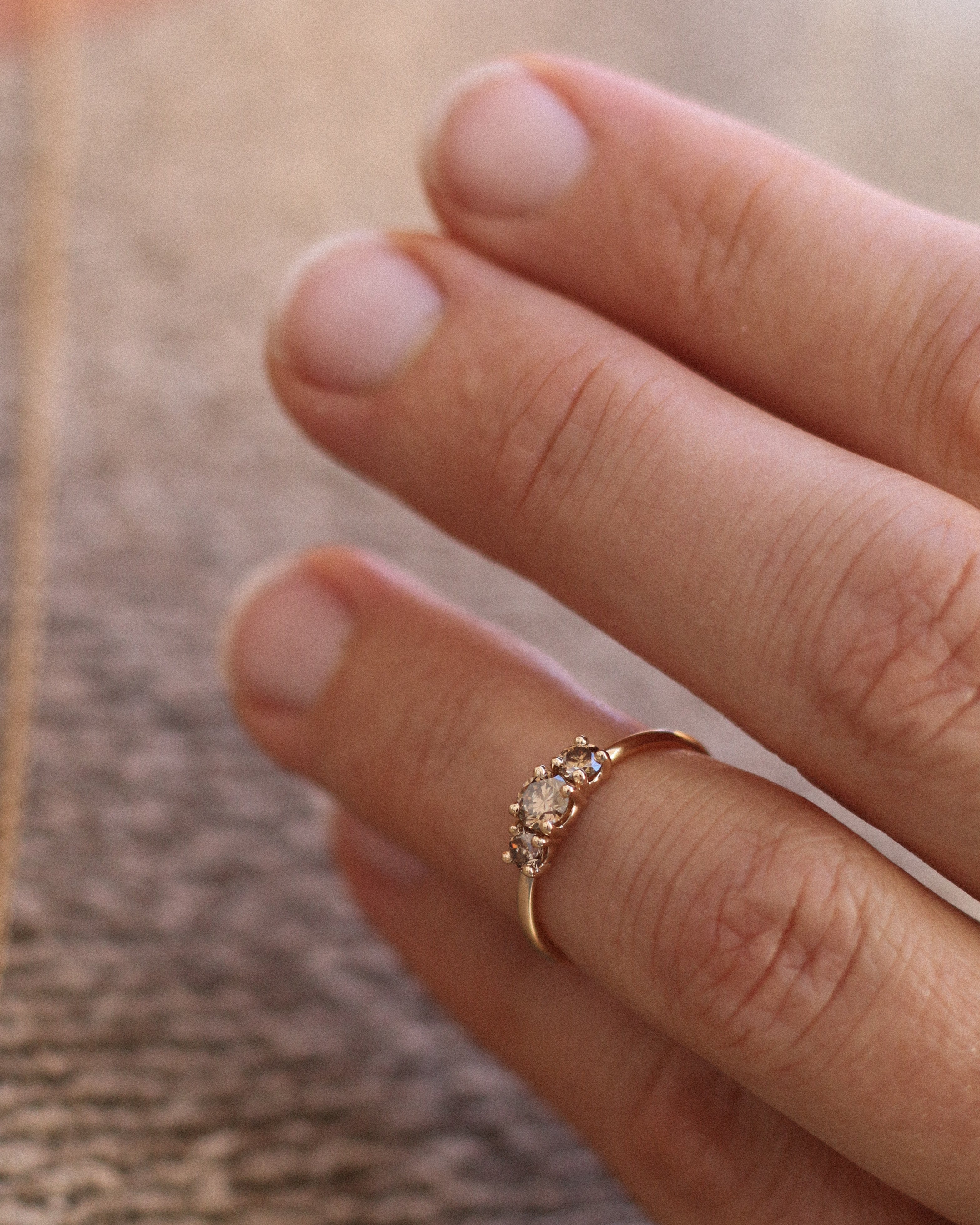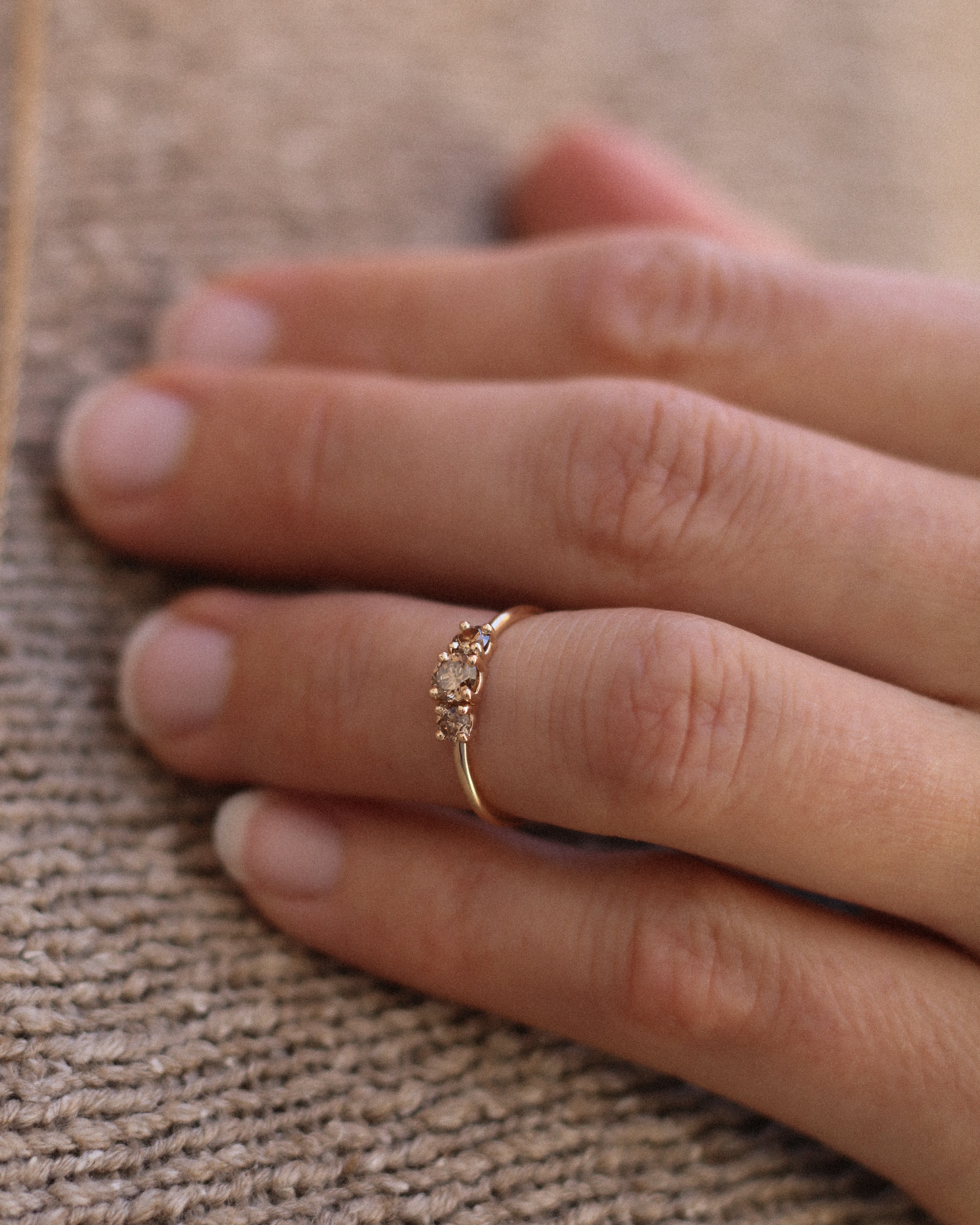 Edith Ring är en av våra mest älskade modeller och vår mest sålda förlovningsring. En minimalistisk, modern version av den klassiska trestensringen.