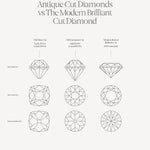 The cutting technique to create a round antique diamond was invented in the 1870’s, and is now known under the name Old European Cut. However, it was not until the Art Deco era in the 1920’s that diamonds became the most sought-after gemstone in Europe and the United States. During the 1940’s, the cutting technique developed and the diamonds began to become more and more similar to the modern brilliant cut. These in-between cuts are commonly known as transitional cut diamonds. The predecessor to the Old European Cut is the Old Mine Cut, which was prevalent from the mid-1800s until the early 1900’s. The Old Mine Cut is probably the oldest recognized cut type we know of today.