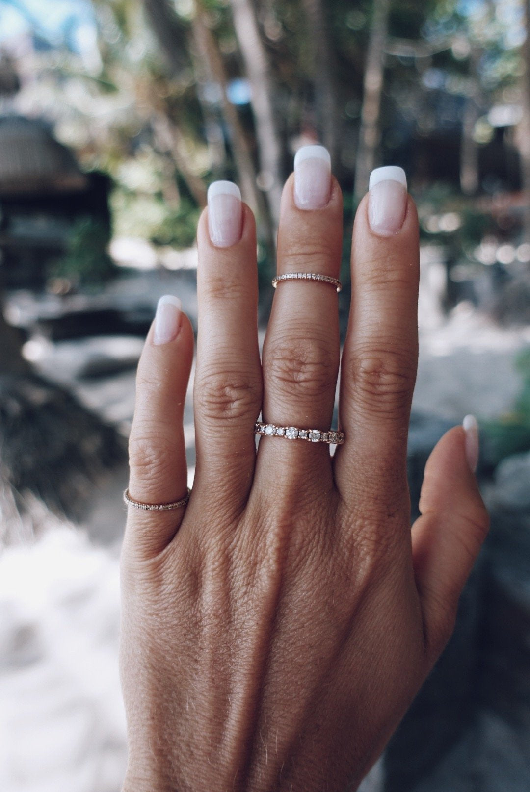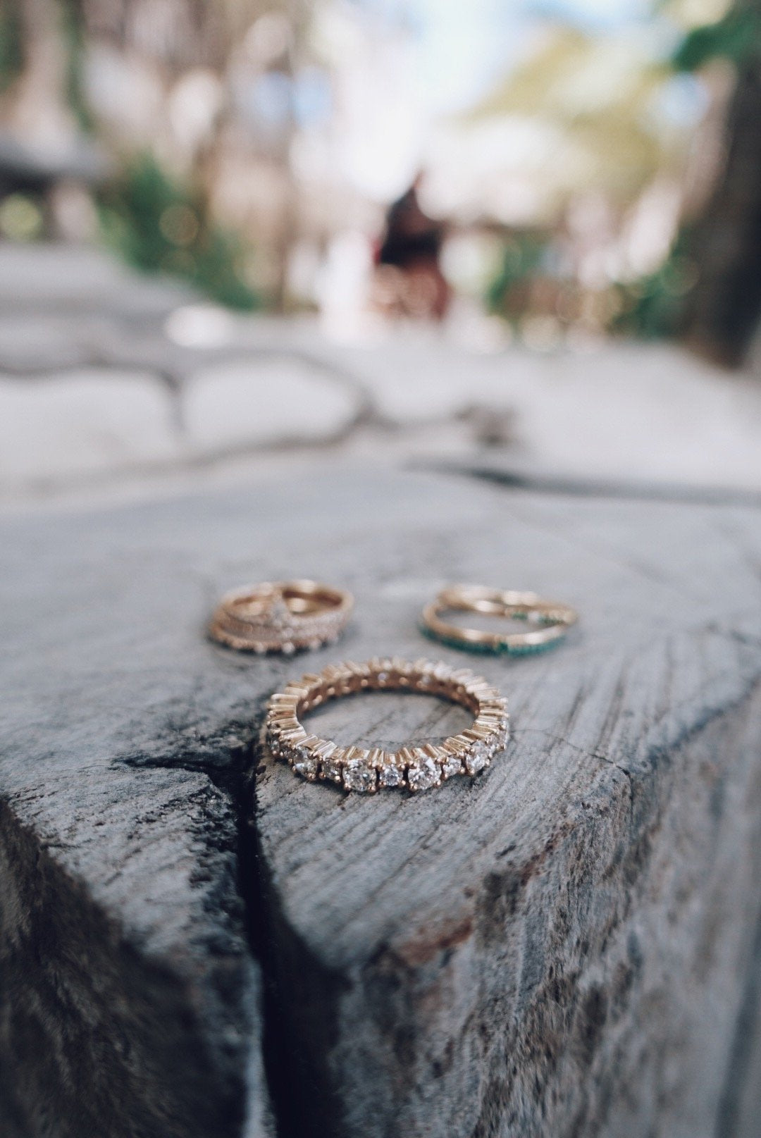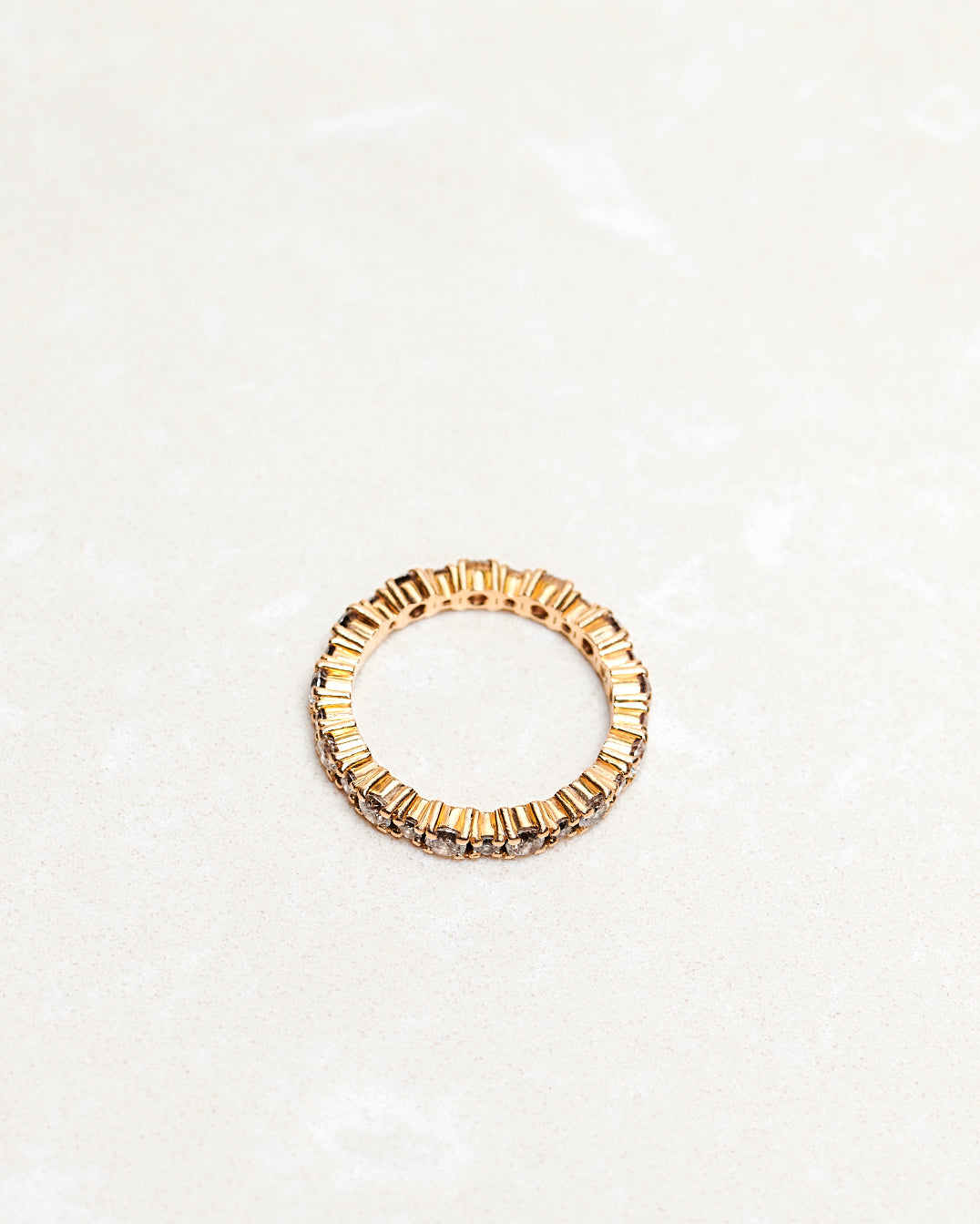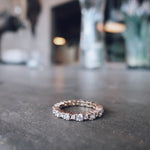 A classic eternity band - with diamonds all around ring - made in a unique, modern setting.