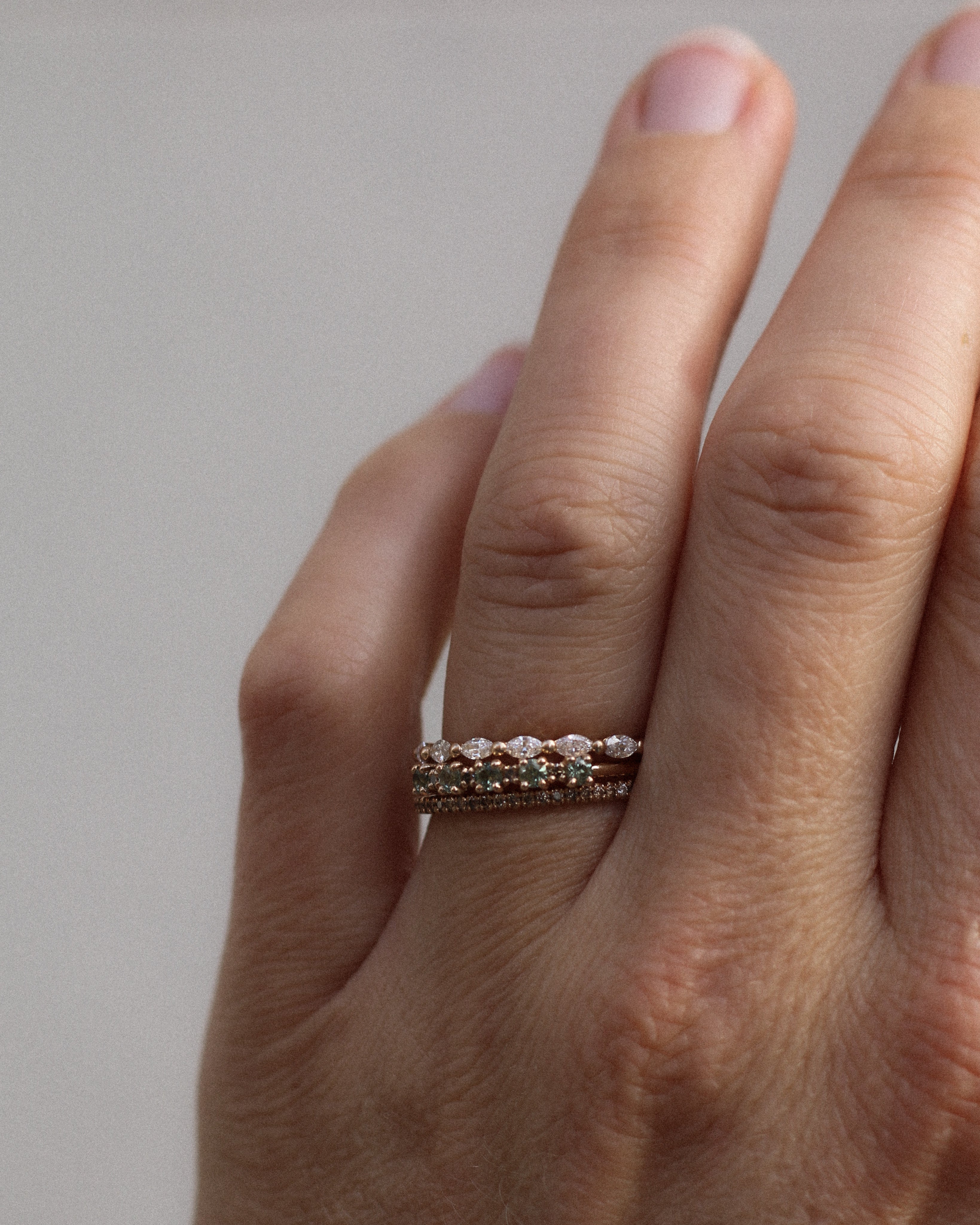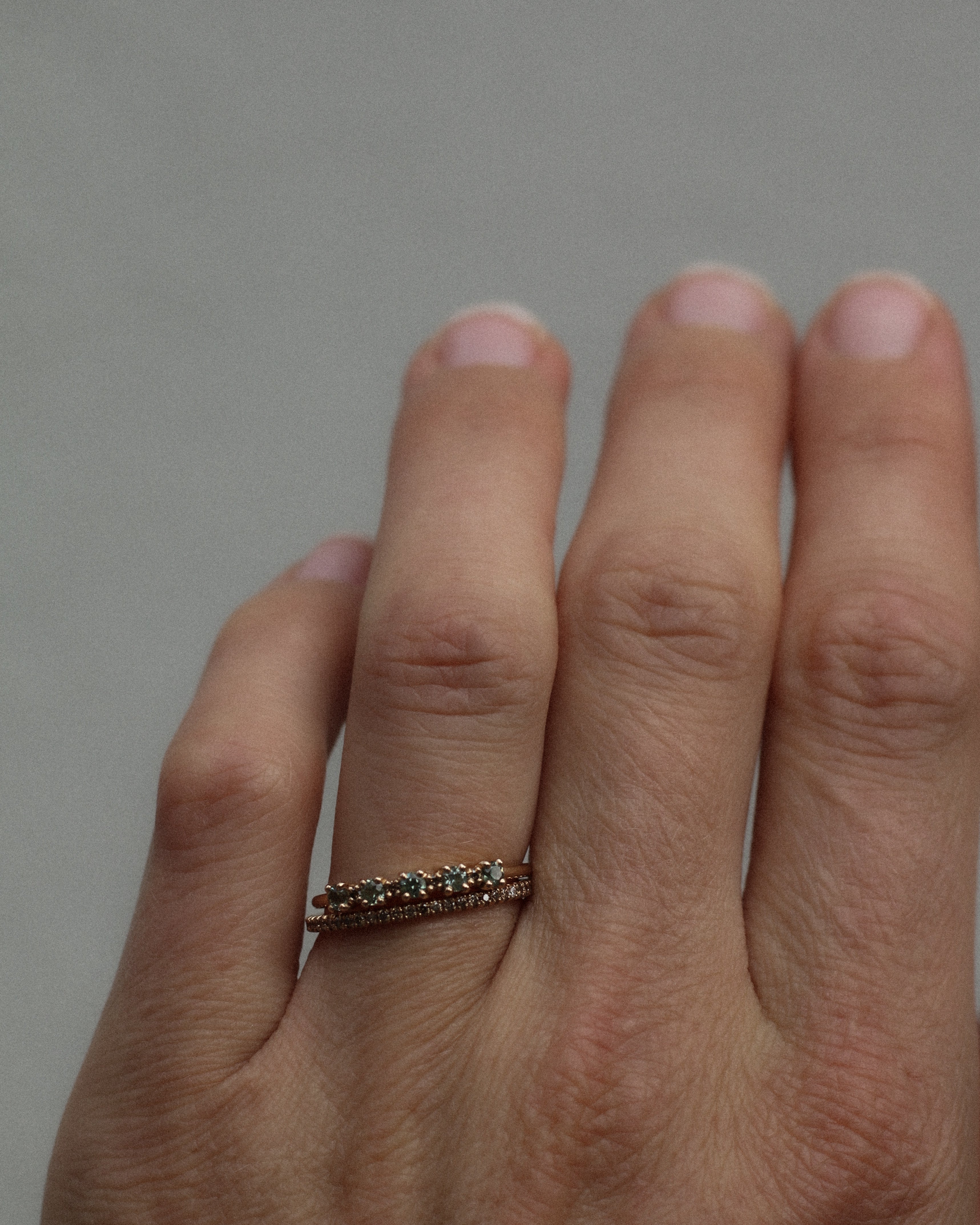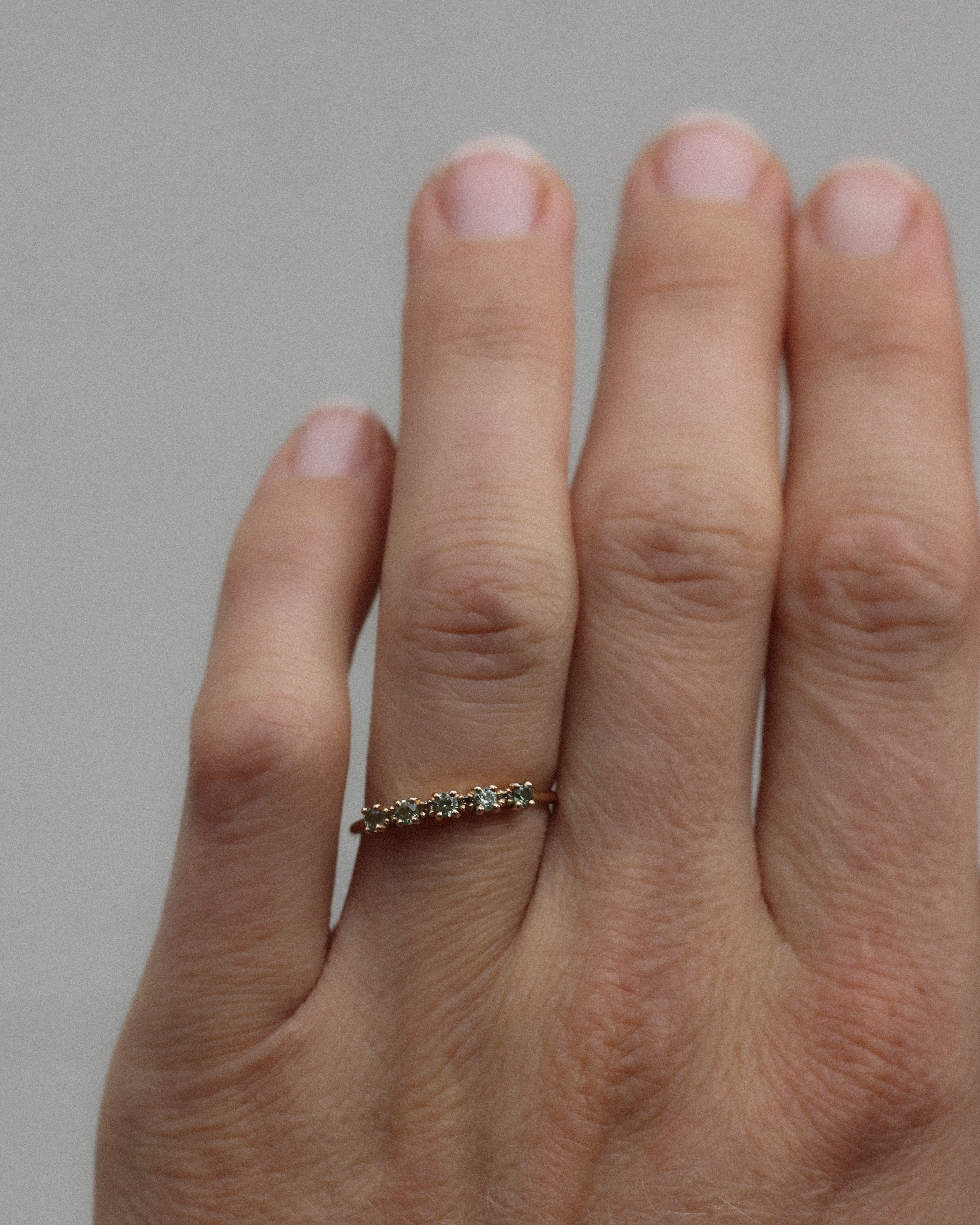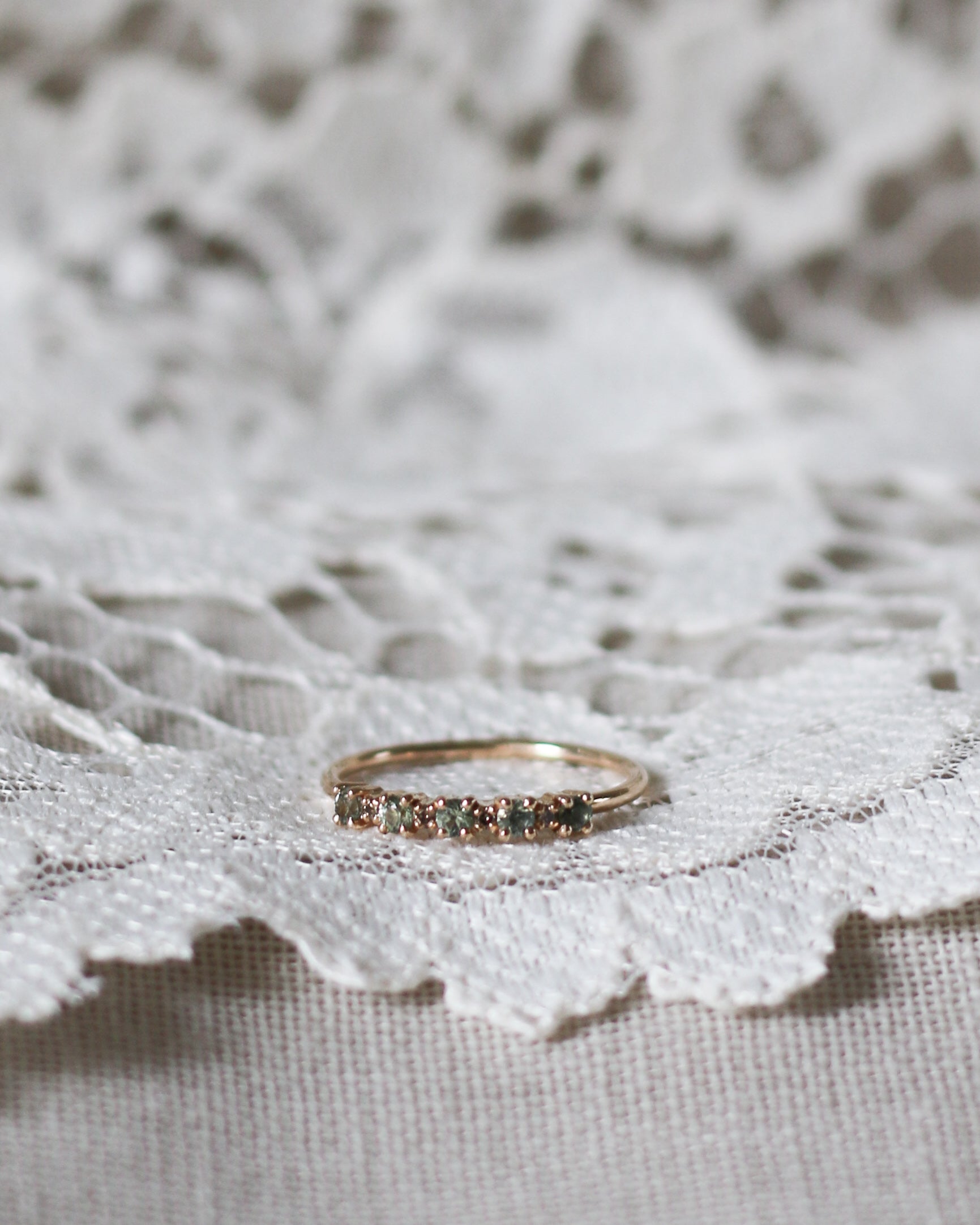 Mini Brigitte Ring med olivgröna safirer och chokladdiamanter
